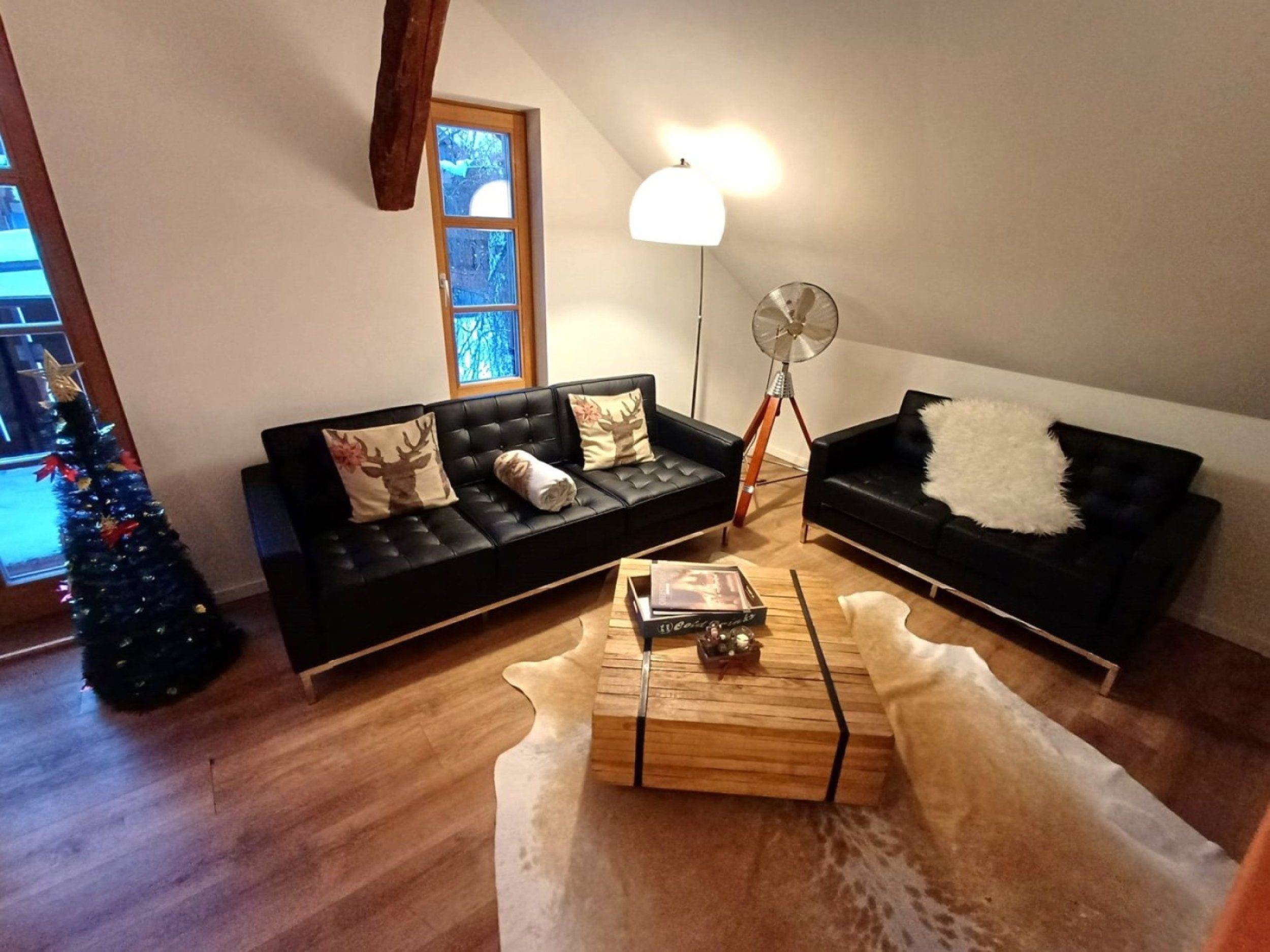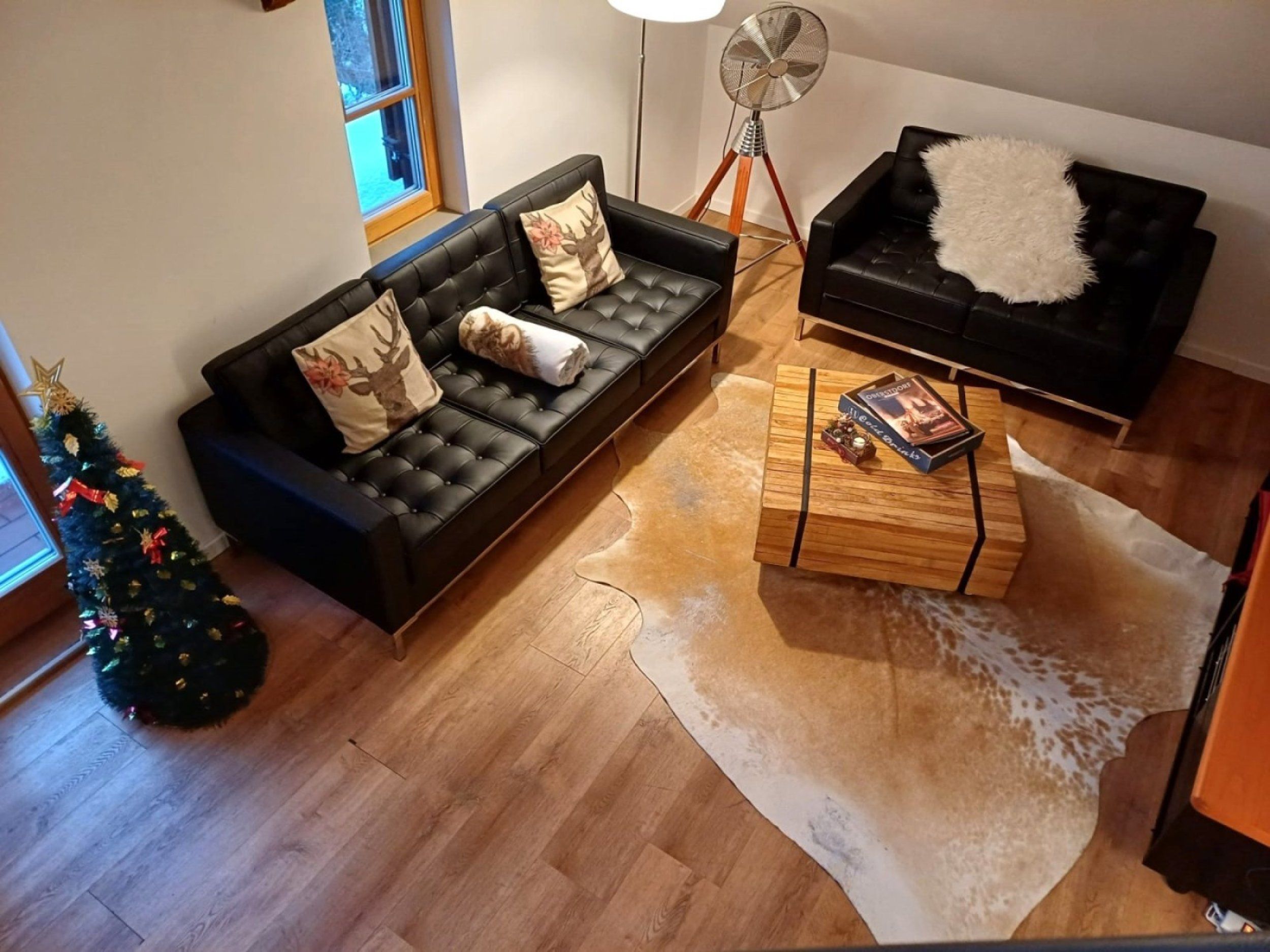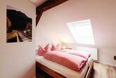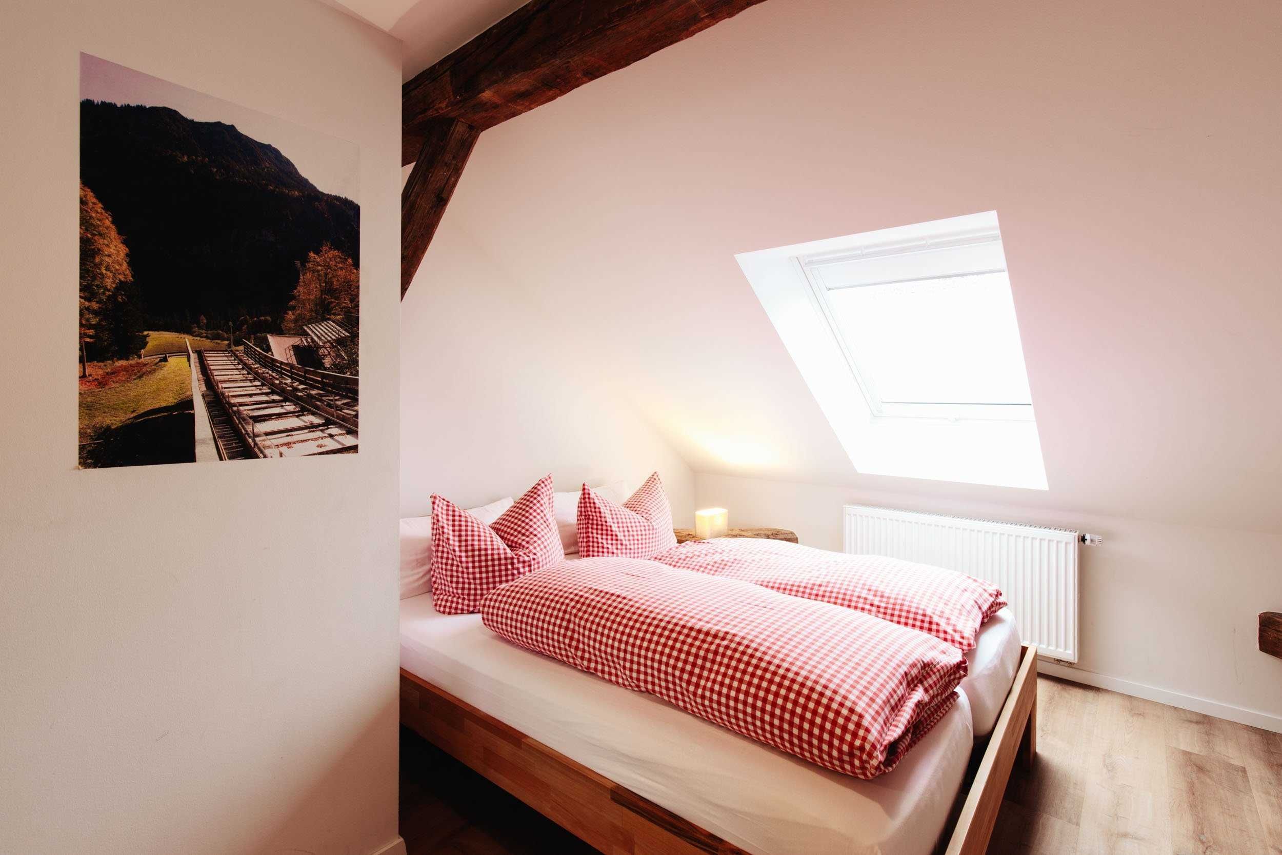 4 Zimmer Ferienwohnung mit 102 m² für 1 bis 6 Personen, 4 Räume mit 3 Schlafzimmern, Wohnzimmer mit offener Küche, Galerie, 2. Obergeschoß/Dachgeschoß, Balkon, Bergblick, Kinderzustellbett/-hochstuhl auf Anfrage möglich