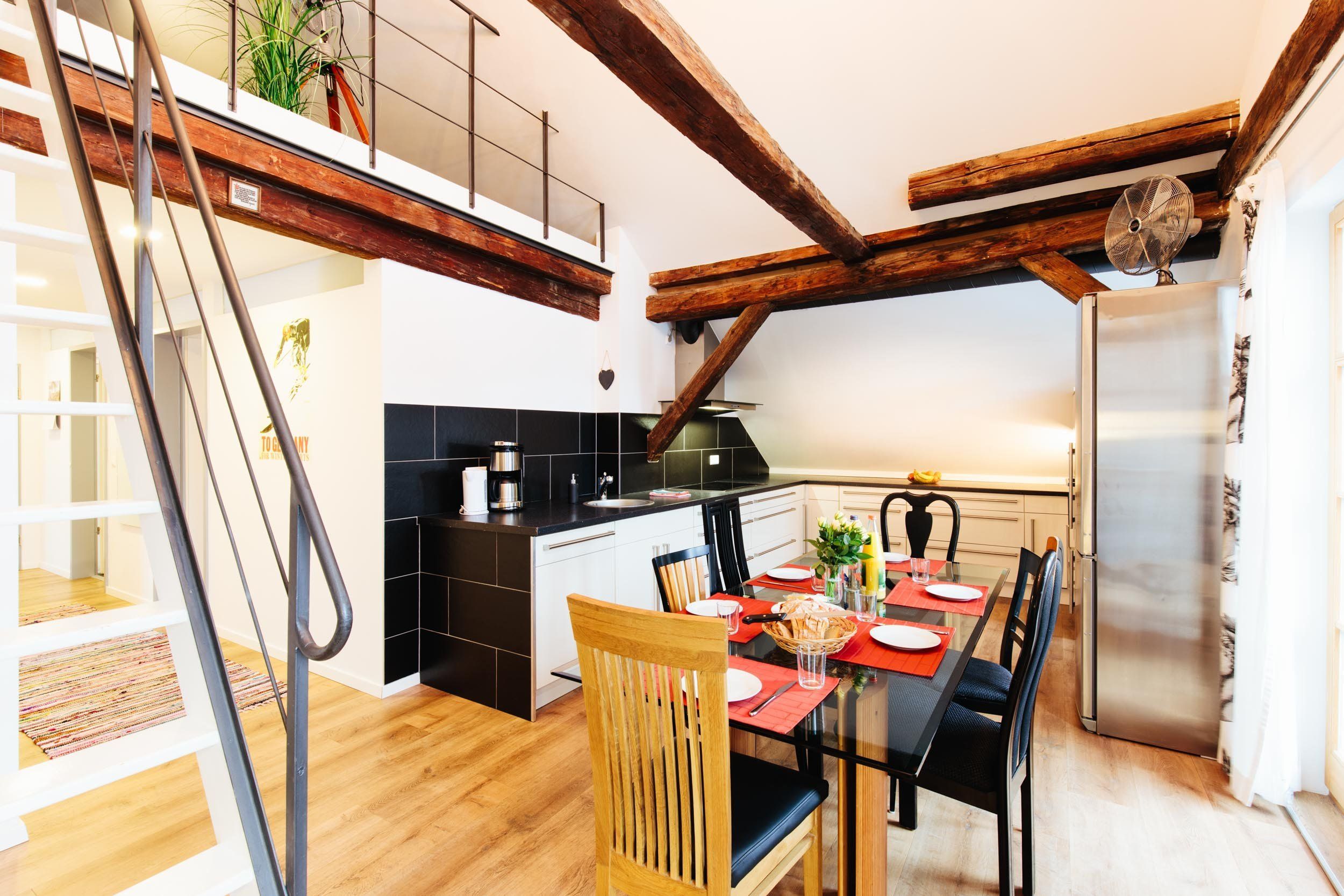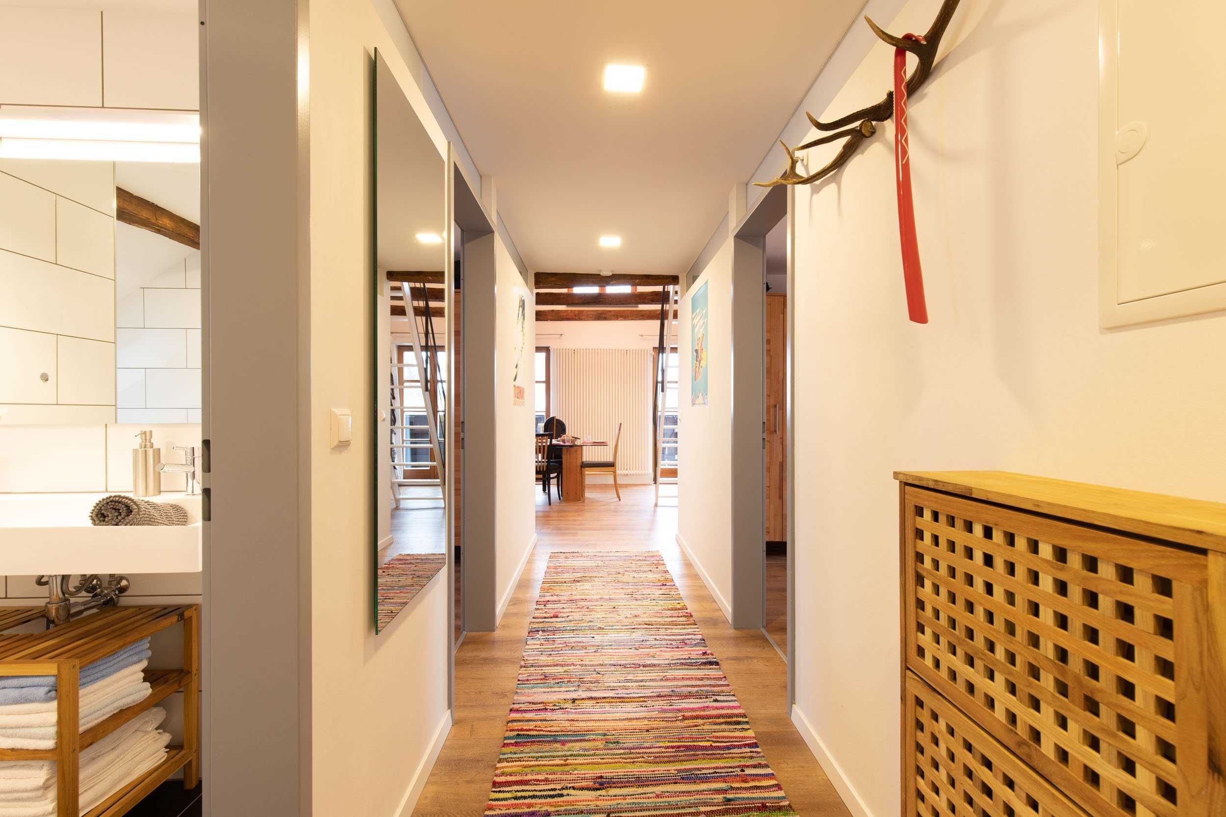 Alle Wohnungen mit Balkonen bzw. Terrasse, jede Wohnung einzigartig, traditionelle Elemente kombiniert mit modernem Design, gut ausgestattete Küchen mit Spülmaschinen, z.T. Induktion, Betten mit Bandscheibenmatratzen, Bäder mit Wanne (außer in W2) und separater Dusche.