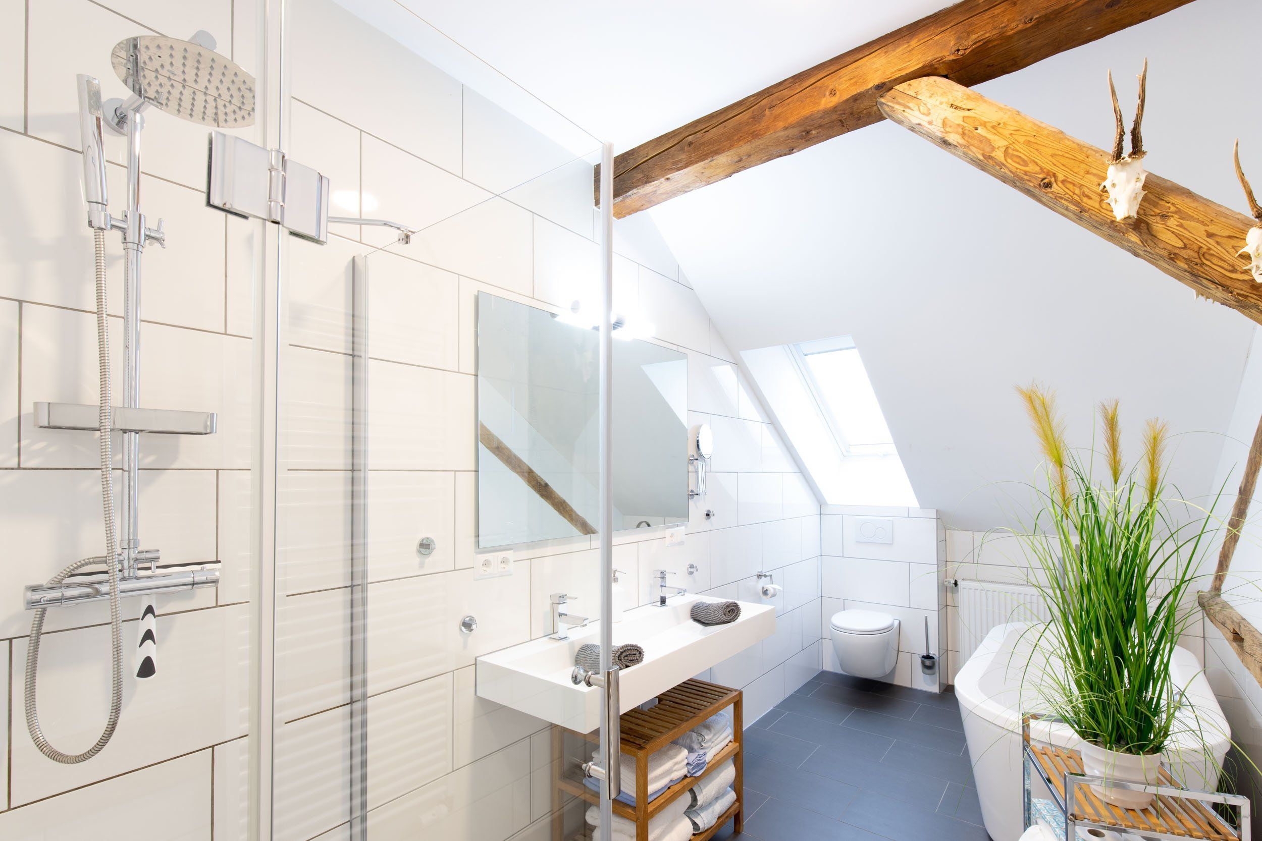 Alle Wohnungen mit Balkonen bzw. Terrasse, jede Wohnung einzigartig, traditionelle Elemente kombiniert mit modernem Design, gut ausgestattete Küchen mit Spülmaschinen, z.T. Induktion, Betten mit Bandscheibenmatratzen, Bäder mit Wanne (außer in W2) und separater Dusche.