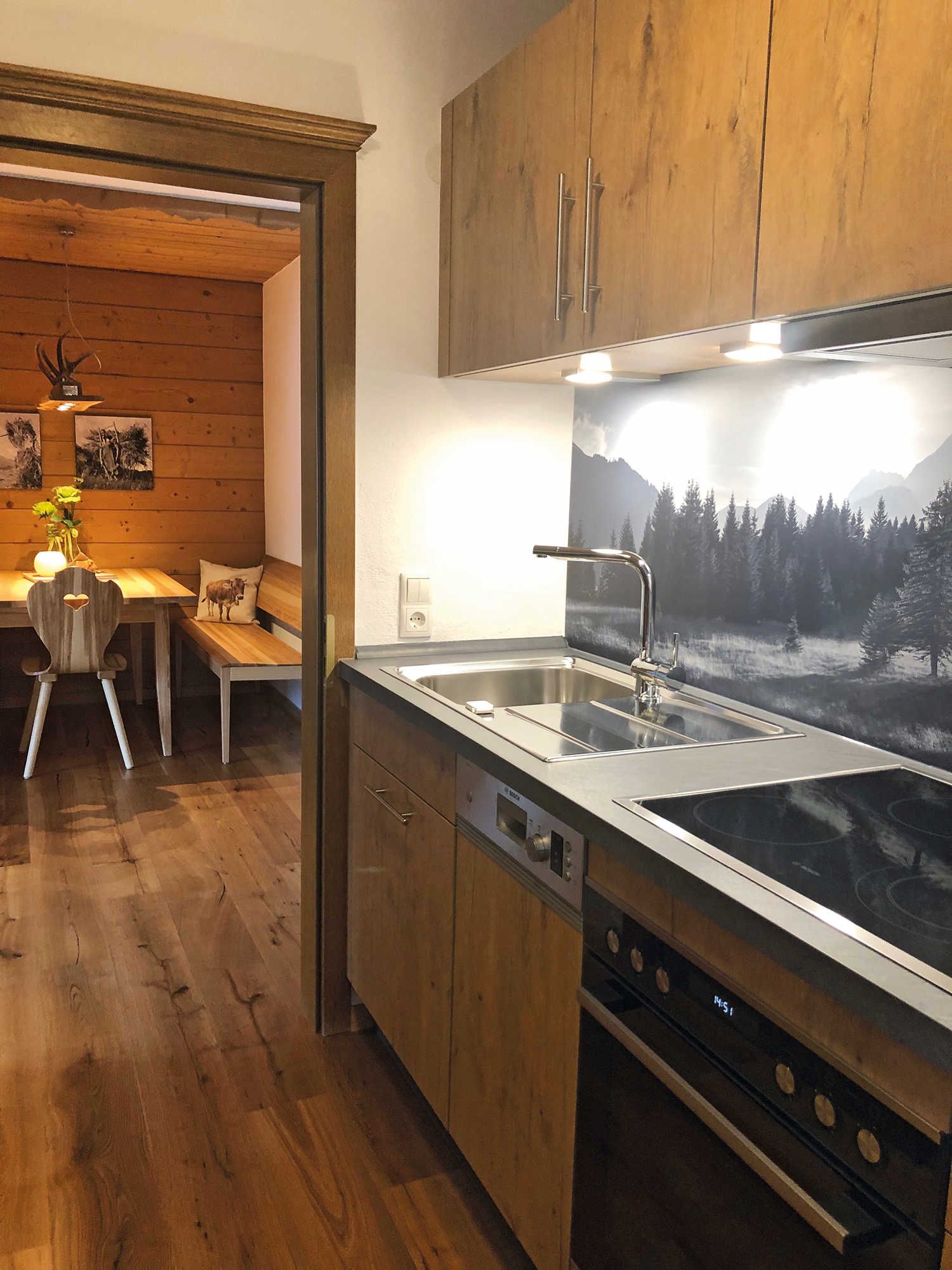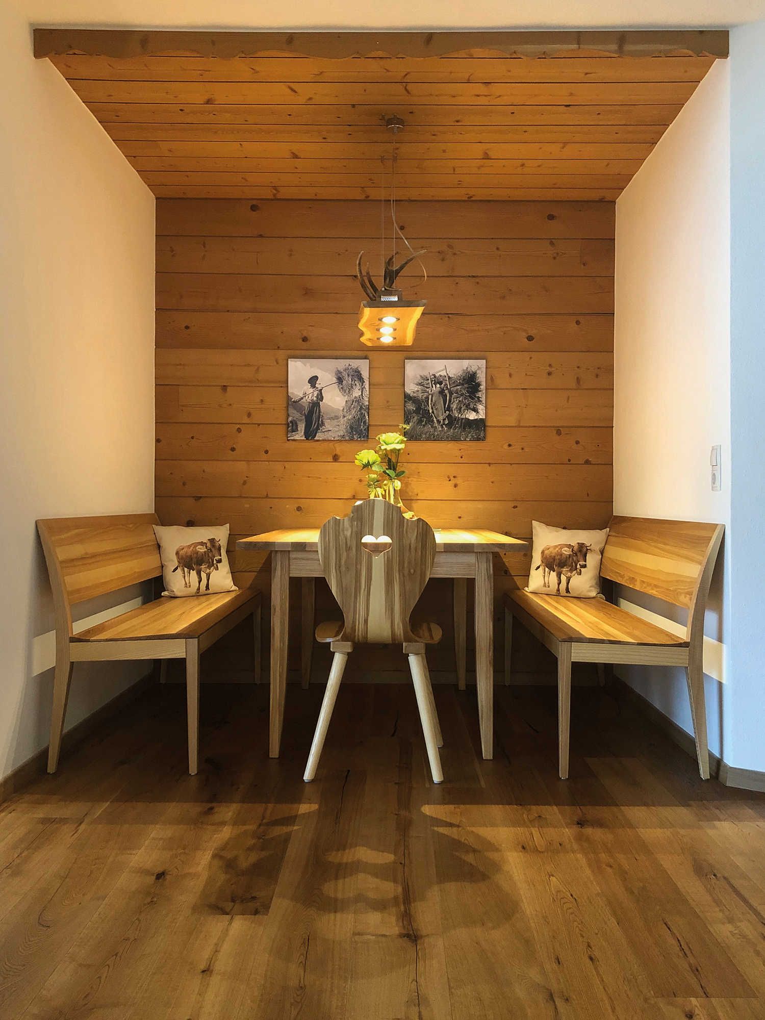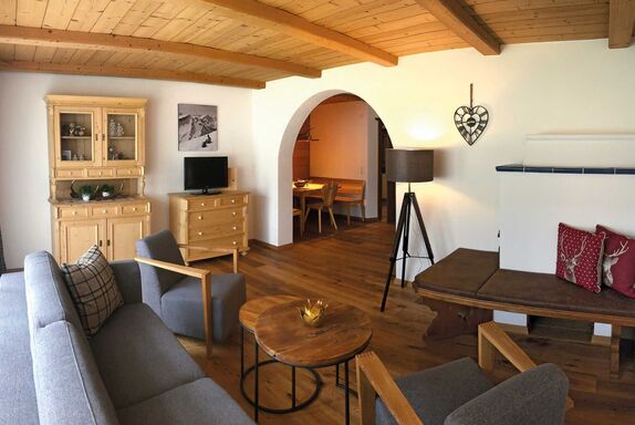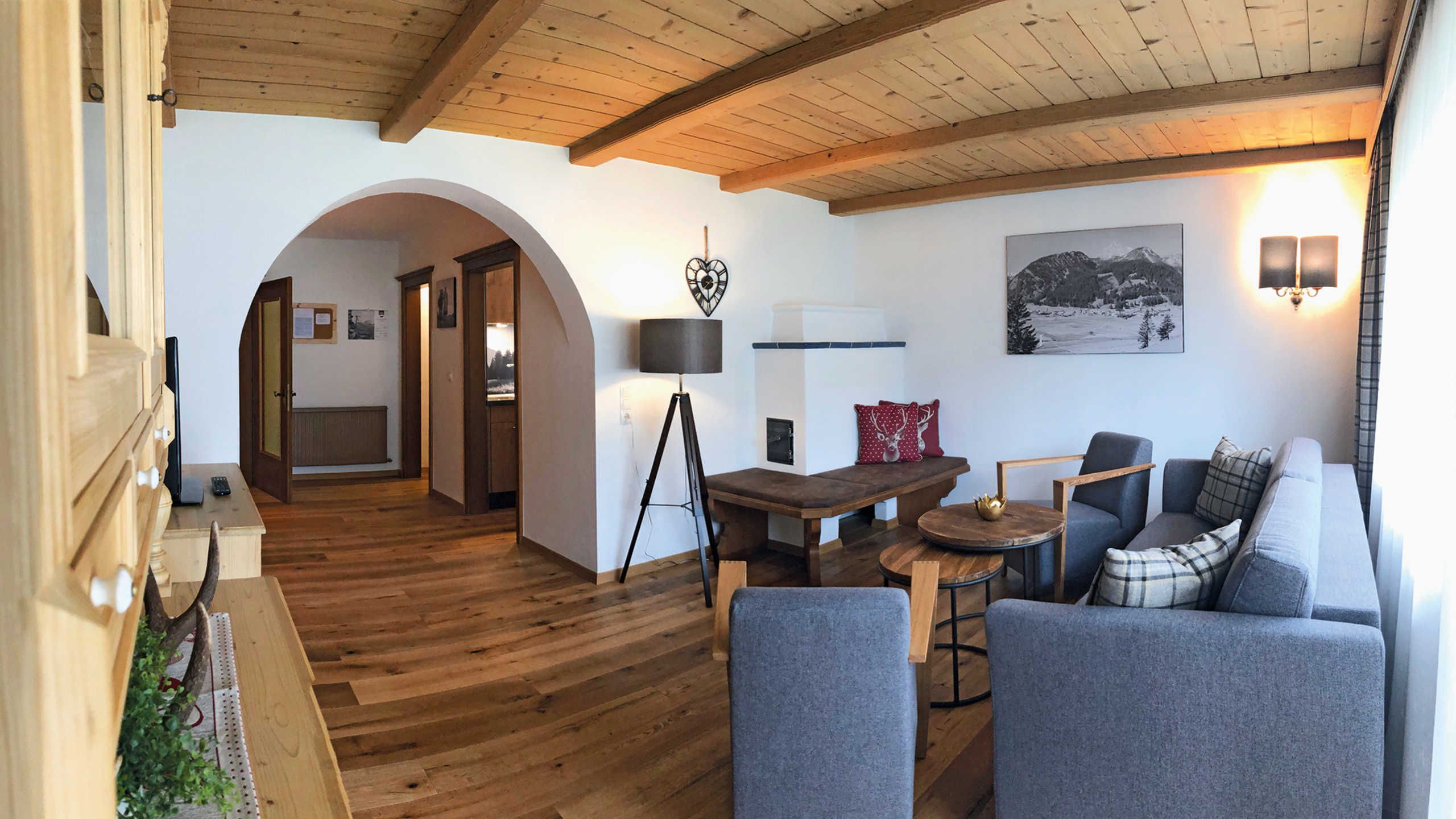 In unseren fünf geräumigen (60 - 90m²) und komfortabel eingerichteten Ferienwohnungen sind alle Wohnzimmer mit einem Bauernofen und einer gemütlichen Ofenbank ausgestattet. Die moderne Küche bietet Ihnen die wichtigsten Utensilien, die Sie für Ihren Aufenthalt benötigen und in unseren außergewöhnlichen Zirbenbetten schlafen Sie wie im siebten Himmel.