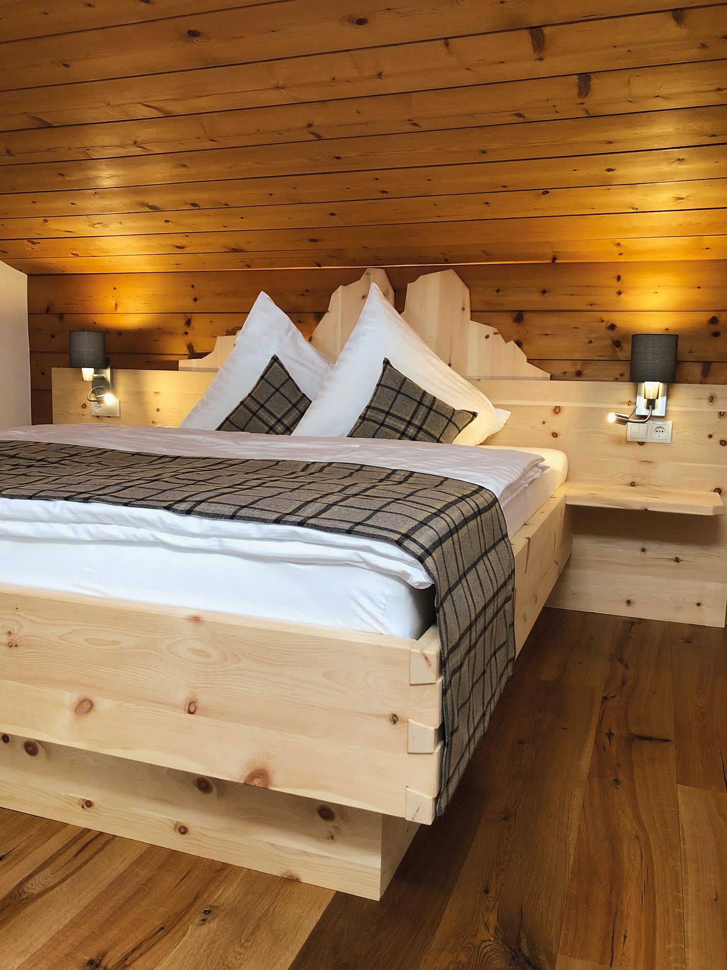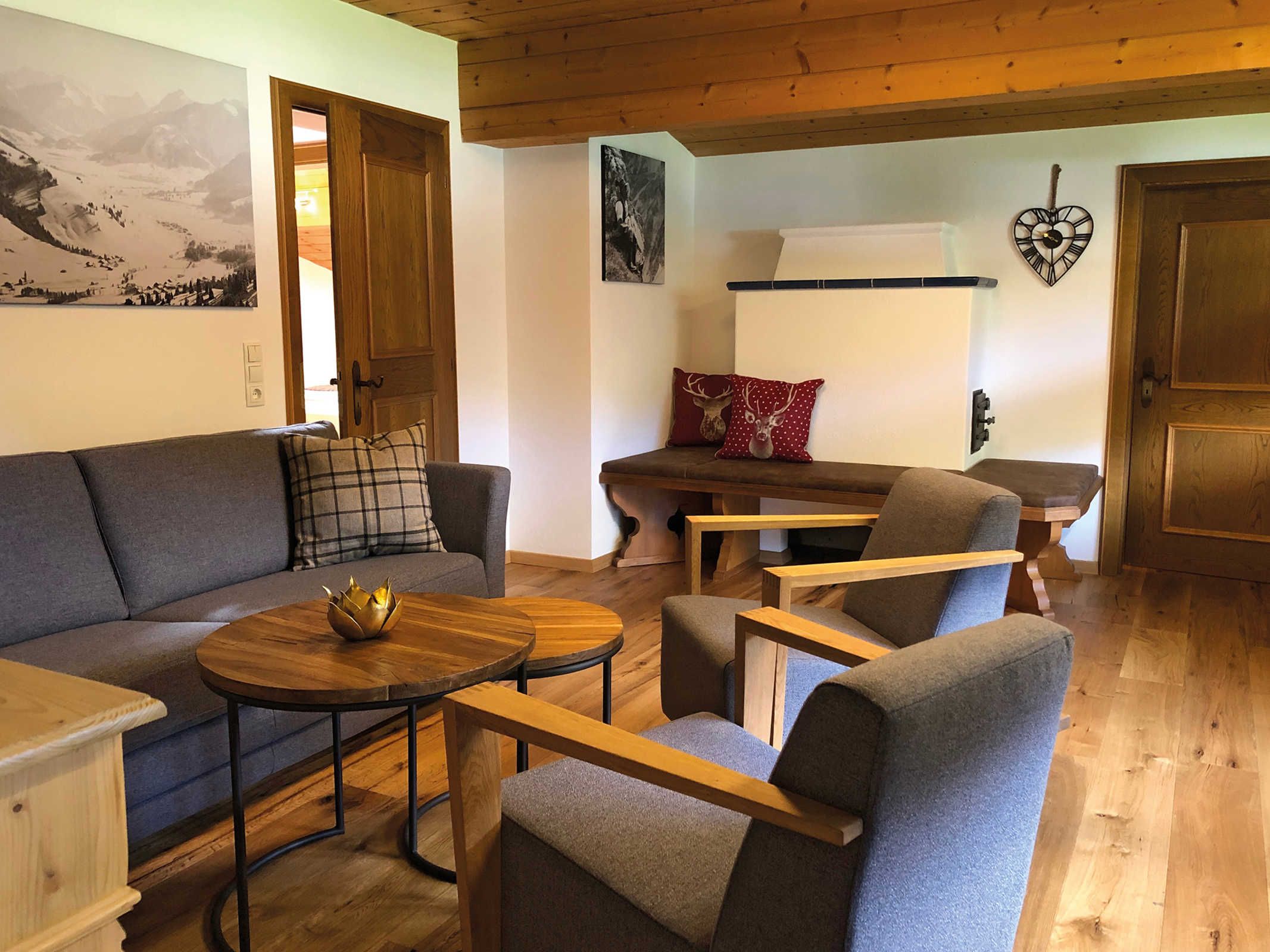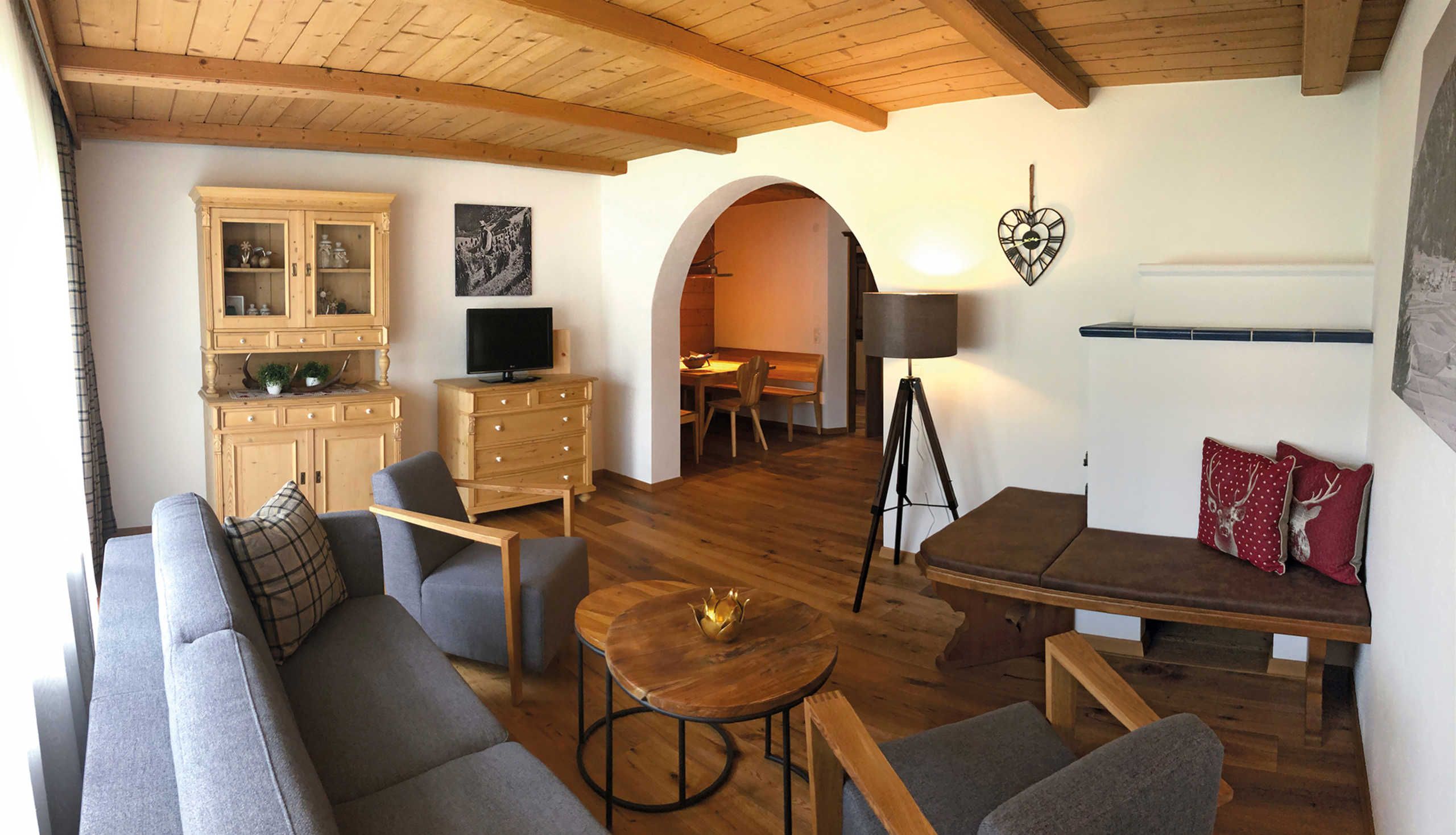 In unseren fünf geräumigen (60 - 90m²) und komfortabel eingerichteten Ferienwohnungen sind alle Wohnzimmer mit einem Bauernofen und einer gemütlichen Ofenbank ausgestattet. Die moderne Küche bietet Ihnen die wichtigsten Utensilien, die Sie für Ihren Aufenthalt benötigen und in unseren außergewöhnlichen Zirbenbetten schlafen Sie wie im siebten Himmel.