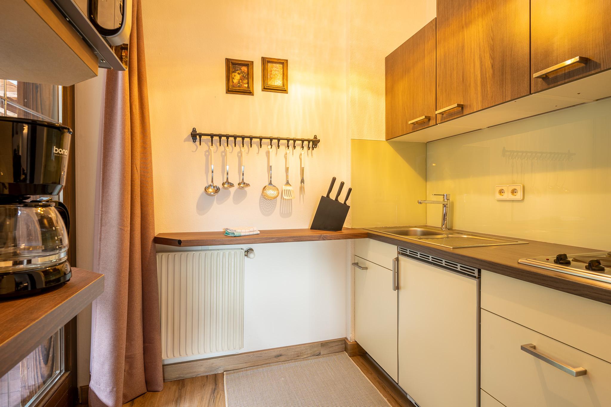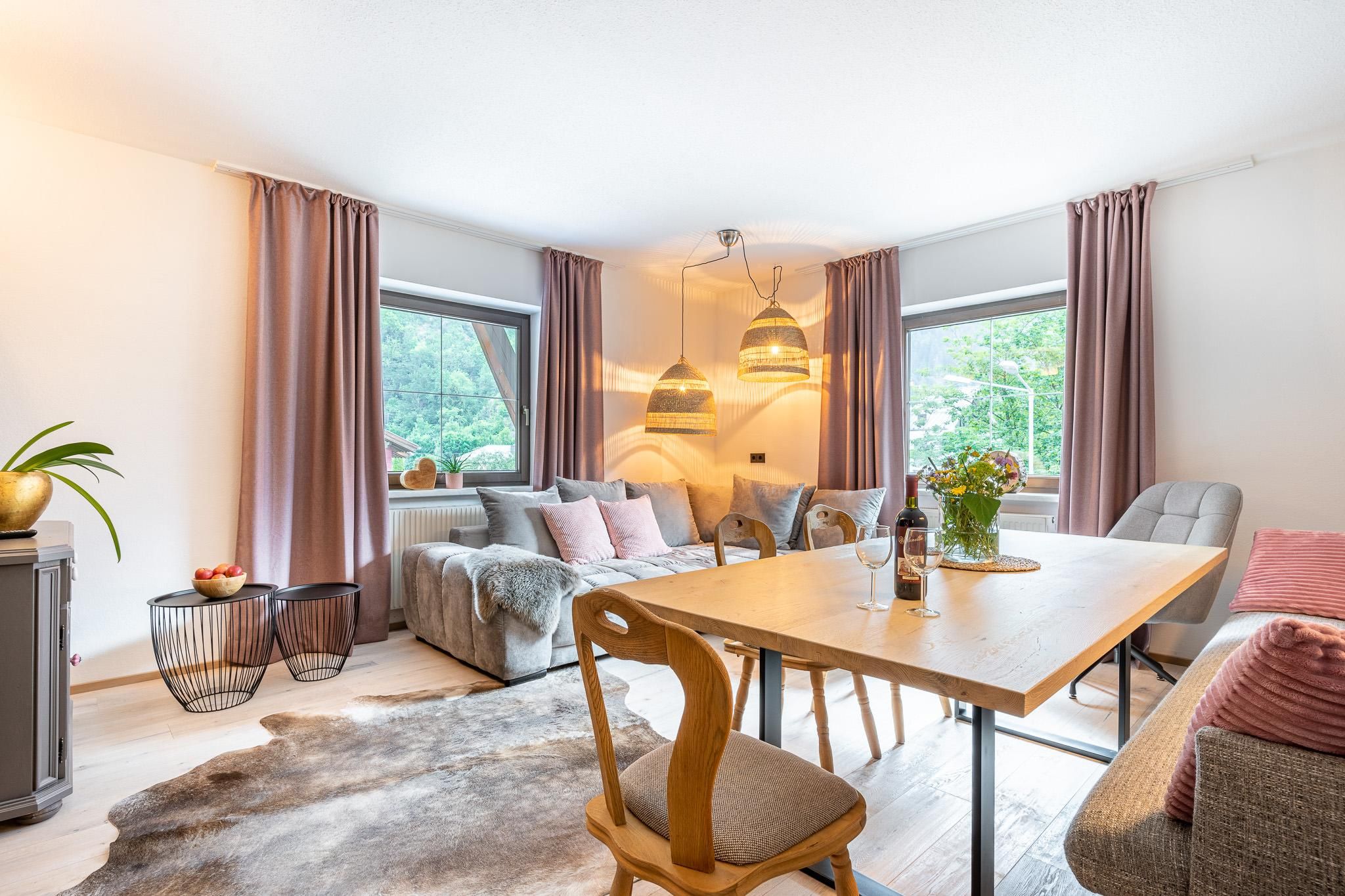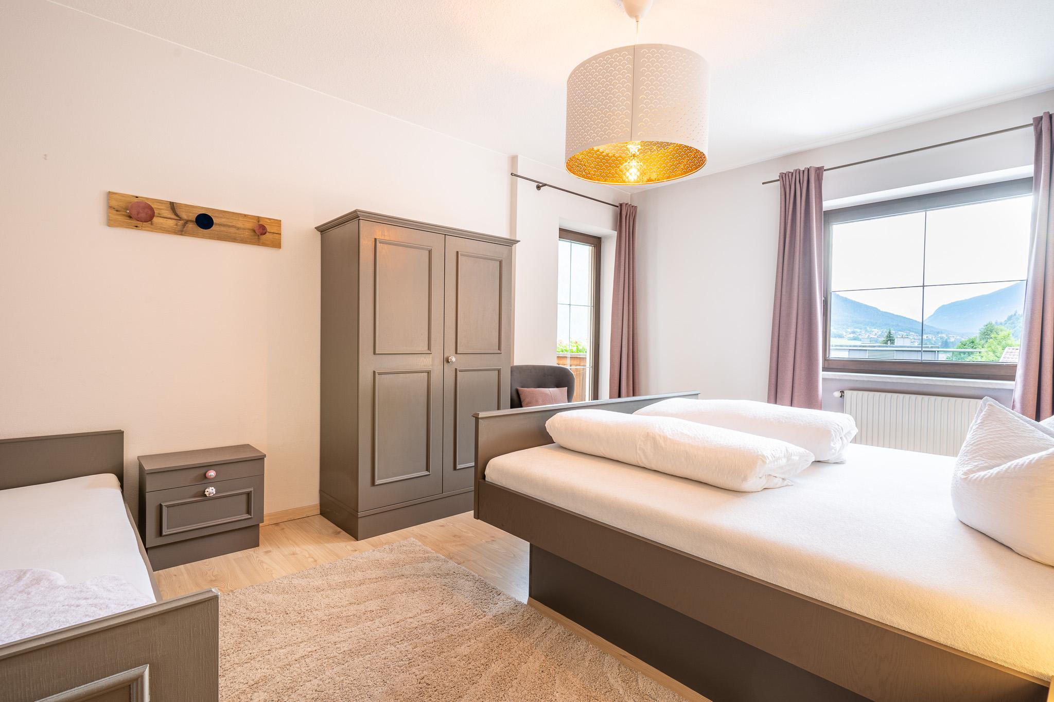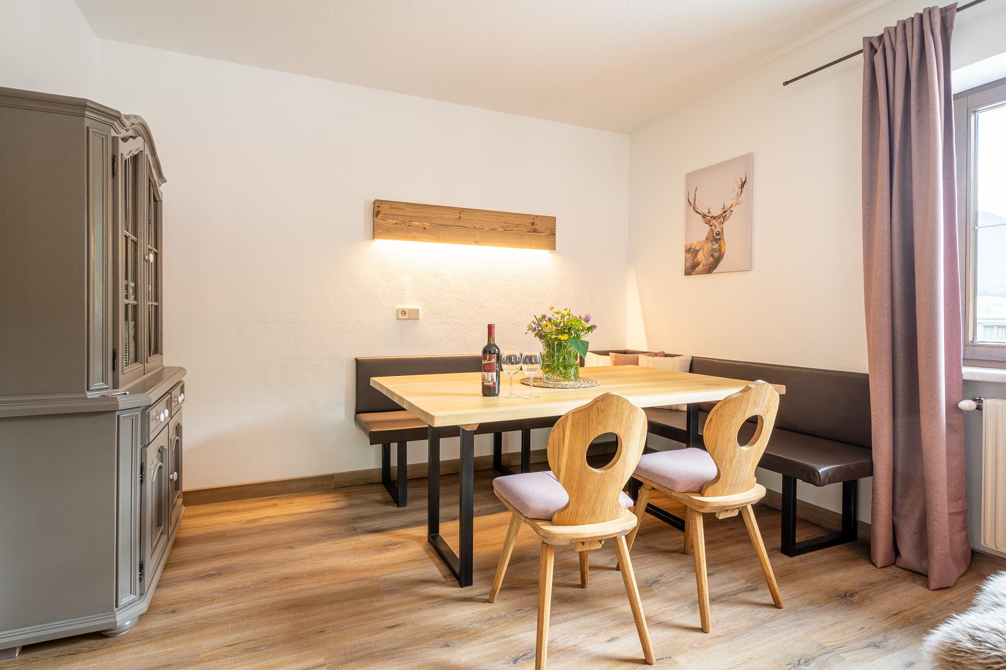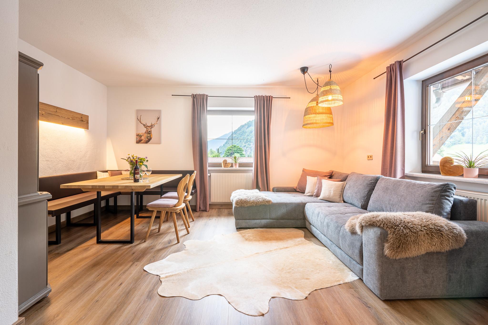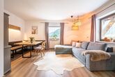 Das Appartement Murmele mit ca. 80 m² verfügt über folgende Ausstattung: 1 Doppelzimmer; 1 Dreibettzimmer; 2 Badezimmer mit Dusche/WC. Der Wohnraum verfügt über SAT-TV und ausziehbarer Schlafcouch (für 2 weitere Personen) - von dort gelangen Sie auf einen möblierten Balkon. Die kleine Küche ist ausgestattet mit Mikrowelle, 2-Platten-Elektroherd, Filter-Kaffeemaschine, Toaster, Kühlschrank mit Gefrierfach, Geschirrspüler uvm.