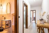 Das Appartement Schafle mit ca. 80 m² verfügt über folgende Ausstattung: 1 Doppelzimmer; 1 Dreibettzimmer; 2 Badezimmer mit Dusche; 1 separates WC mit Bidet. Der Wohnraum verfügt über SAT-TV und ausziehbarer Schlafcouch (für 2 weitere Personen) - von dort gelangen Sie auf einen möblierten Balkon. Die kleine Küche ist ausgestattet mit Mikrowelle, 2-Platten-Elektroherd, Filter-Kaffeemaschine, Toaster, Kühlschrank mit Gefrierfach, Geschirrspüler.