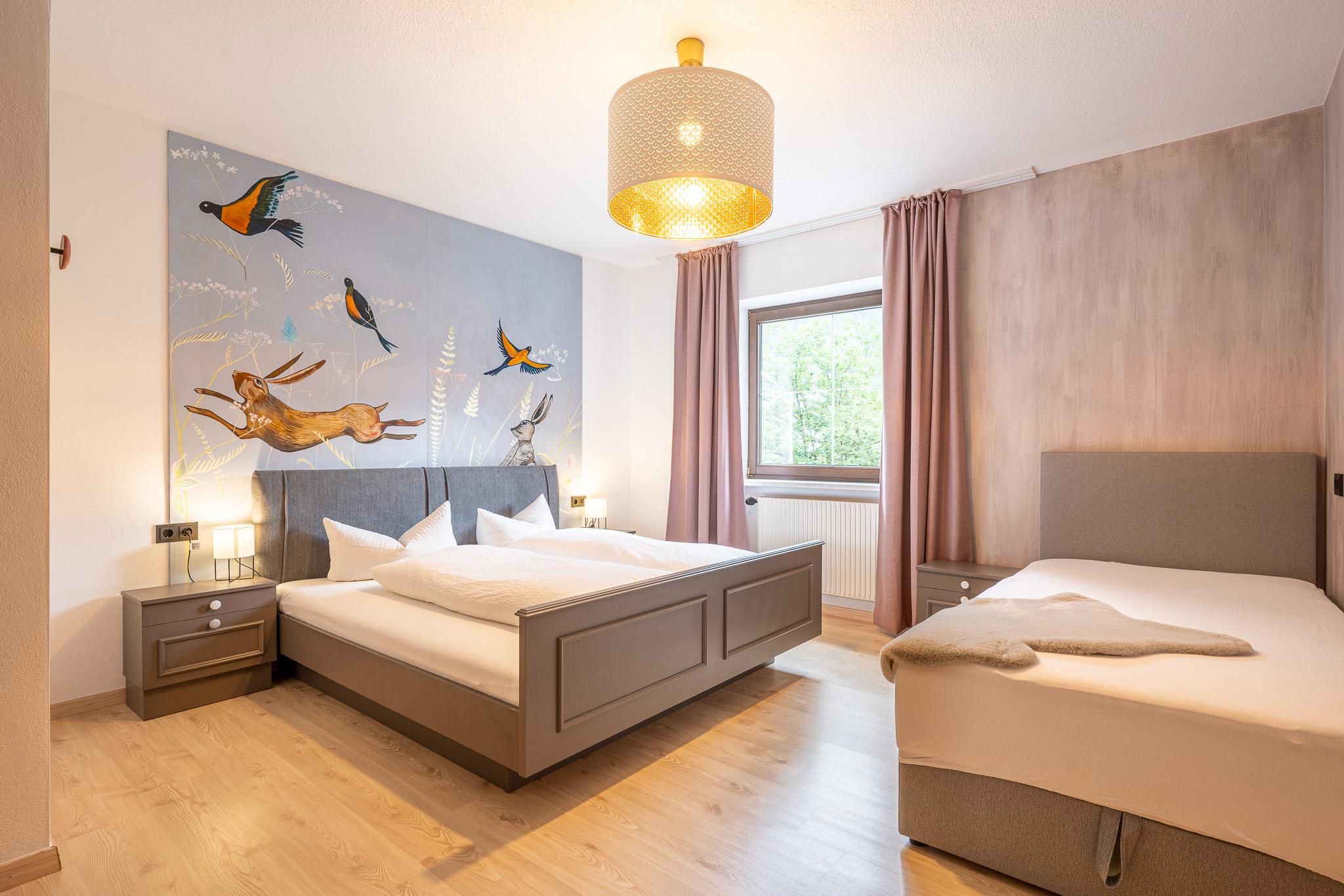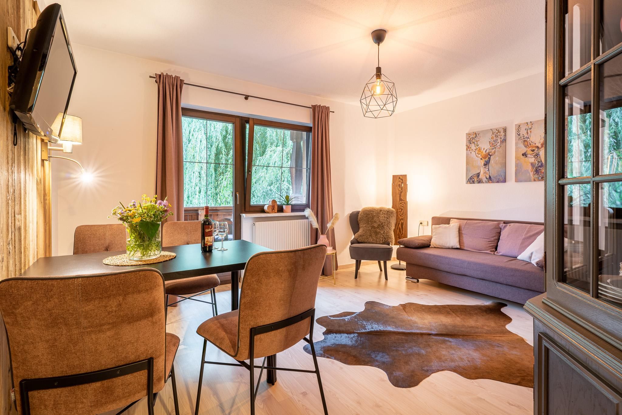 Das Appartement Hennele mit ca. 45 m² ist ausgestattet mit: 1 Doppelzimmer; 1 Badezimmer mit Badewanne und Dusche; 1 separates WC mit Bidet. Der Wohnraum verfügt über SAT-TV und einer ausziehbarer Schlafcouch (für 2 weitere Personen) von der haben Sie Zugang zu einem möblierten Balkon. Die kleine Küche ist komplett ausgestattet mit Mikrowelle, 2-Platten-Elektroherd, Filter-Kaffeemaschine, Toaster und Kühlschrank mit Gefrierfach uvm.