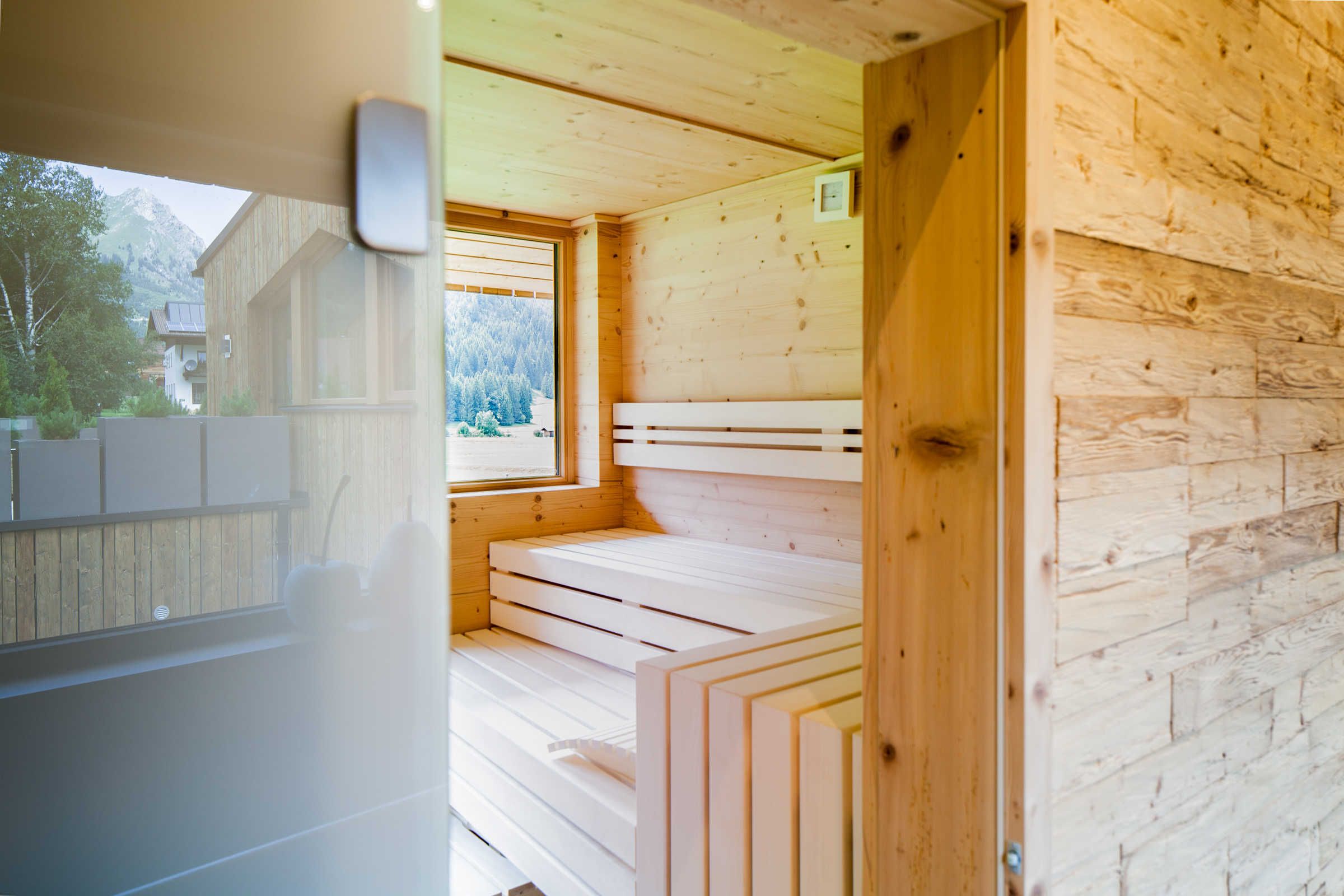 Chalet mit ca. 130 m2 für 2 - 6 Personen, Schlafsofa, 2 Etagenbetten, 2 Schlafzimmer mit 2 Toiletten, 2 Regenduschen, Badewanne und eigener Sauna, vollausgestattete Küche mit Esszimmer, Wohnbereich mit Kaminofen und Terrasse sowie Dachterrasse. Täglicher Frühstückskorb wird ins Chalet serviert.