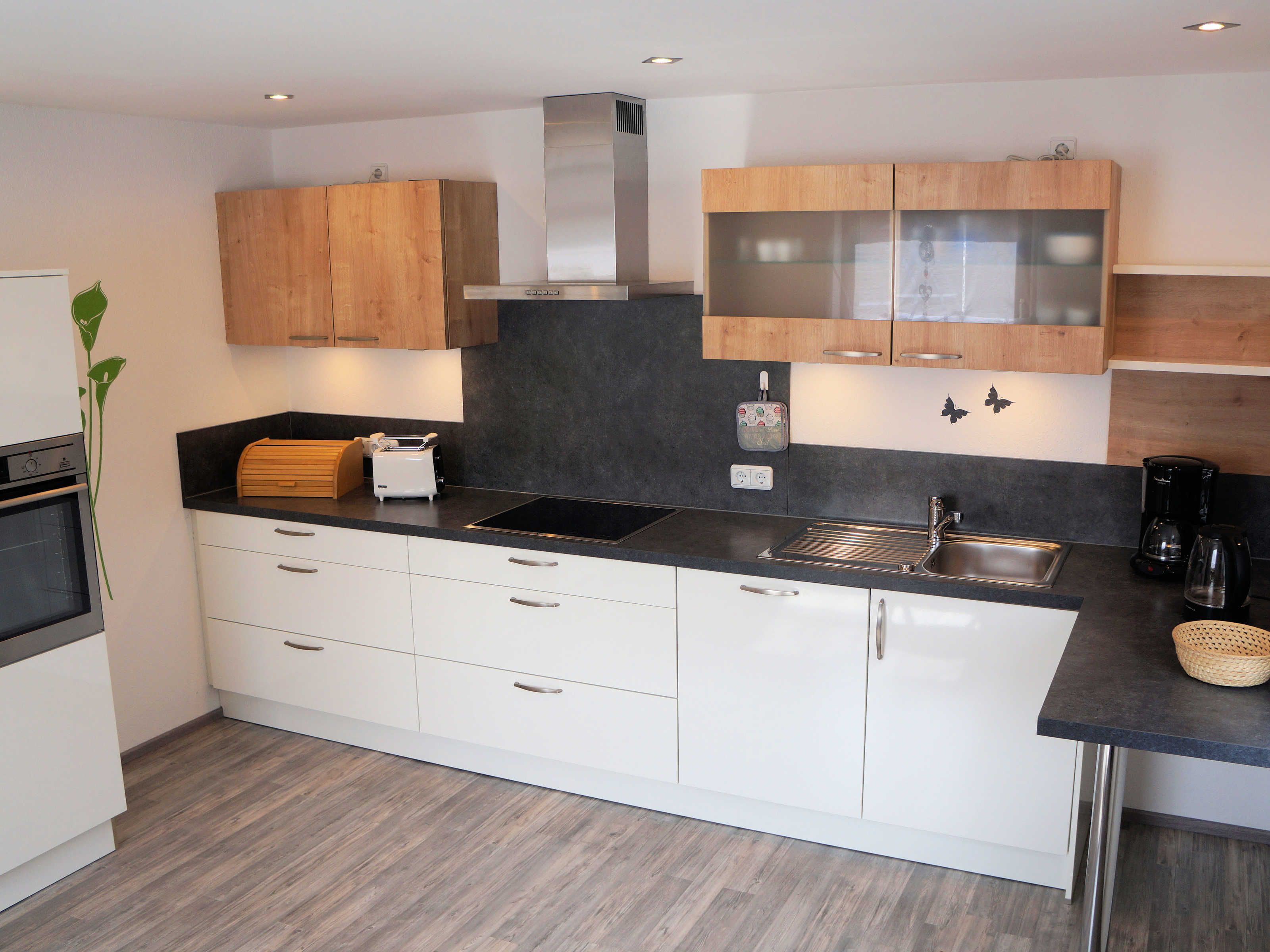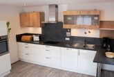 Die modern eingerichtete Küche (18 m²) ist mit Backofen, Mikrowelle, Spülmaschine, Kochfeld, Kühlschrank mit Gefriermöglichkeiten, Kaffeemaschine, Wasserkocher und Toaster ausgestattet. Besteck und Geschirr sind selbstverständlich vorhanden, ebenfalls eine kleine Auswahl an Gewürzen. Im Badezimmer befinden sich eine Walk in Dusche und ein WC. Handtücher und Fön sind vorhanden. Das erste Schlafzimmer (25 m²) verfügt über ein Doppelbett (1,90m x 2,00m) und einen Schiebetürenschrank. Das zweite Schlafzimmer (18m²) hat die gleiche Ausstattung, Kinderbett kann auf Wunsch aufgestellt werden. Im Wohnzimmer stehen ein TV-Flachbildschirm und ein Bluetooth-Lautsprecher. Ein Zustellbett im Wohnzimmer (0,90m x 2,00m) ist auf Wunsch möglich. WLAN kann in der gesamten Ferienwohnung kostenlos genutzt werden. Auf unseren 6m² großen Balkon können Sie den Tag gemütlich ausklingen lassen.