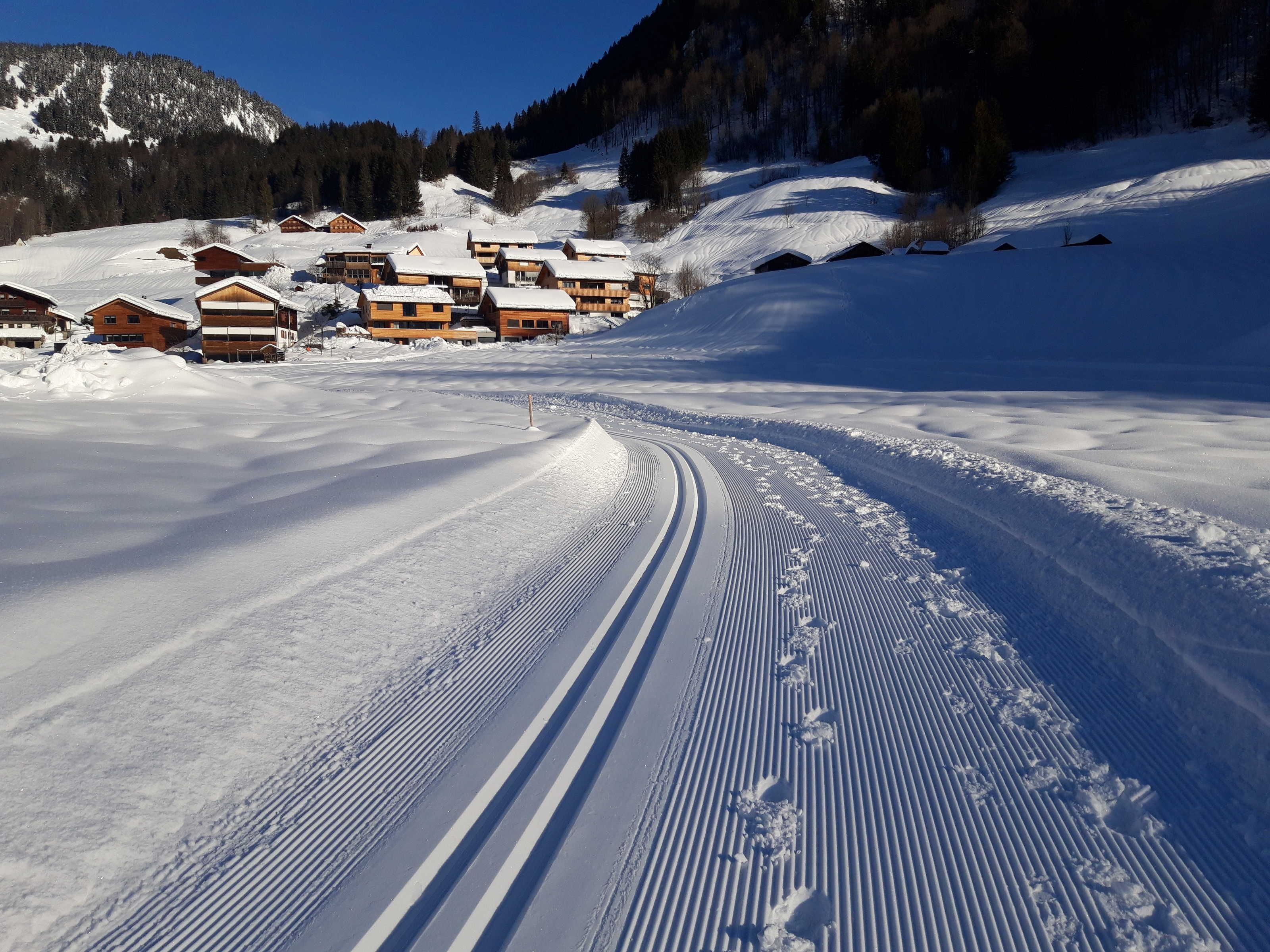 In wenigen Gehminuten erreichen Sie das Lebensmittelgeschäft wie auch die Ski-/Bushaltestelle.