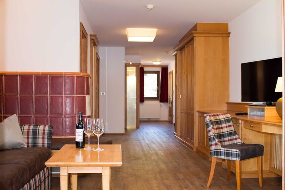 3-Zimmer Appartement mit 2 Schlafzimmern und 1 Wohnraum mit komfortabler Sitzecke, Bad, Doppelwaschbecken, getrenntes WC, Radio, Telefon, SAT-TV, Zimmersafe, Minibar, Bademantel und Fön
