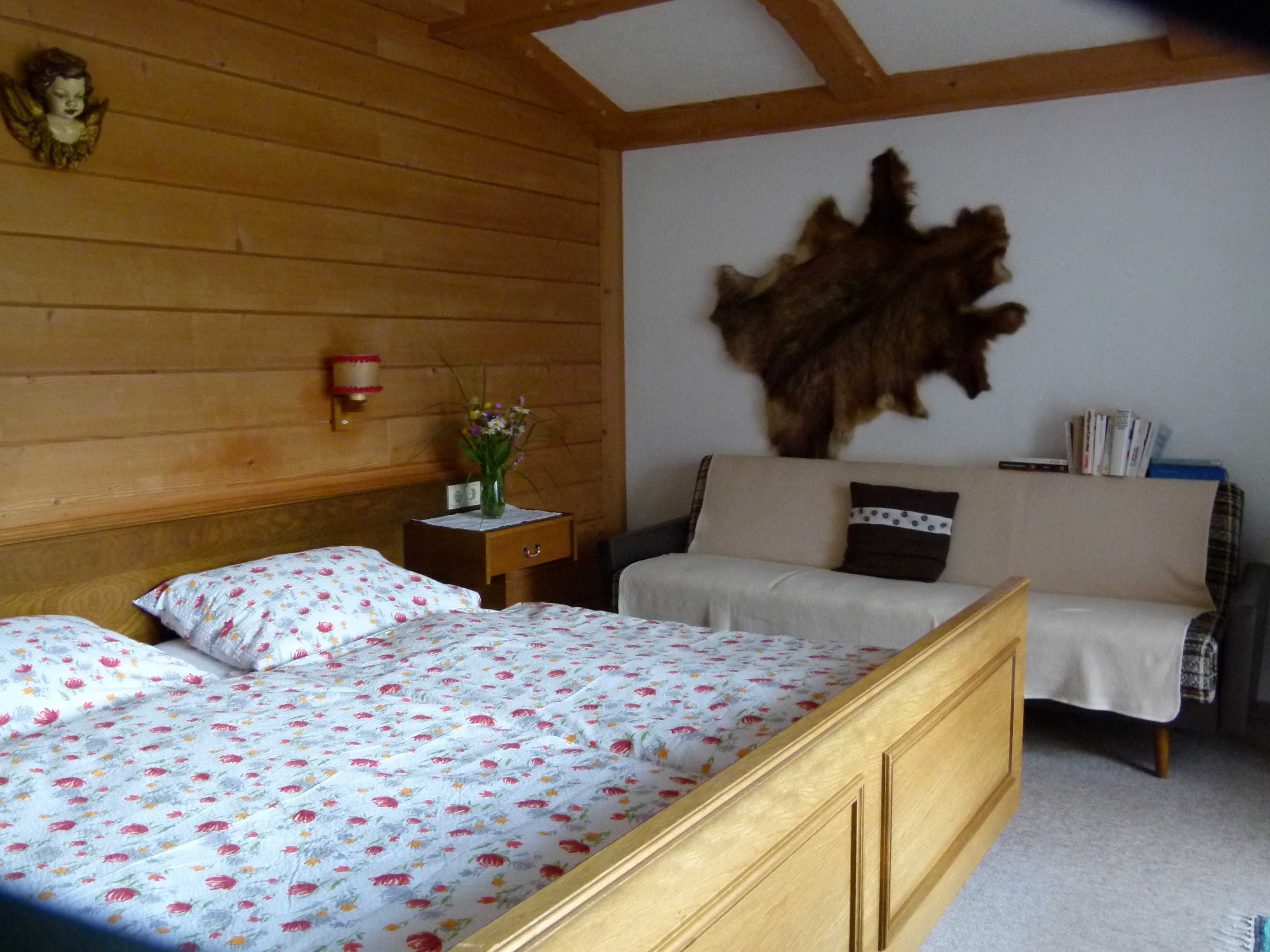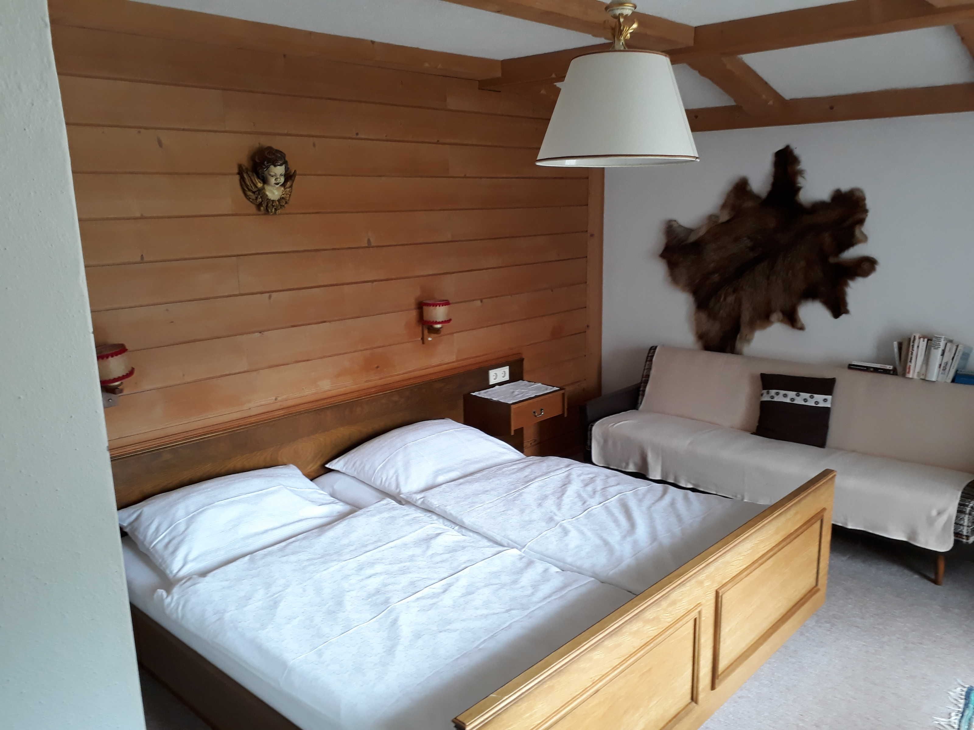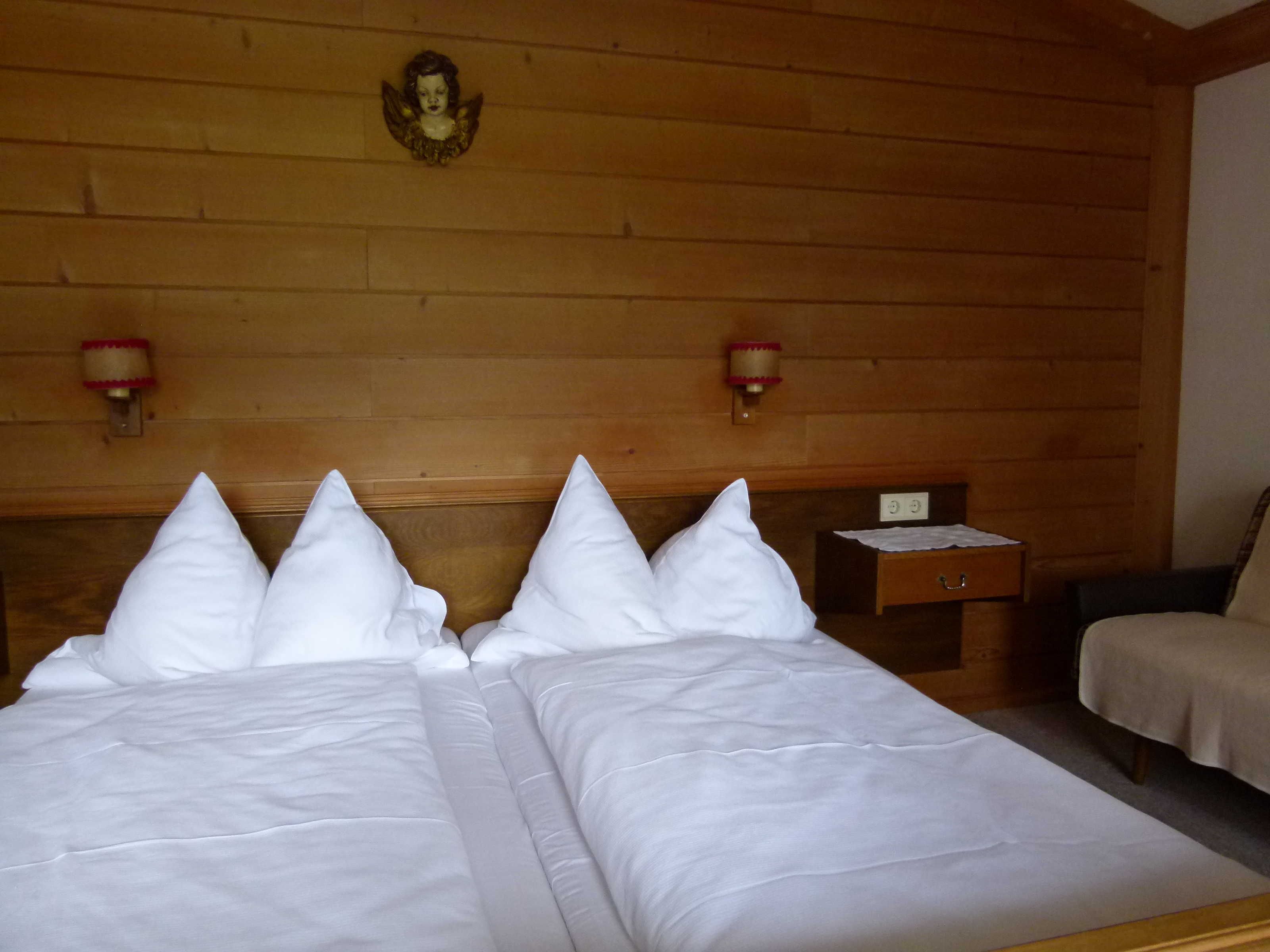 • Im kleinen hellen DZ (gerne auch als EZ) steht ein Doppelbettt mit angebauten Nachtkästchen und in der Mitte wacht ein Engel Ihren Schlaf.
