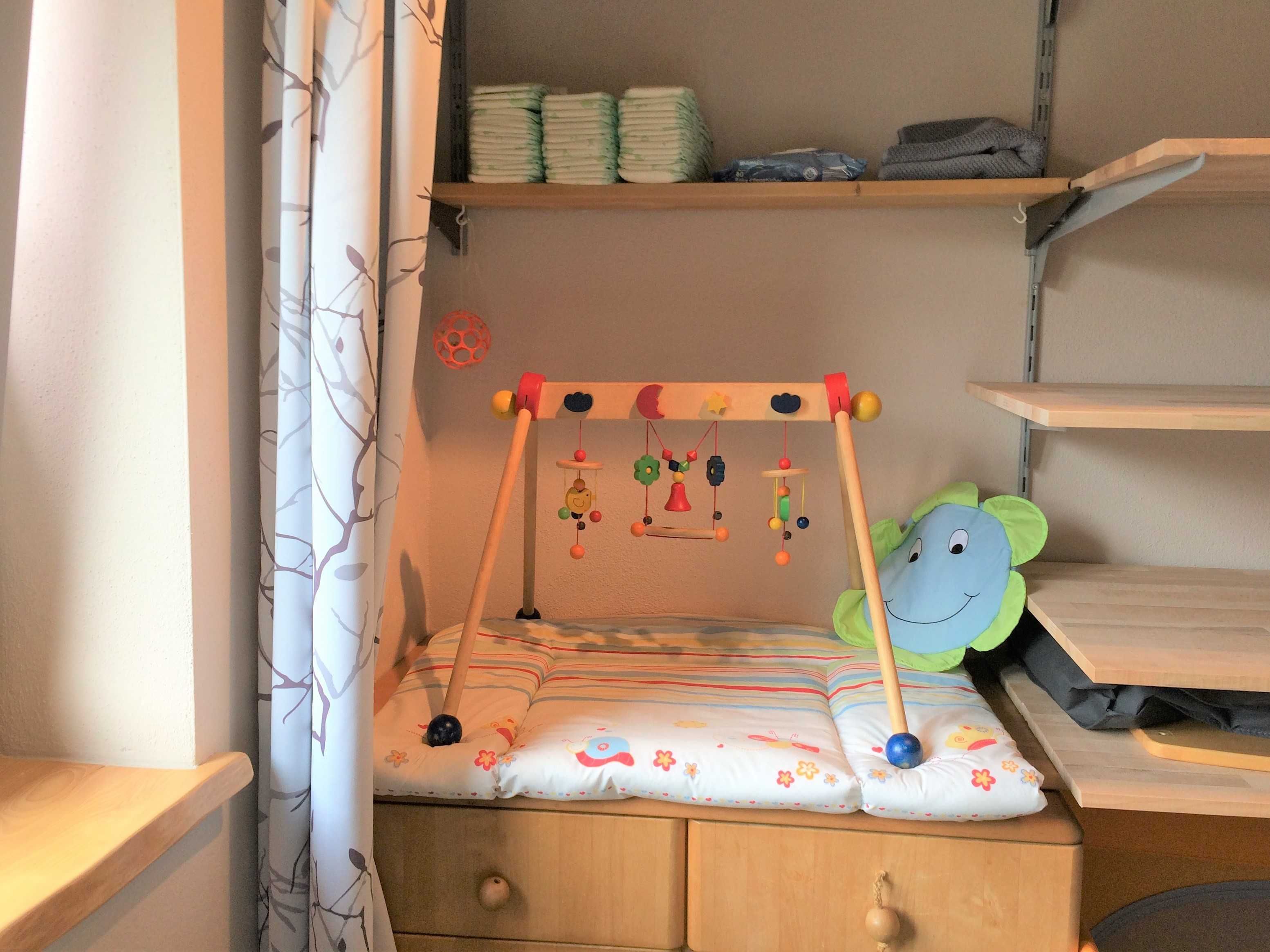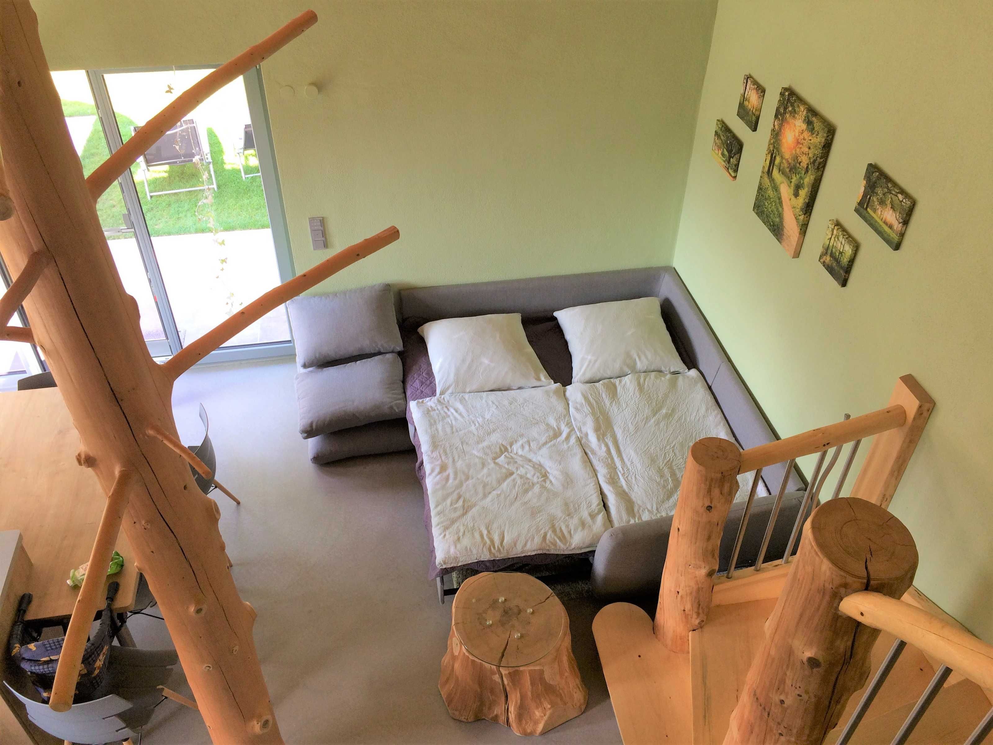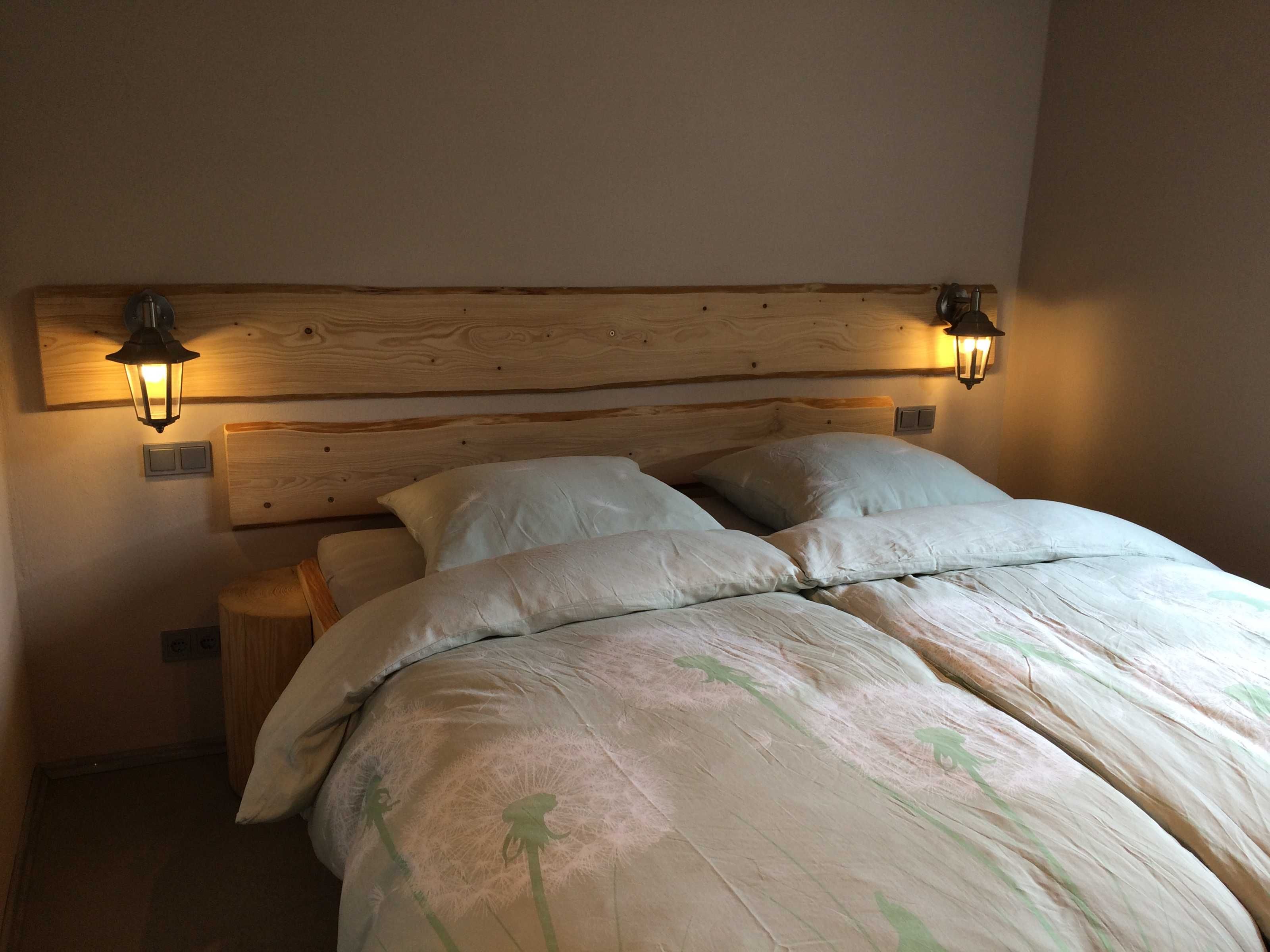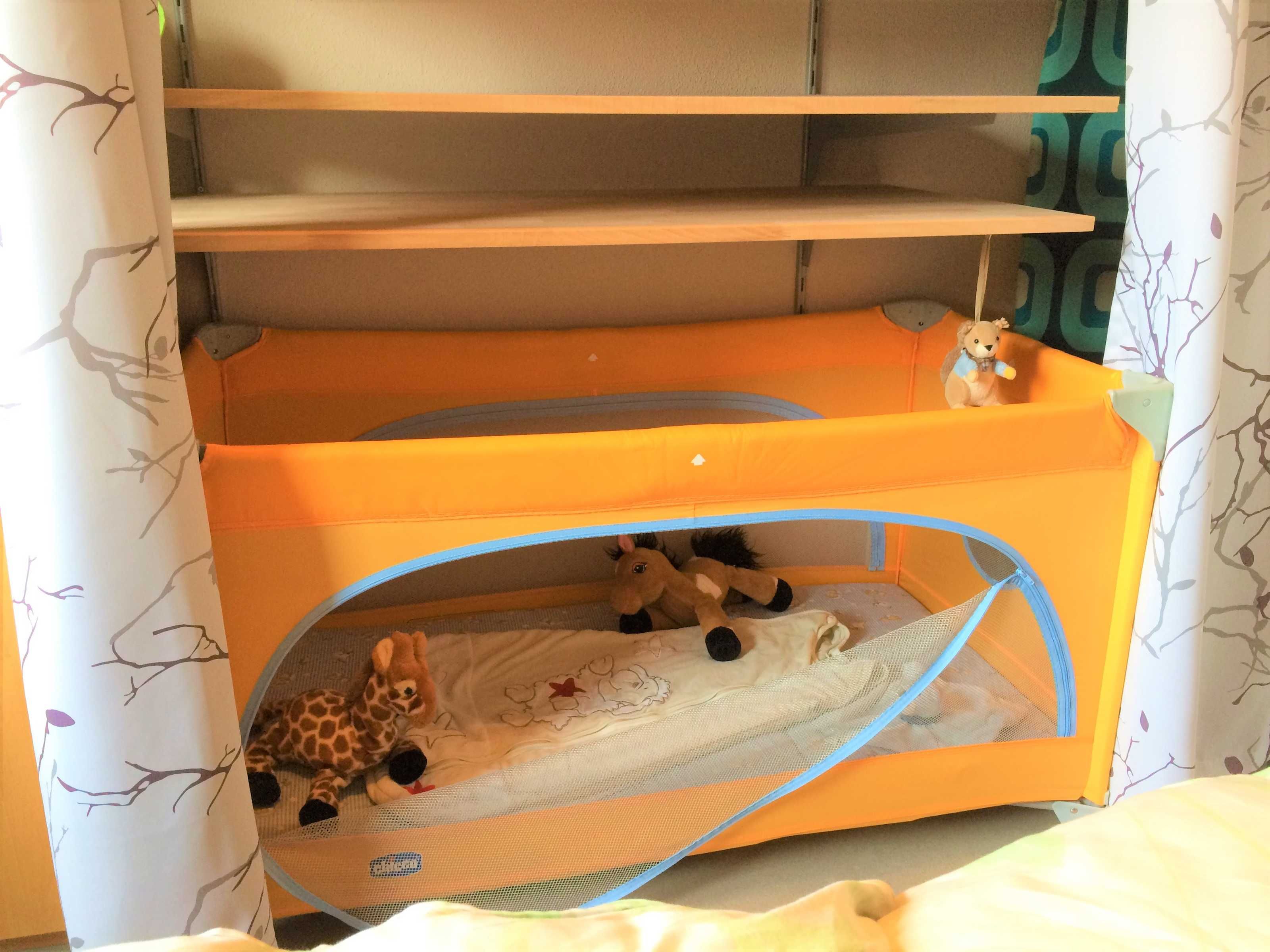 Es gibt ein abgeschlossenes Schlafzimmer mit einem Doppelbett, einer Maisonette mit einem Doppelbett und eine Auszieh-Couch. Überall können Babybetten gestellt werden.