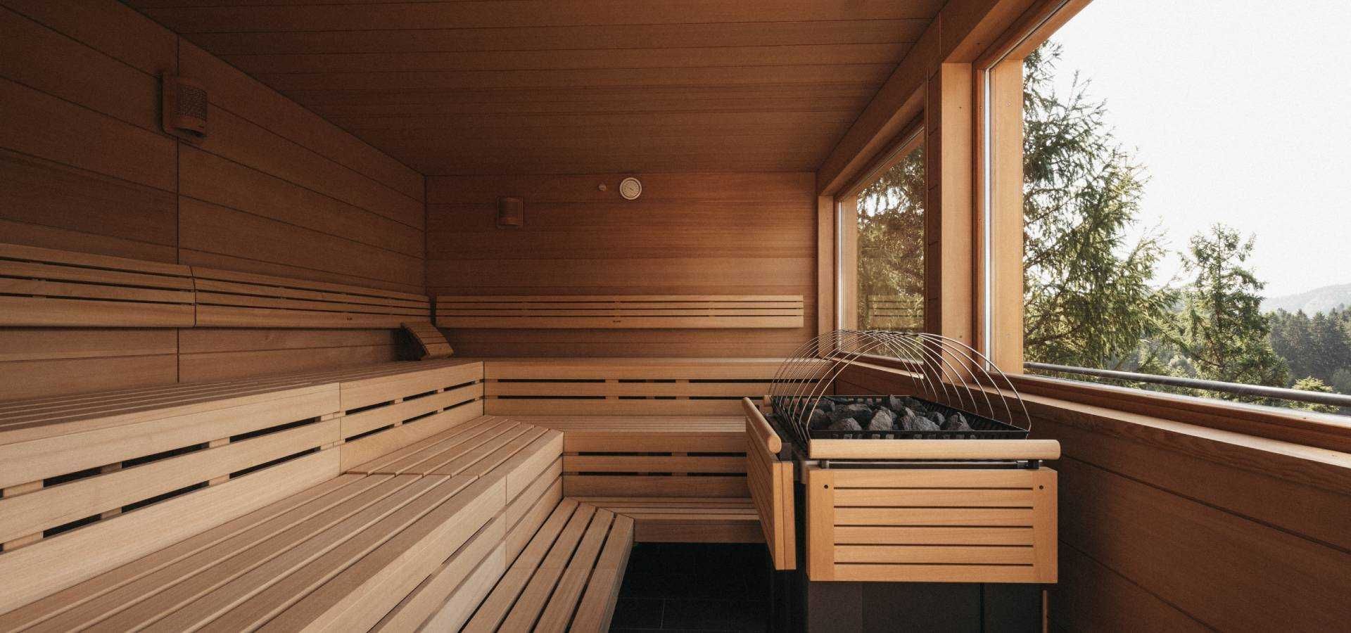 • Panorama-Sauna mit traumhaftem Ausblick auf den Mittagskogel in unserem Naturel SPA