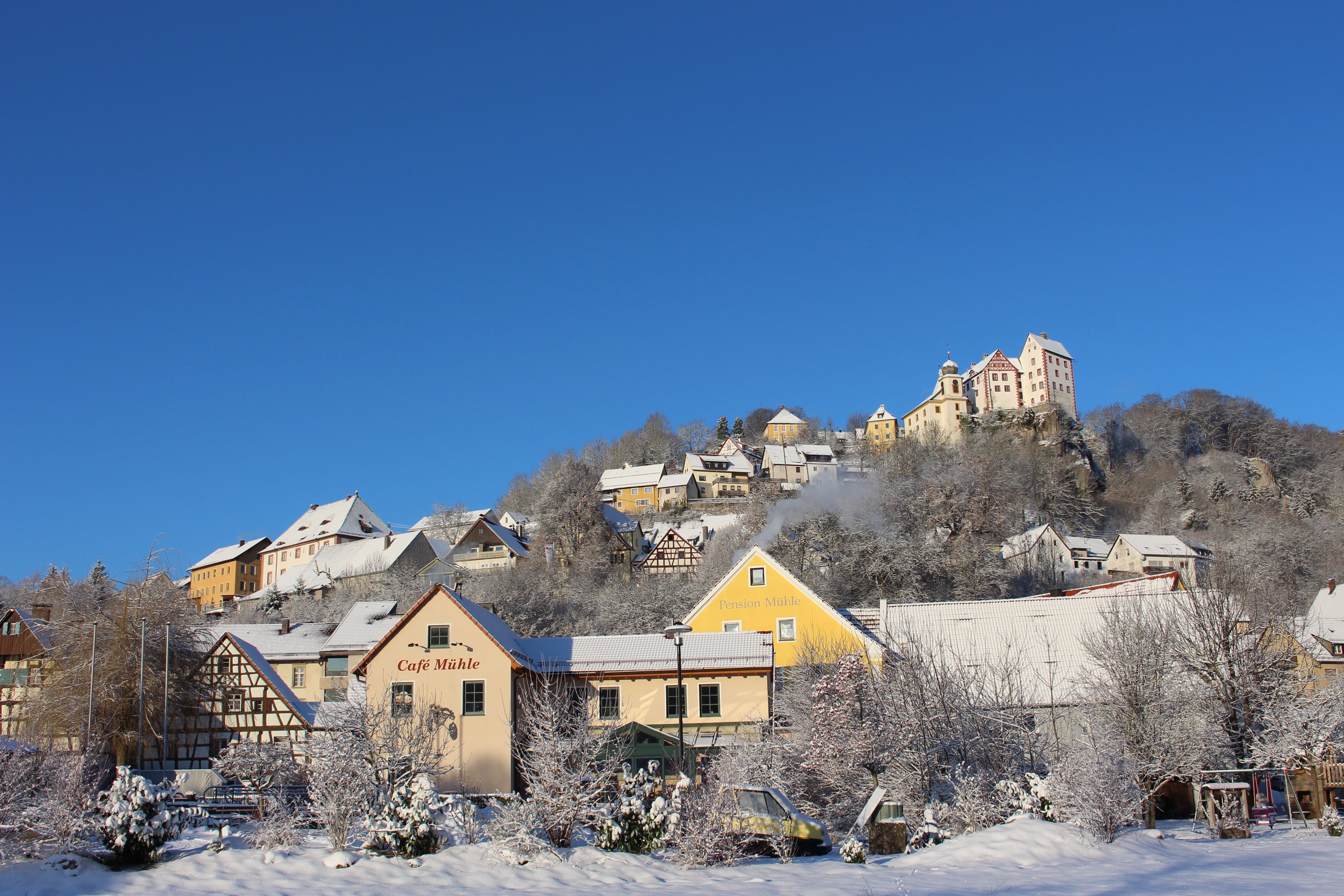 Ferien in der Fränkischen Schweiz im Land der Burgen, Höhlen und Mühlen! Unser Haus war eine dieser ehemalige Mühle im romantischen Tal der forellenreichen Trubach. Wo sich früher das rege Leben der Müller abspielte, finden Sie heute behaglich eingerichtete Gästezimmer mit Du/WC und Kabel-TV, sowie 10 gemütliche Ferienwohnungen in der Pension Mühle und in unserem 50 m entfernten Neumeyerhaus.