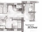 Bis zu 4 Personen finden in einem Appartement der SÜDsee genug Rückzugsmöglichkeiten für einen entspannten Urlaub. (EG, 1 Wohn-Schlafraum mit Doppelbett oder Schlafcouches, 1 Schlafraum mit Stockbetten)