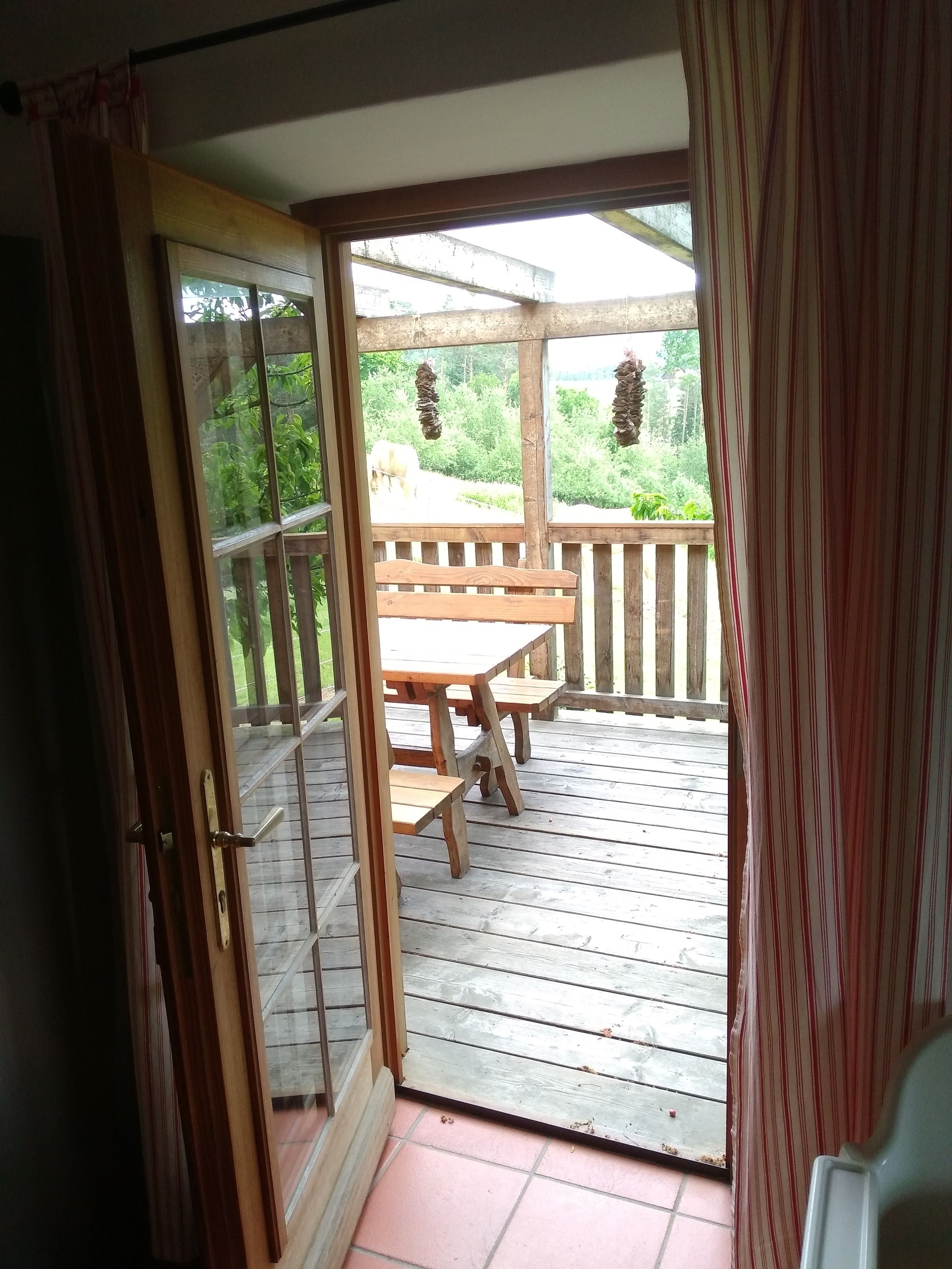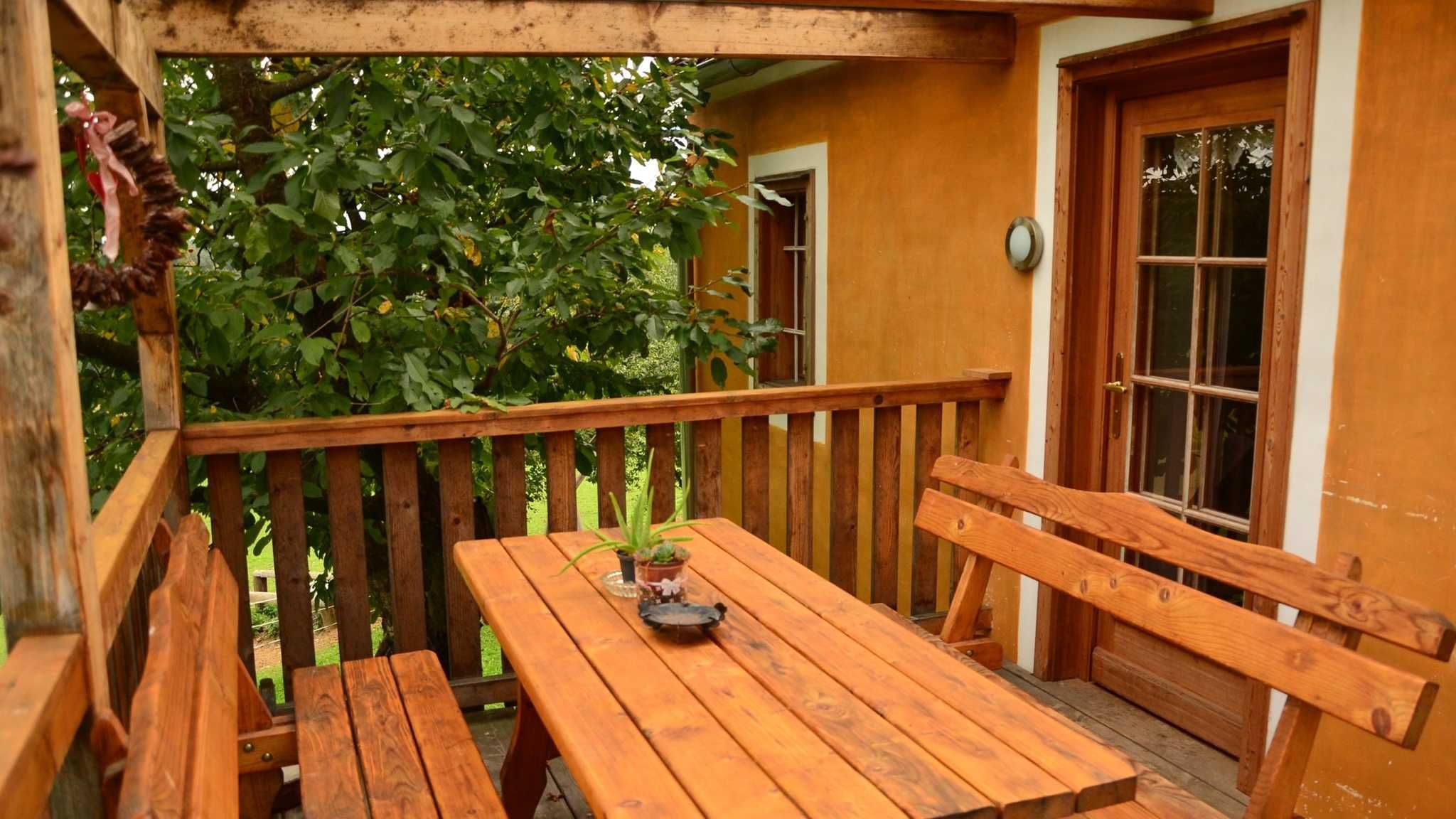 beinhaltet 2 Dreibettzimmer, 1 Zweibettzimmer mit eigener Dusche und WC, Bad, WC, große Wohnküche, großen Aufenthaltsraum und überdachte Terrasse- wäre auch für Künstler- u. Kleingruppenveranstaltungen (beispielsweise Gesundheits- und Selbstfindungsseminare, Meditationen) sehr gut geeignet (Brötchenservice bzw. Catering eventuell möglich).