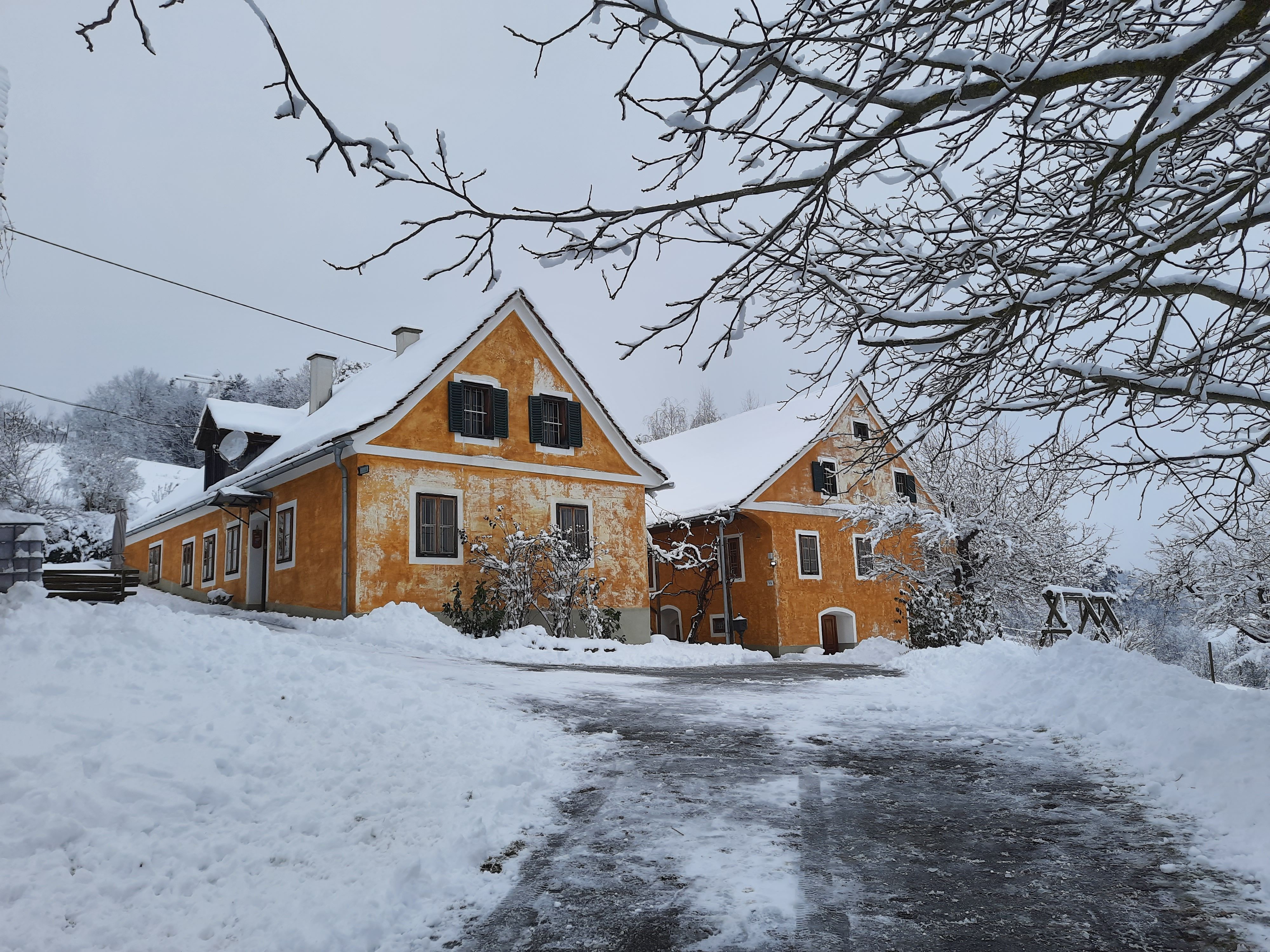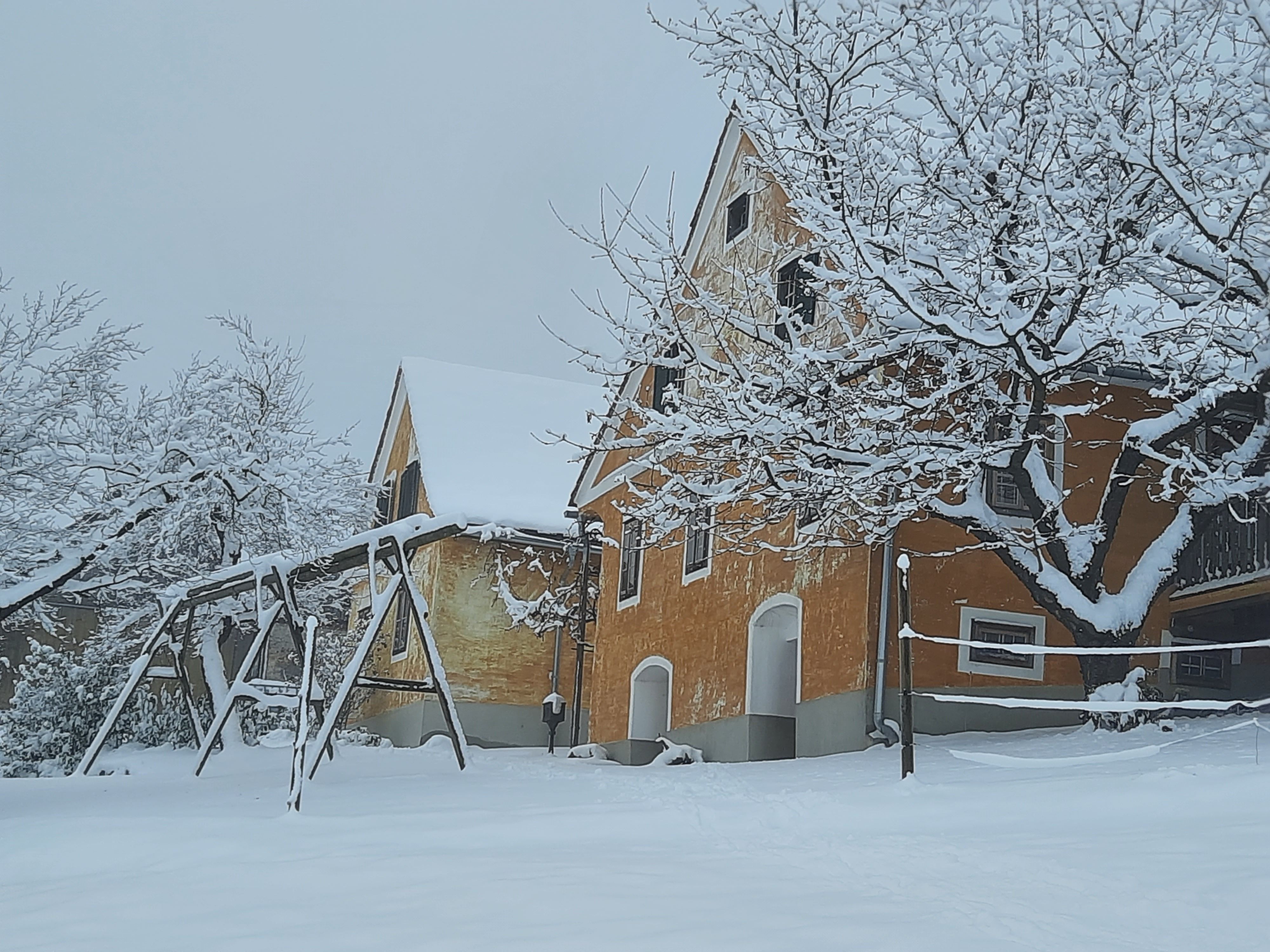 Jetzt, in der kälteren Jahreszeit, strahlen die mit Erdwärme beheizten Außenwände bzw. Böden unseres im 18. Jahrhundert Hauses eine als besonders angenehm empfundene Wärme ab. Ein Ort, an den man nach ausgiebigen Spaziergängen in den funkelnden Schneelandschaften, Langlaufausflügen oder Skitouren gerne zurückkehrt. Wanderwege, Reitmöglichkeiten und Langlaufloipen befinden sich in nächster Nähe, Skigebiete wie zum Beispiel Teichalpe und Hebalpe sind mit dem Auto in einer Stunde erreichbar.