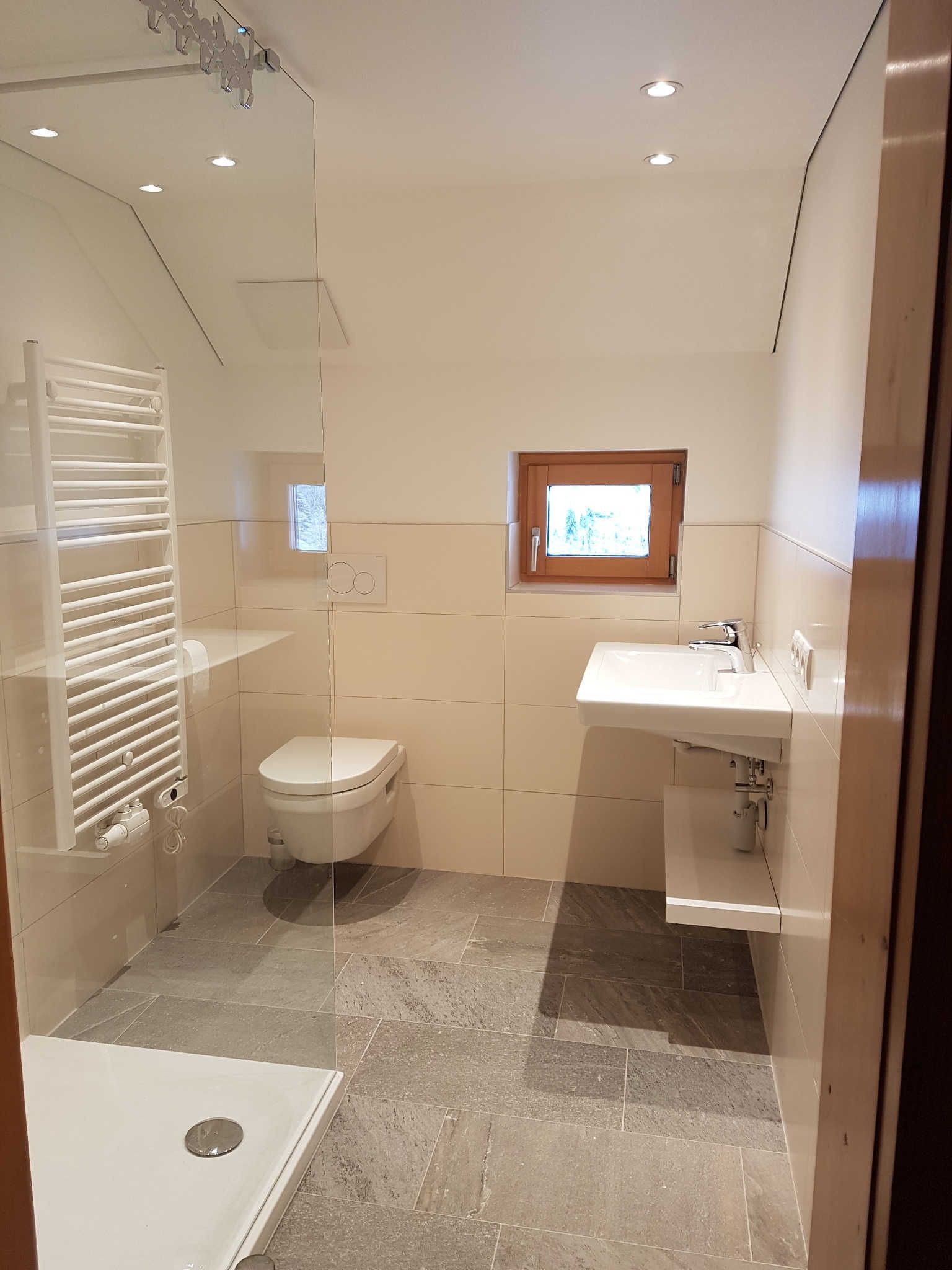 Das neu sanierte Badezimmer verfügt über eine Dusche und WC.