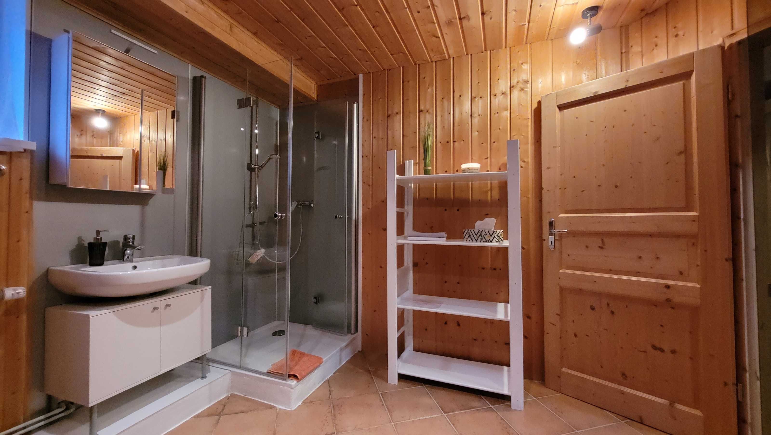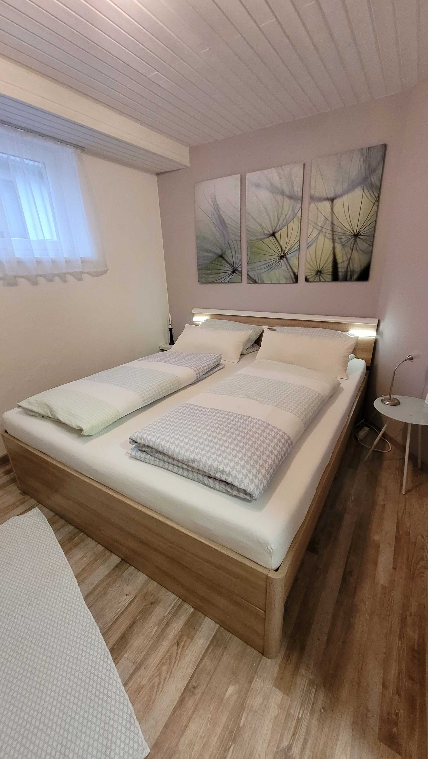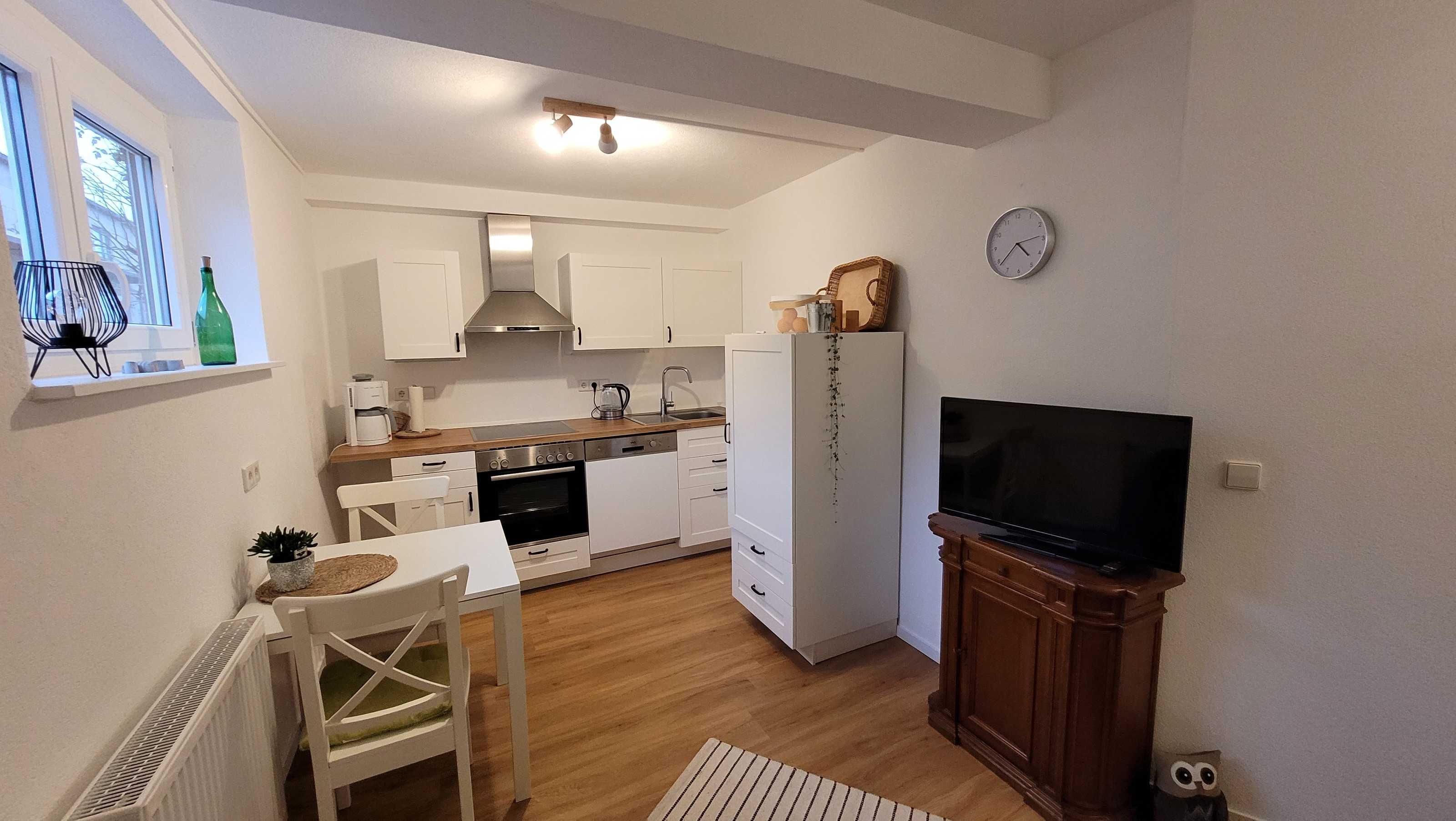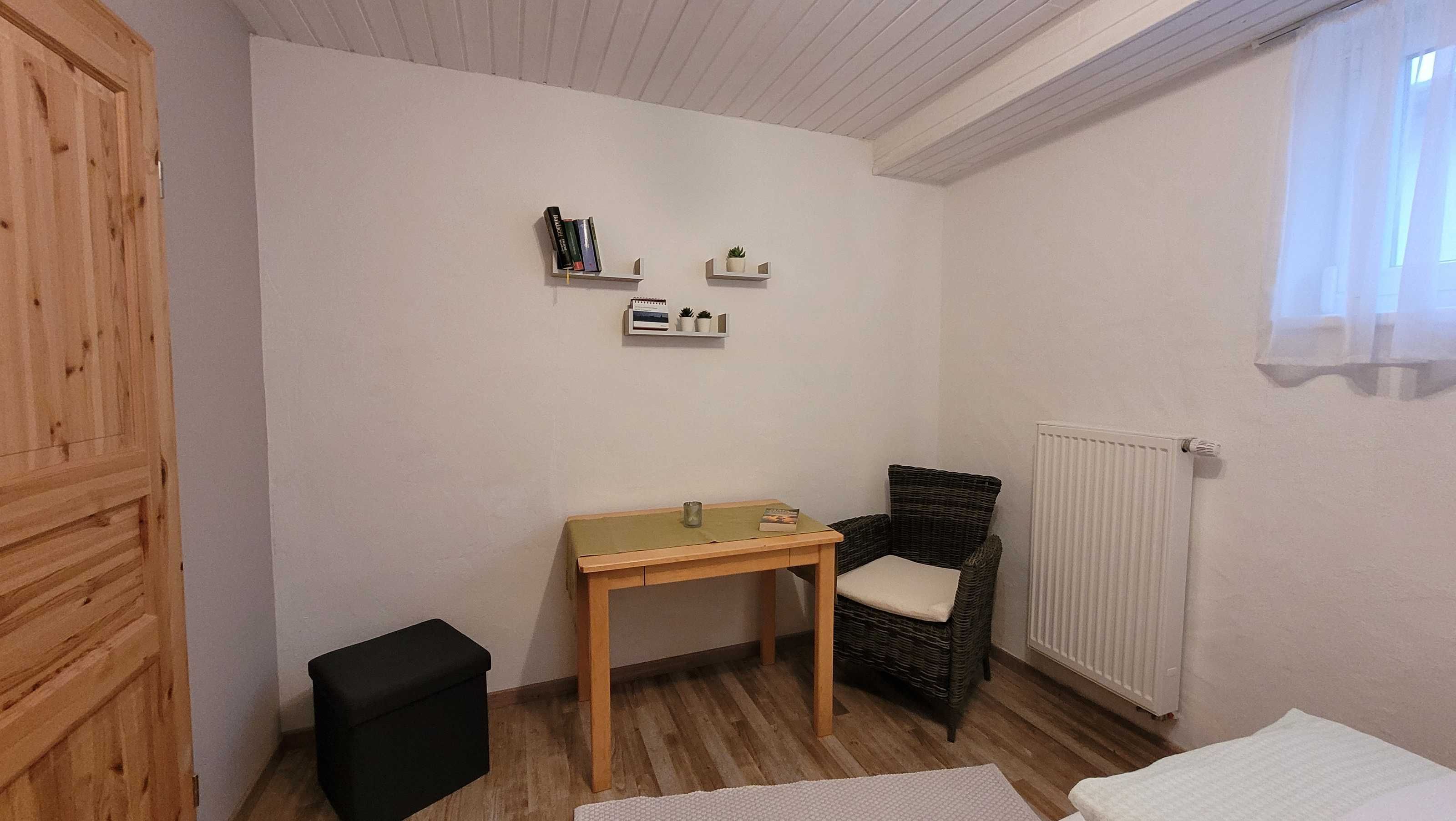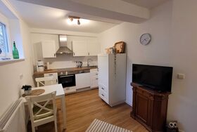 Genießen Sie Ihren Urlaub in ländlicher Umgebung. Das Apartment bietet Ihnen eine moderne Wohnküche mit Sofa und Flachbild-TV. Die Küche ist voll ausgestattet und verfügt über einen Backofen, Kühlschrank und eine Spülmaschine, ebenso ein Esstisch mit Stühlen. Im Schlafzimmer befindet sich neben einem Doppelbett eine zusätzliche Sitzgelegenheit. Das Badezimmer mit Dusche und WC ist auch mit einer Sauna ausgestattet, diese kann gegen Gebühr genutzt werden. Beim Haus steht ein Freisitz mit Liegestühlen und Grill für unsere Gäste bereit. Ideal auch für Wanderer oder Kurzübernachtungen.