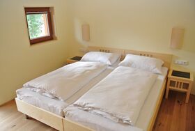 Schlafzimmer: Doppelbett, Nachtkästchen, Schrank