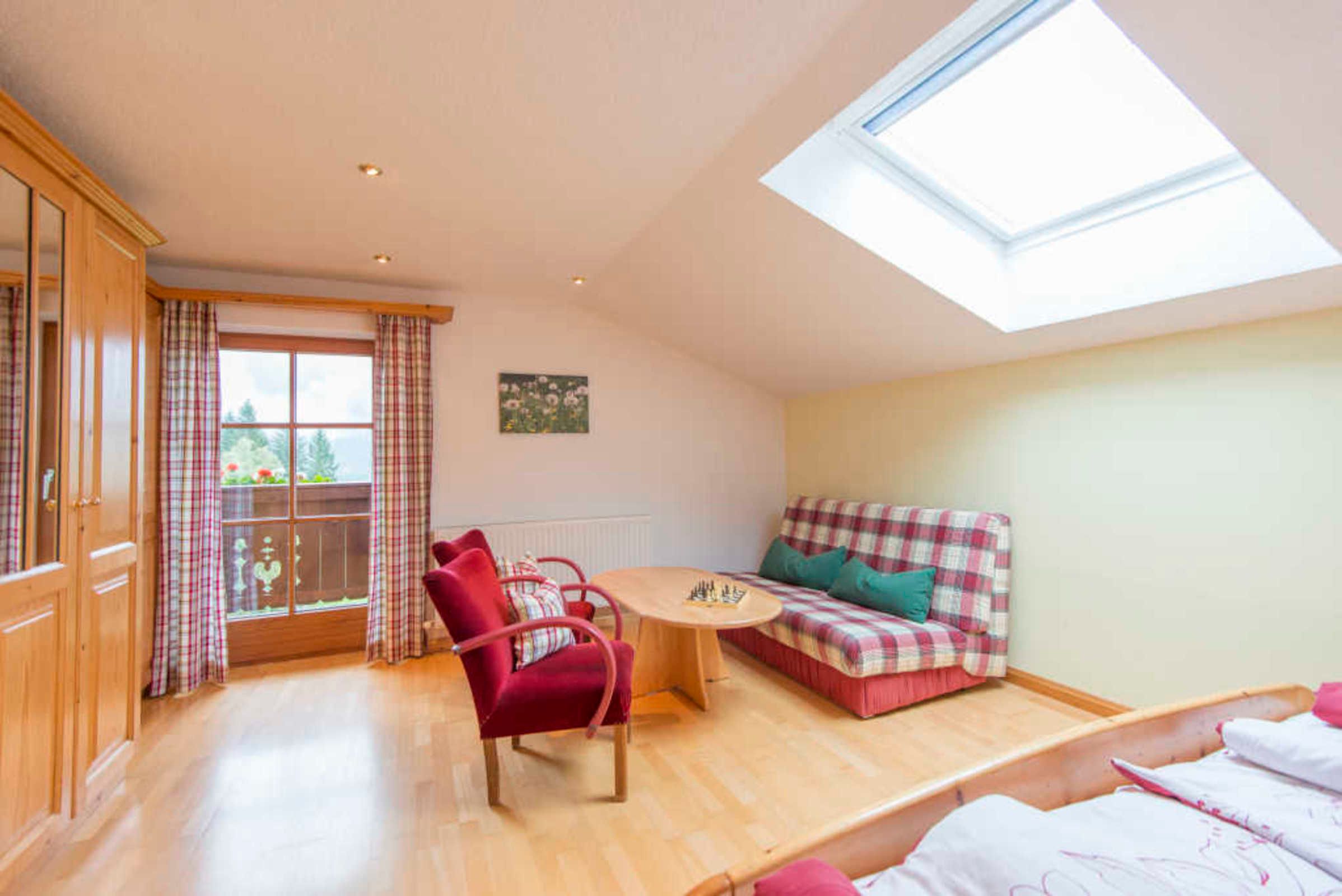 Diese Wohnung mit Balkon für 4-6 Personen mit 58 m² verfügt über zwei Schlafzimmer mit Doppelbett, einen Vorraum mit Garderobe, einem Bad mit Dusche/WC sowie über eine gut ausgestattete Küche mit gemütlicher Sitzecke. Die Küche ist mit Geschirrspüler, Kühlschrank mit Gefrierschrank, E-Herd mit Backofen, Ceran-Kochfeldern und Dunstabzug, Mikrowelle, Wasserkocher, Kaffeemaschine, Stabmixer... ausgestattet. Kochutensilien und Geschirr ist vorhanden sowie ein CD-Player mit Radio und USB-Anschluss. Bettwäsche, Hand- und Badetücher sind im Preis inkludiert. Gratis WLAN. Kleinkindausstattung auf Anfrage. Frühstückskorb mit hofeigenen Produkten gegen Aufpreis möglich.