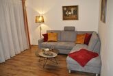 Polstergarnitur mit Tisch, Bettcouch, Flachbildschirm, WLAN, durch das Wohnzimmer gelangen Sie auf die Terrasse.
