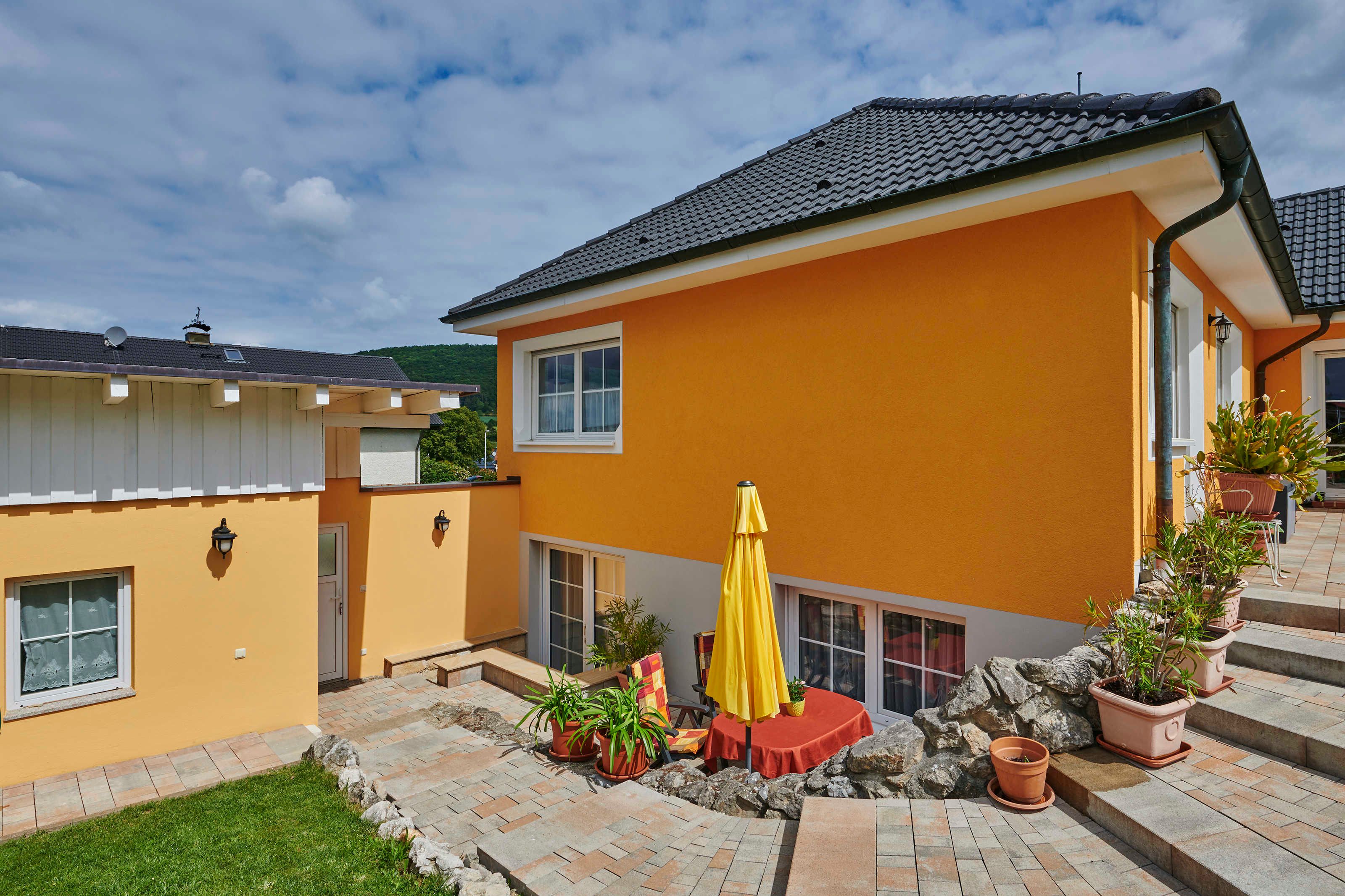 Tisch mit Stühlen, Sonnenschirm, auf Wunsch steht Ihnen ein Grill zur Verfügung. In den Sommermonaten können Sie den Tag auf der Terrasse mit dem Frühstück beginnen und laue Abende ausklingen lassen.