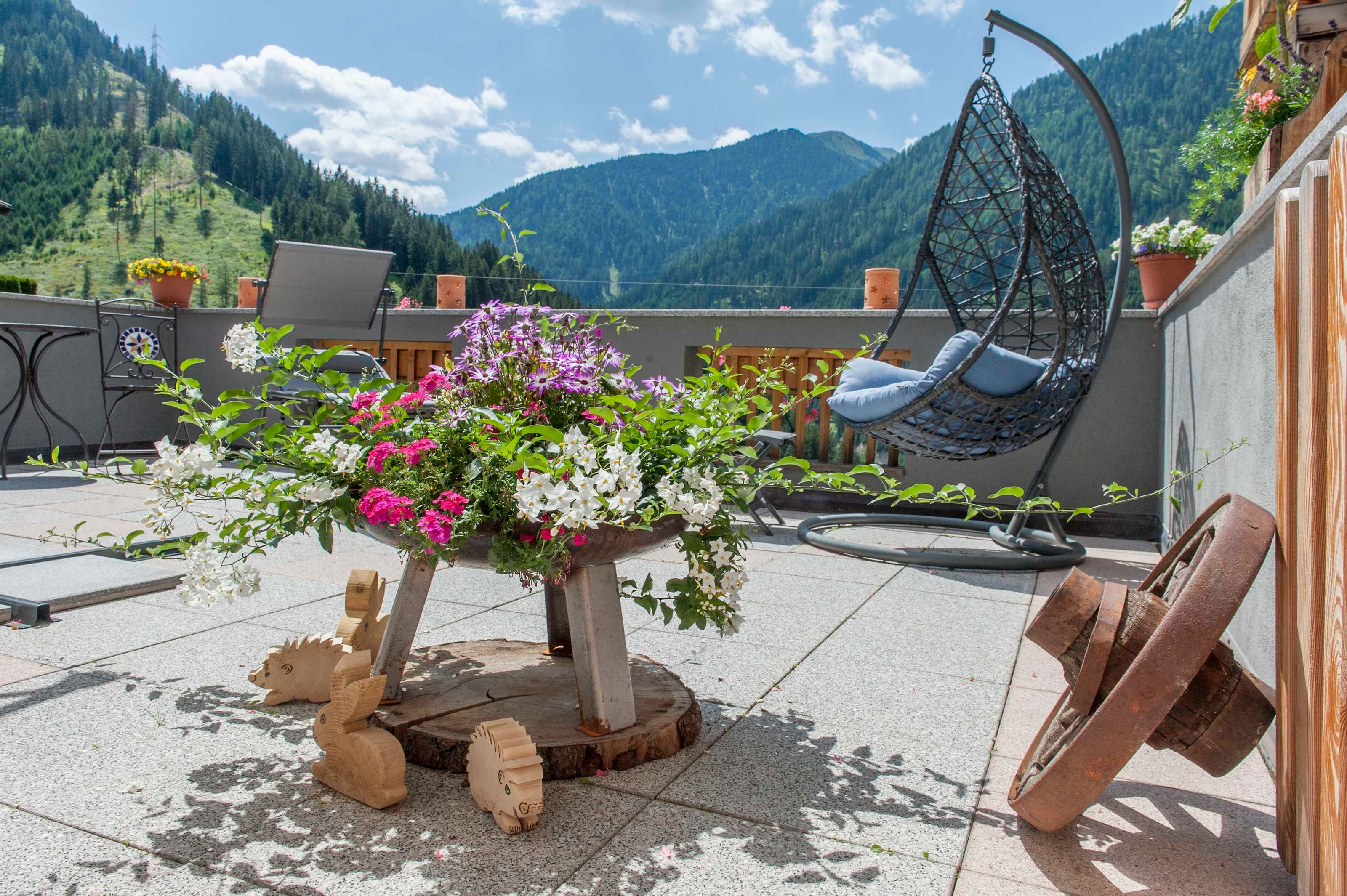 Sie haben Zugang zu unserer neu gestalteten Wohlfühlterrasse als Entspannungsplatzl.