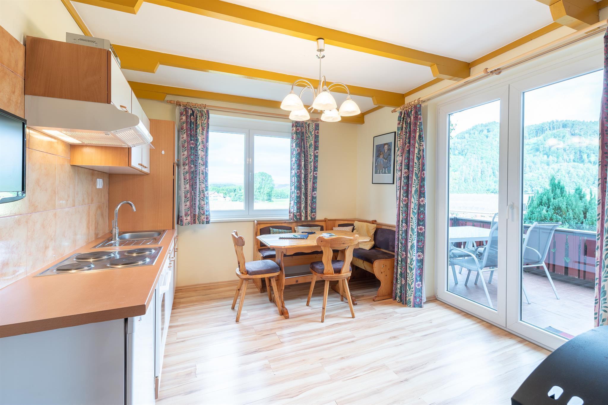 Die Ferienwohnungen im Bauernhaus und die Bungalows sind mit einer komplett eingerichteten Küche ausgestattet und unser Bäcker versorgt Sie täglich mit frischem Gebäck.