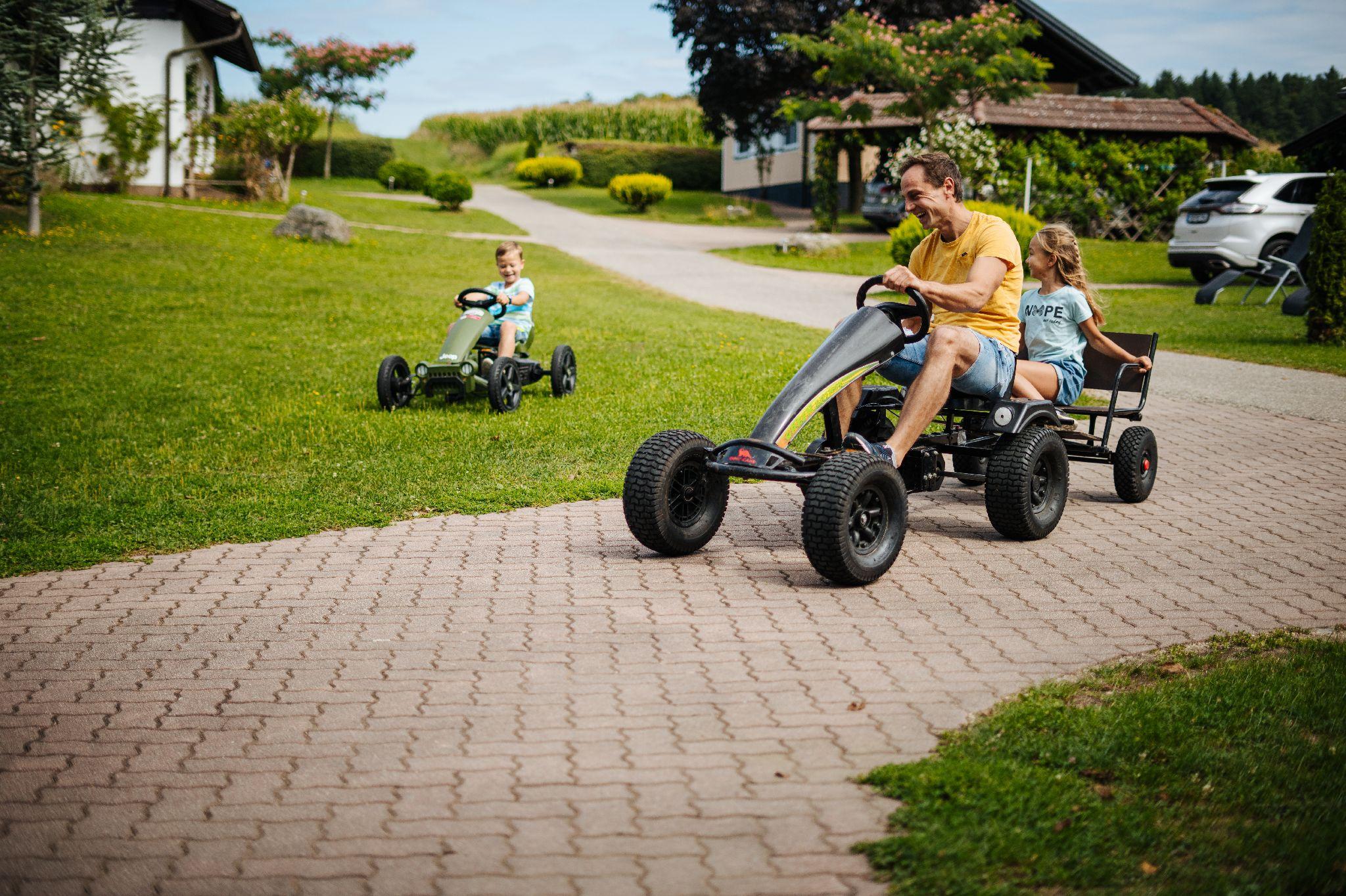 Genießen Sie auf unserem riesigen Hof-Areal die Ruhe, während sich die Kids bei den Streicheltieren oder am großen Spielplatz austoben.