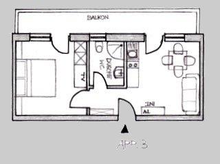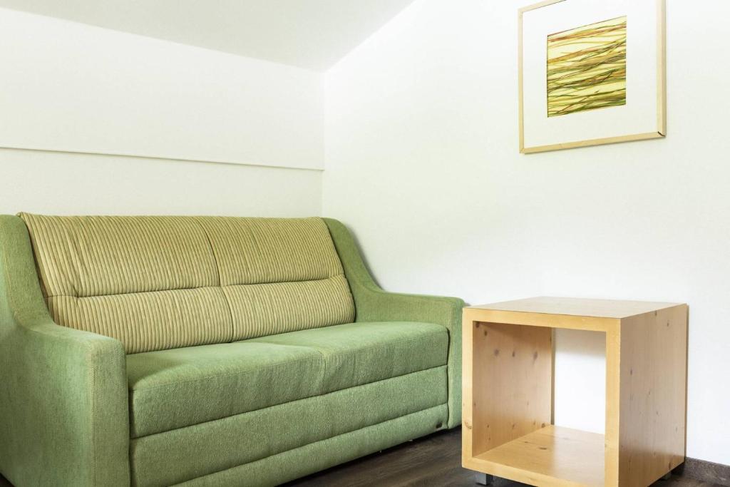 Komfortable Wohnung mit einem Doppelzimmer mit Dusche/WC und seperatem Wohn-Essbereich mit einer vollausgestatteter Küchenzeile und Sofa.