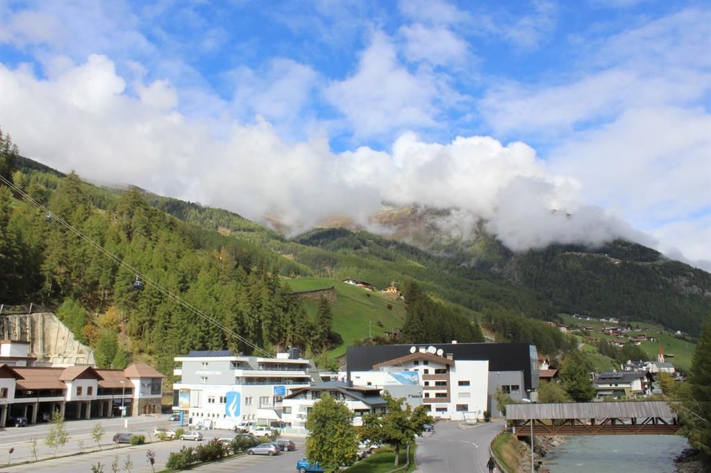 Balkon mit Blick zur Gaislachkogelbahn und Zentrum. Das Schlafzimmer und Wohnzimmer verfügt über einen Kabel-Flat-TV.