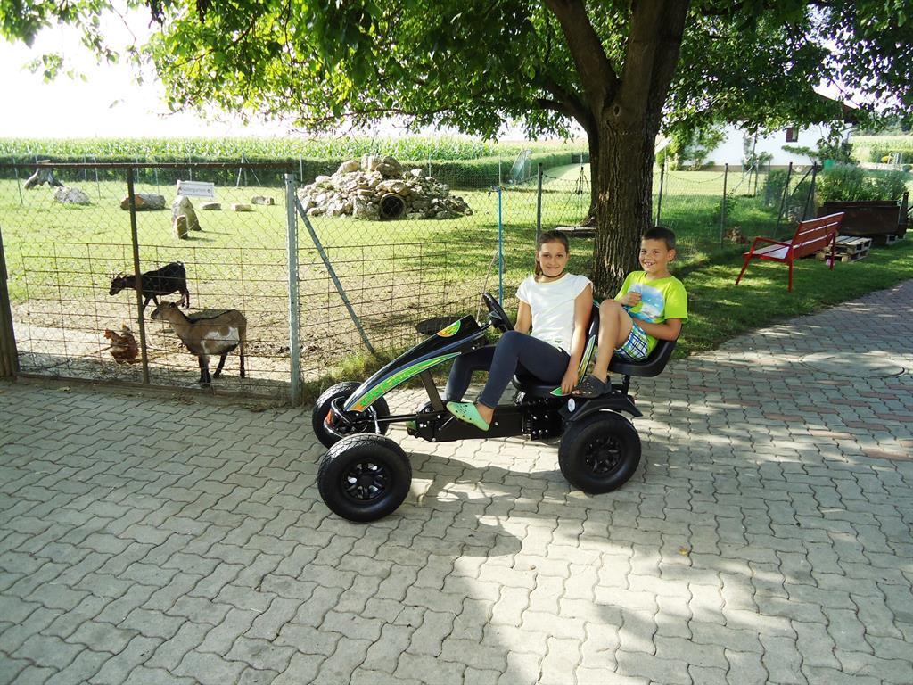 Genießen Sie auf unserem riesigen Hof-Areal die Ruhe, während sich die Kids bei den Streicheltieren oder am großen Spielplatz austoben.