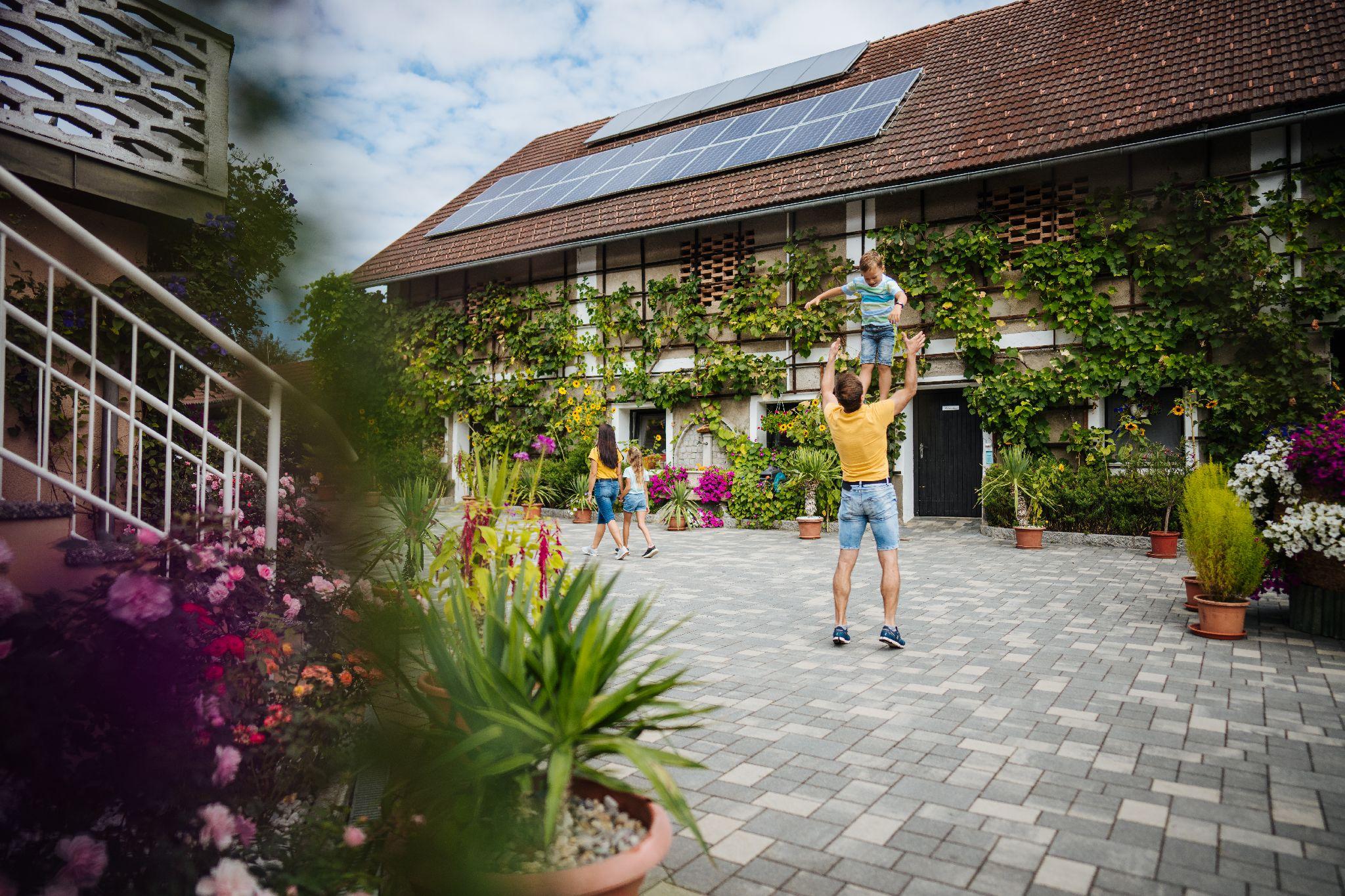 Genießen Sie auf unserem riesigen Hof-Areal die Ruhe, während sich die Kids bei den Streicheltieren oder am großen Spielplatz austoben.