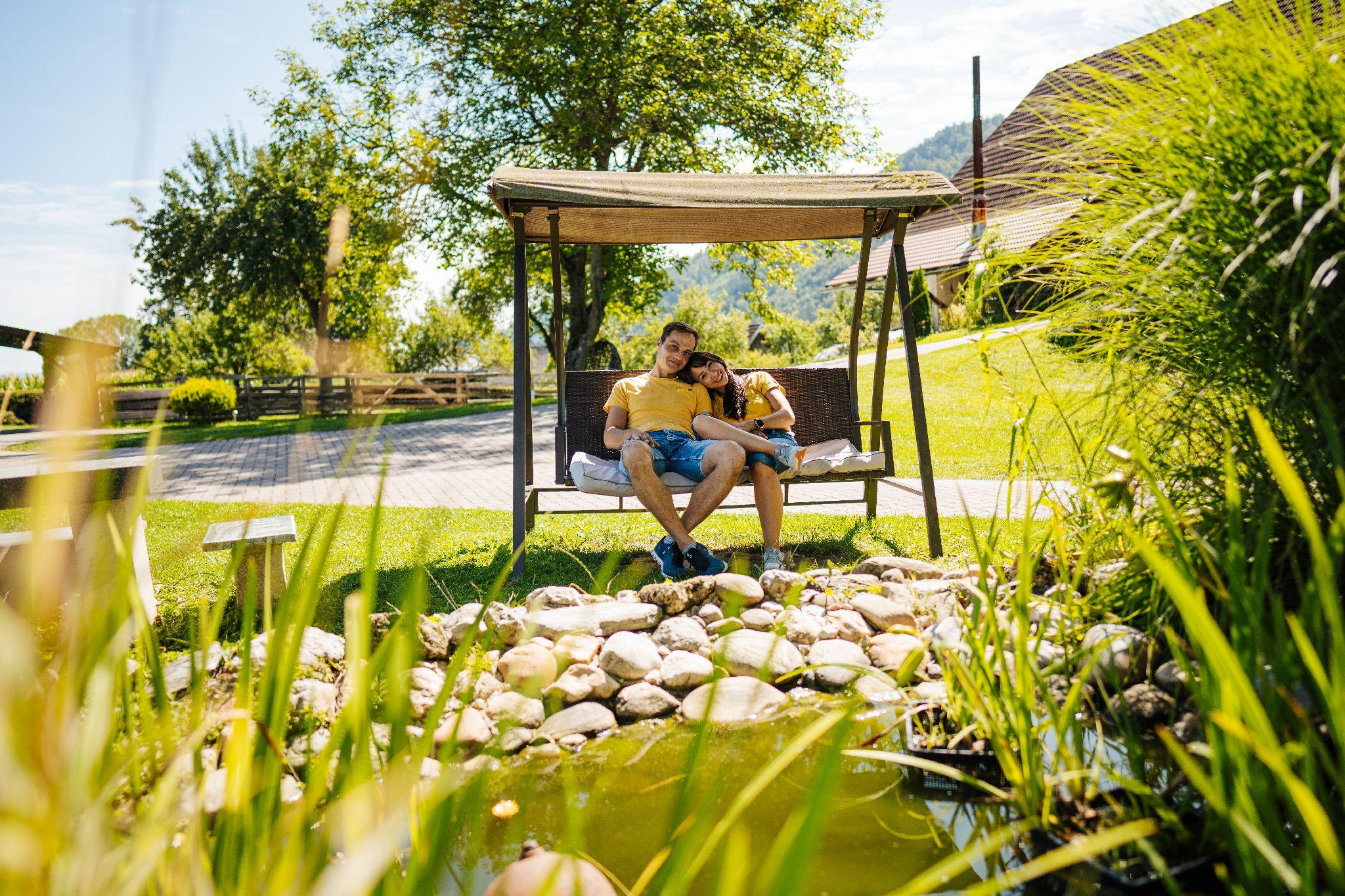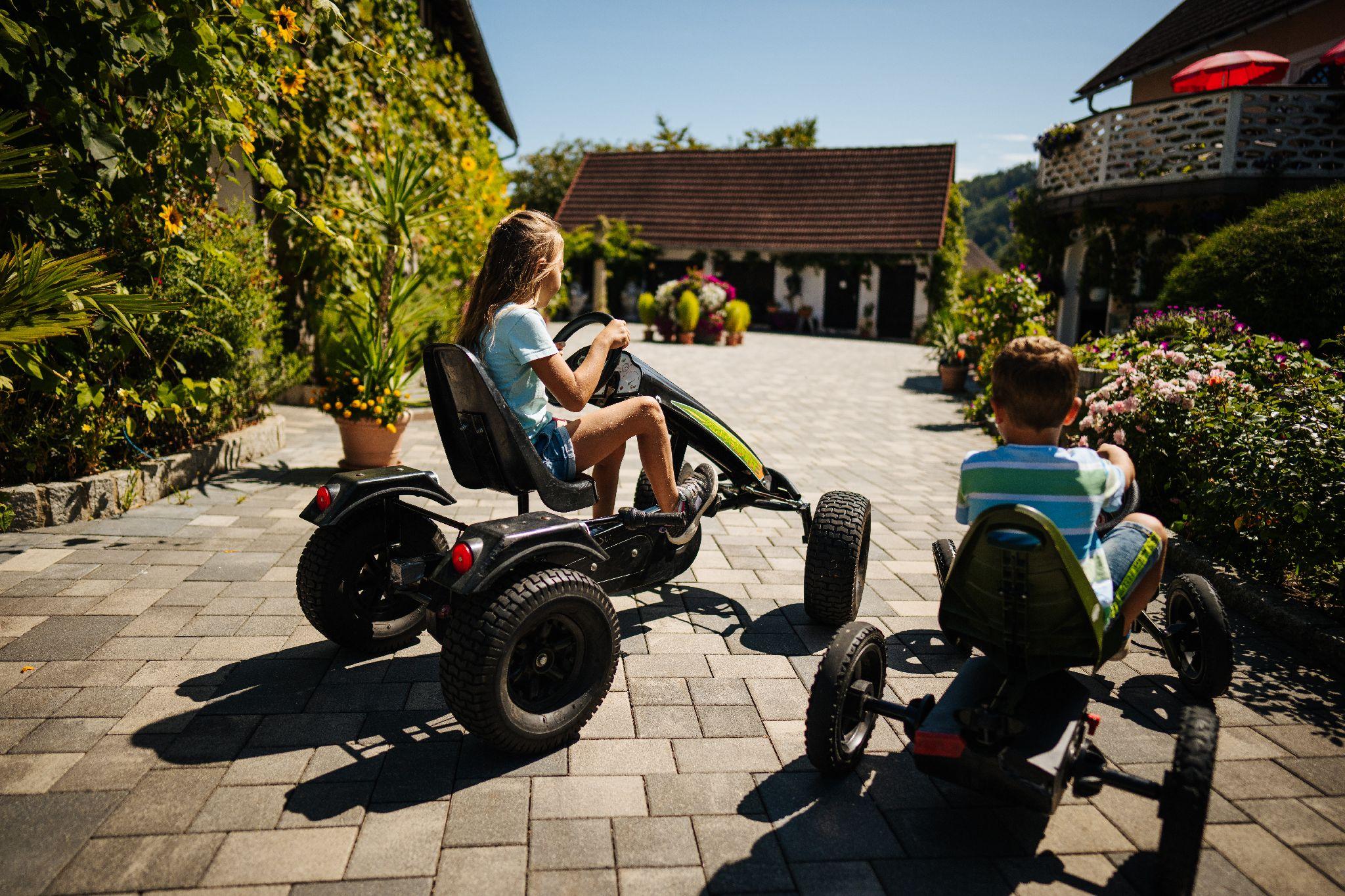 Genießen Sie auf unserem riesigen Hof-Areal die Ruhe, während sich die Kids bei den Streicheltieren oder am großen Spielplatz austoben.