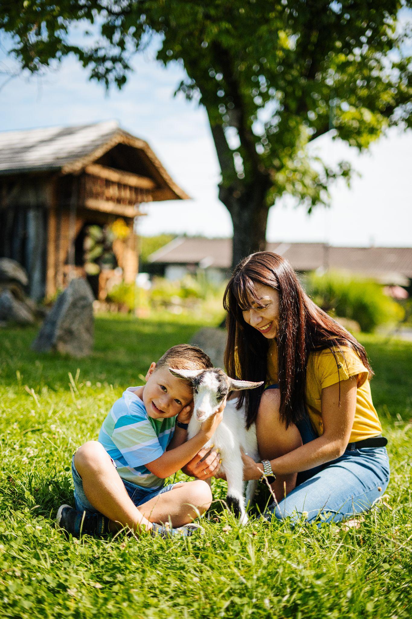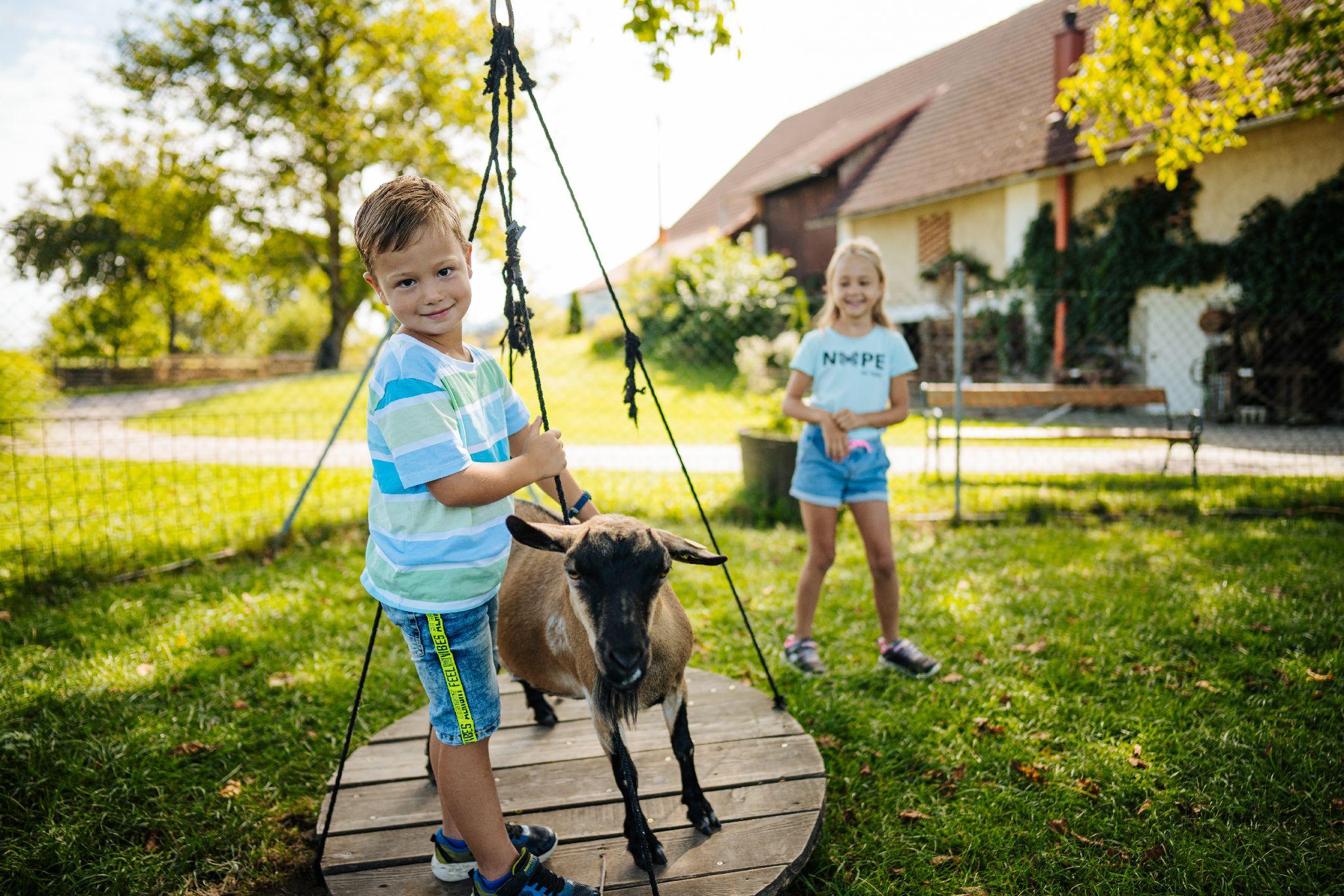 Genießen Sie auf unserem riesigen Hof-Areal die Ruhe, während sich die Kids bei den Streicheltieren oder am großen Spielplatz austoben.