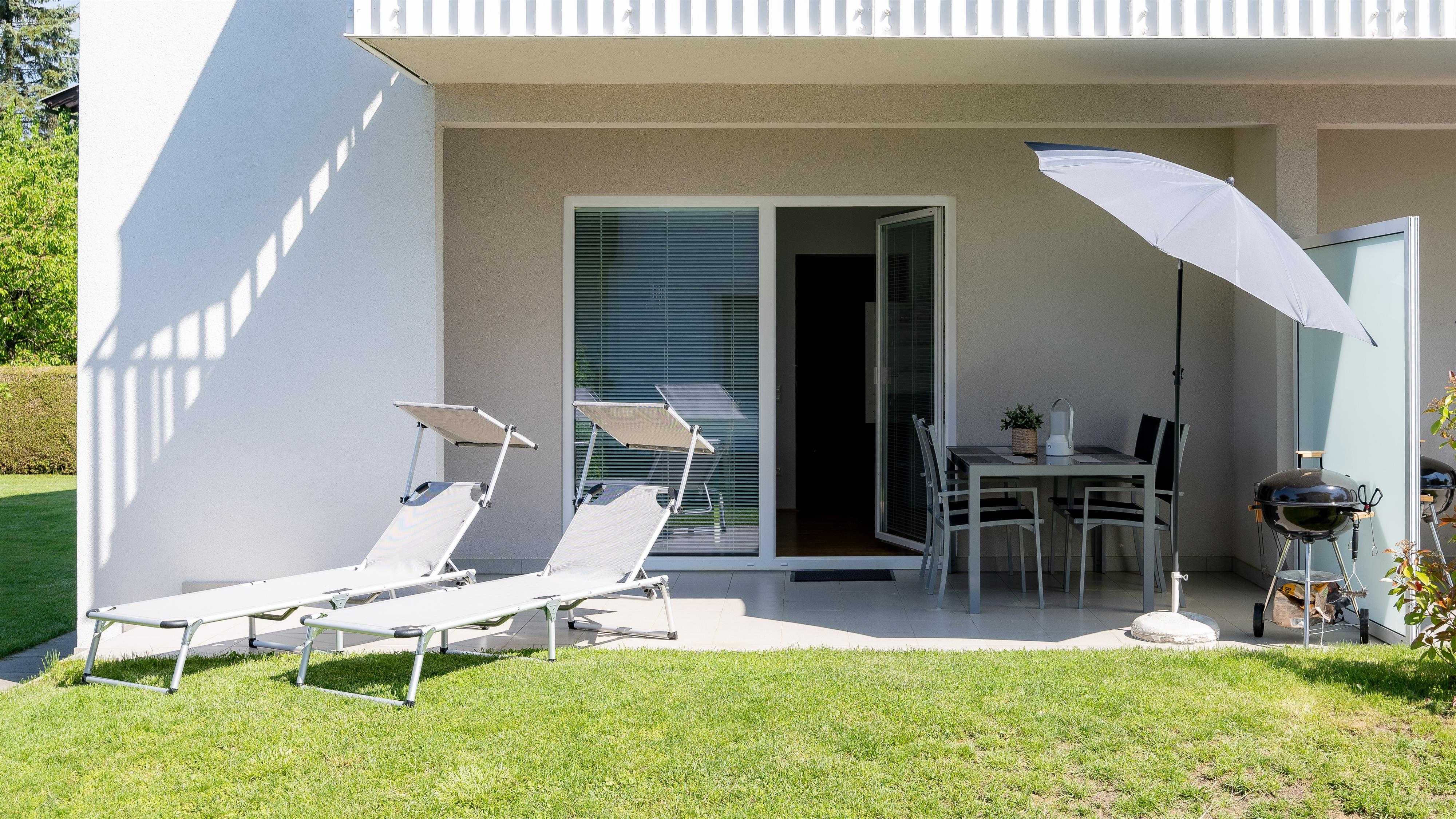 Die Wohnungen bestehen aus einem Vorraum, zwei Doppelzimmer, Badezimmer/WC,Fön, einem Wohnzimmer mit ausziehbarer Couchgarnitur, Esstisch, LCD-TV mit Musikkanal, Internet über W-LAN, komplett ausgestatteter Küche mit Mikrowelle, Geschirrspüler, Backofen, Kaffeemaschine, Sodastream uvm. sowie einer großen Terrassen mit Terrassenmöbel, 2 Sonnenliegen und Griller. Bett- u. Tischwäsche, Geschirr- u. Handtücher werden bereitgestellt. Auf Wunsch Zustellbett, Kinderbett (Gitterbett) und Hochstuhl. Waschservice gegen Gebühr im Haus.