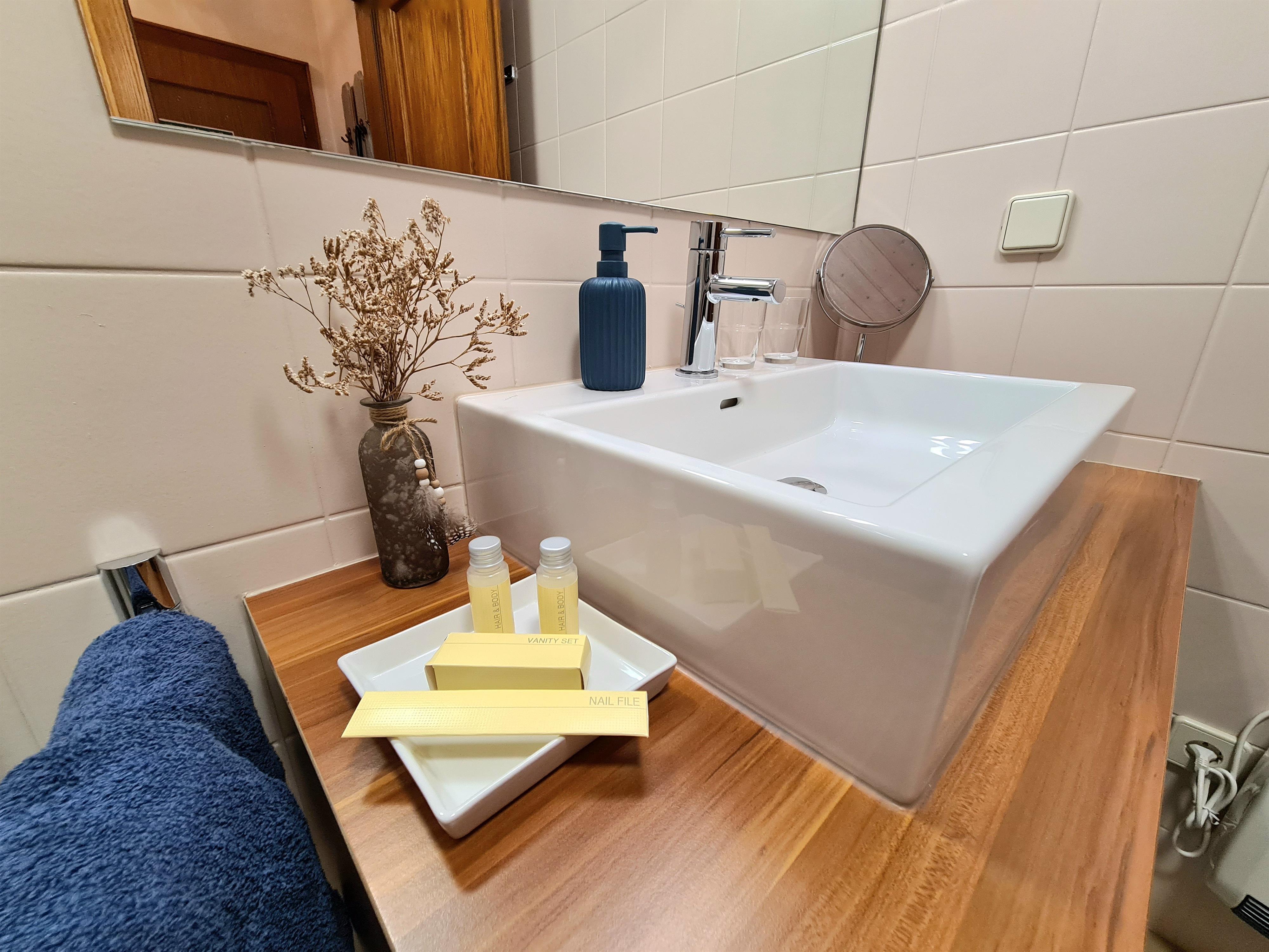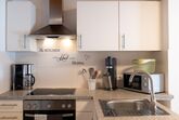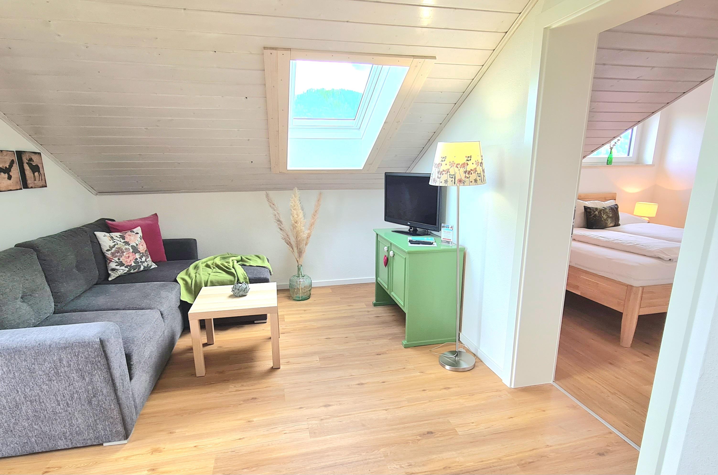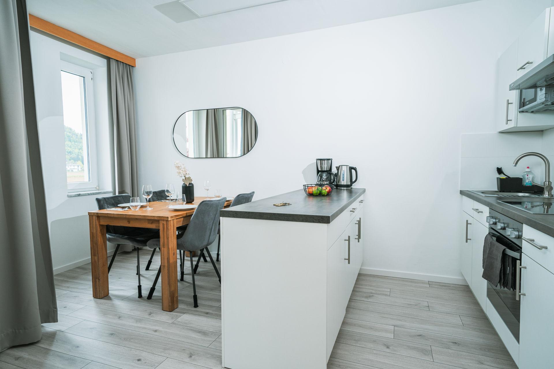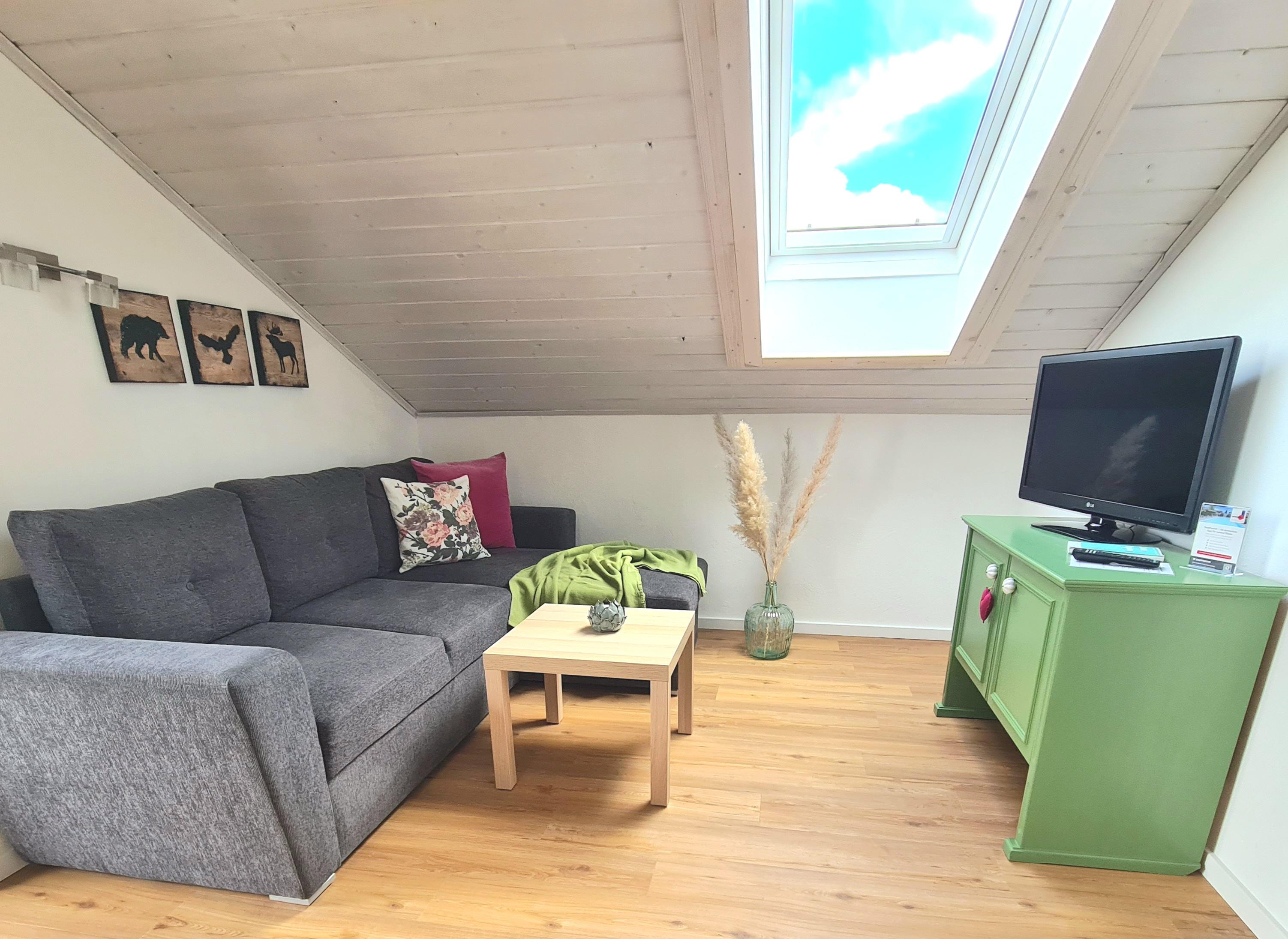 Die Wohnungen bestehen aus einem Vorraum, einem Schlafraum, Dusche/WC,Fön, Wohnzimmer mit ausziehbarer Couch (max. 2 Kinder oder 1 Erwachsener), Esstisch, LCD-TV mit Musikkanal, Internet über W-LAN, komplett ausgestatteter Küche mit Mikrowelle, Geschirrspüler, Backofen, Kaffeemaschine uvm. sowie einem großen Balkon mit Terrassenmöbel. Bett- u. Tischwäsche, Geschirr- u. Handtücher werden bereitgestellt. Auf Wunsch Kinderbett (Gitterbett) und Hochstuhl. Waschservice gegen Gebühr im Haus.