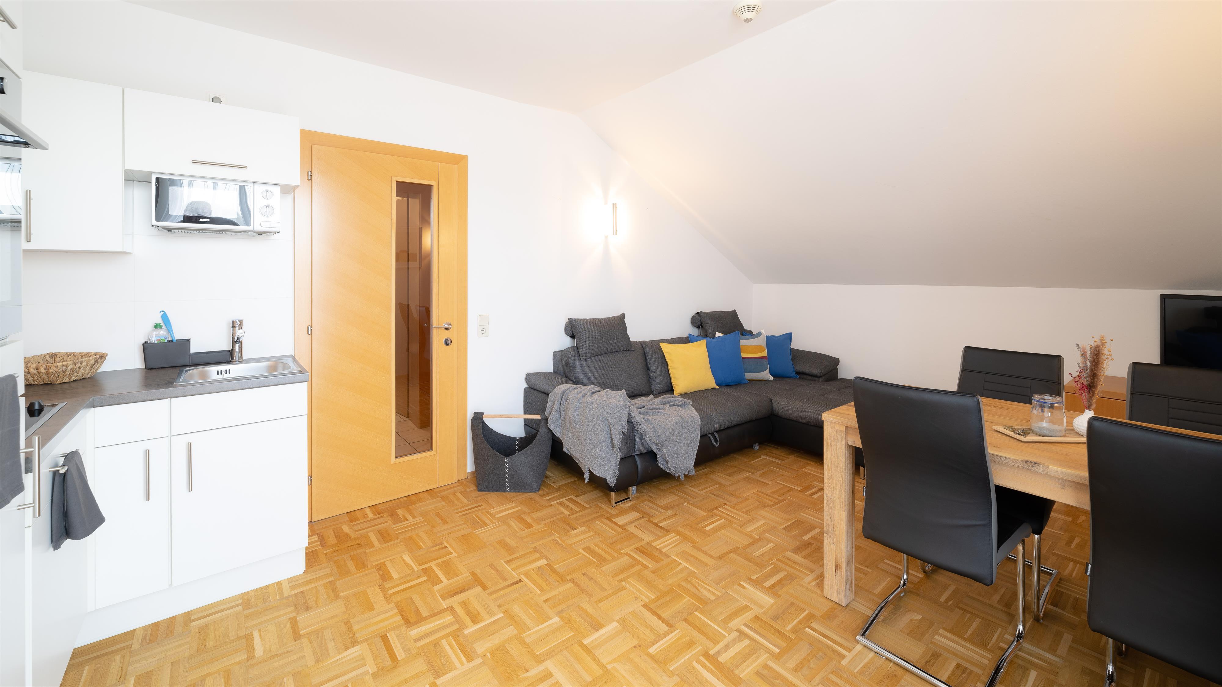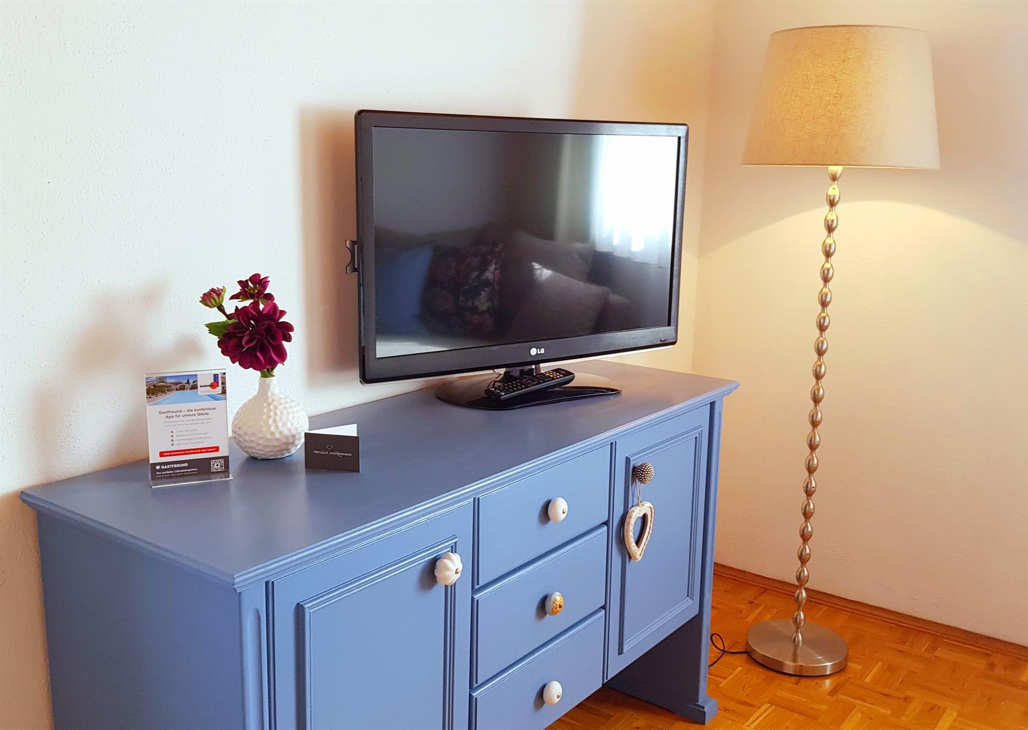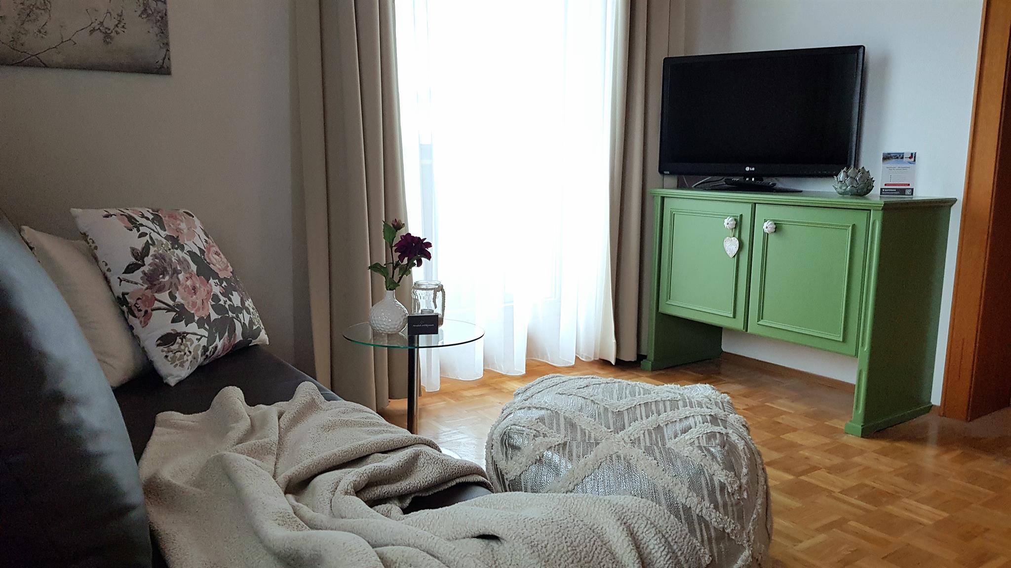 Die Wohnungen bestehen aus einem Vorraum, einem Schlafraum, Dusche/WC,Fön, Wohnzimmer mit ausziehbarer Couchgarnitur, Esstisch, LCD-TV mit Musikkanal, Internet über W-LAN, komplett ausgestatteter Küche mit Mikrowelle, Geschirrspüler, Backofen, Kaffeemaschine, Sodastream uvm. sowie einer großen Terrasse mit Terrassenmöbel, 2 Sonnenliegen und einen Griller. Bett- u. Tischwäsche, Geschirr- u. Handtücher werden bereitgestellt. Auf Wunsch Kinderbett (Gitterbett) und Hochstuhl. Waschservice gegen Gebühr im Haus.