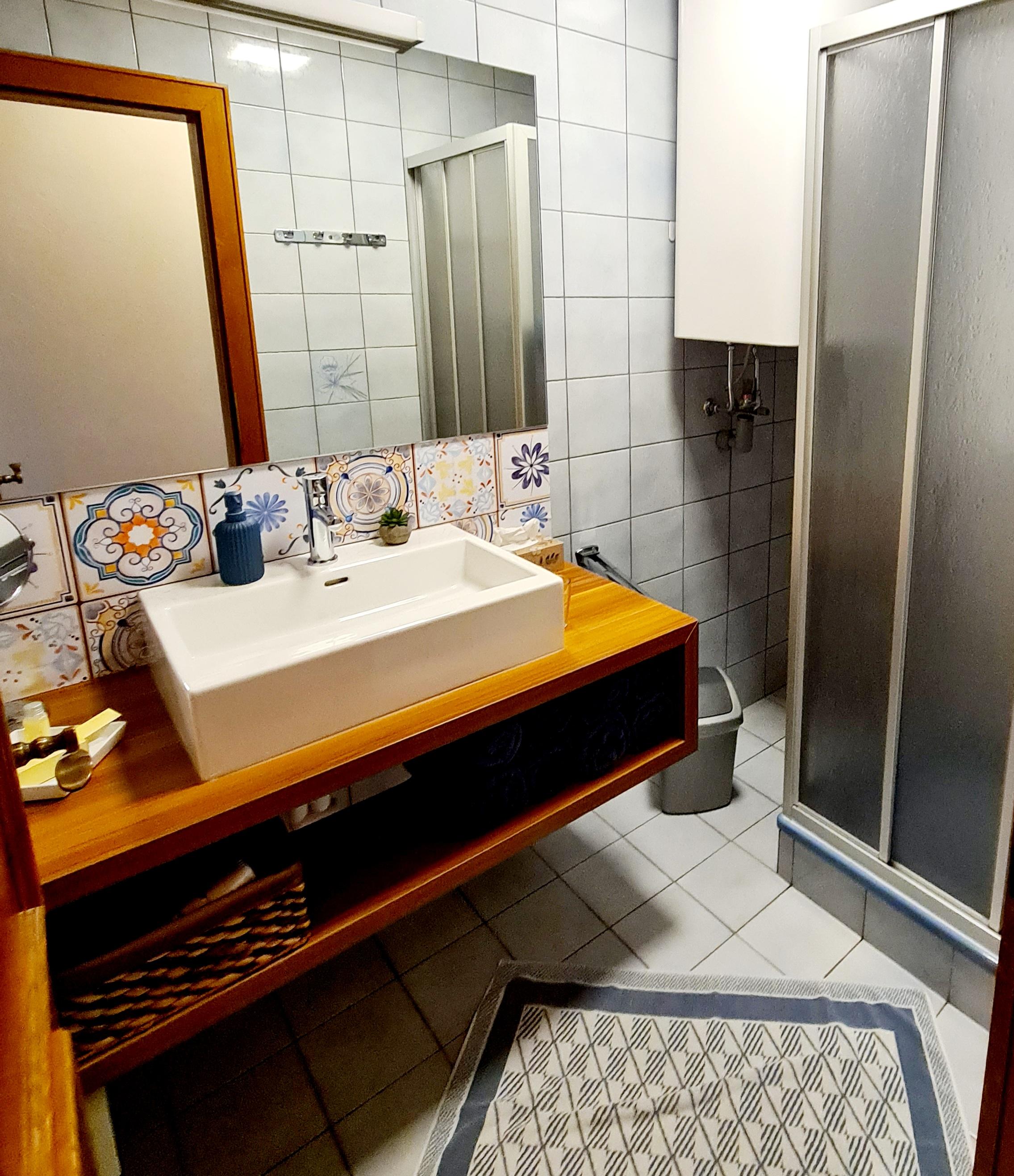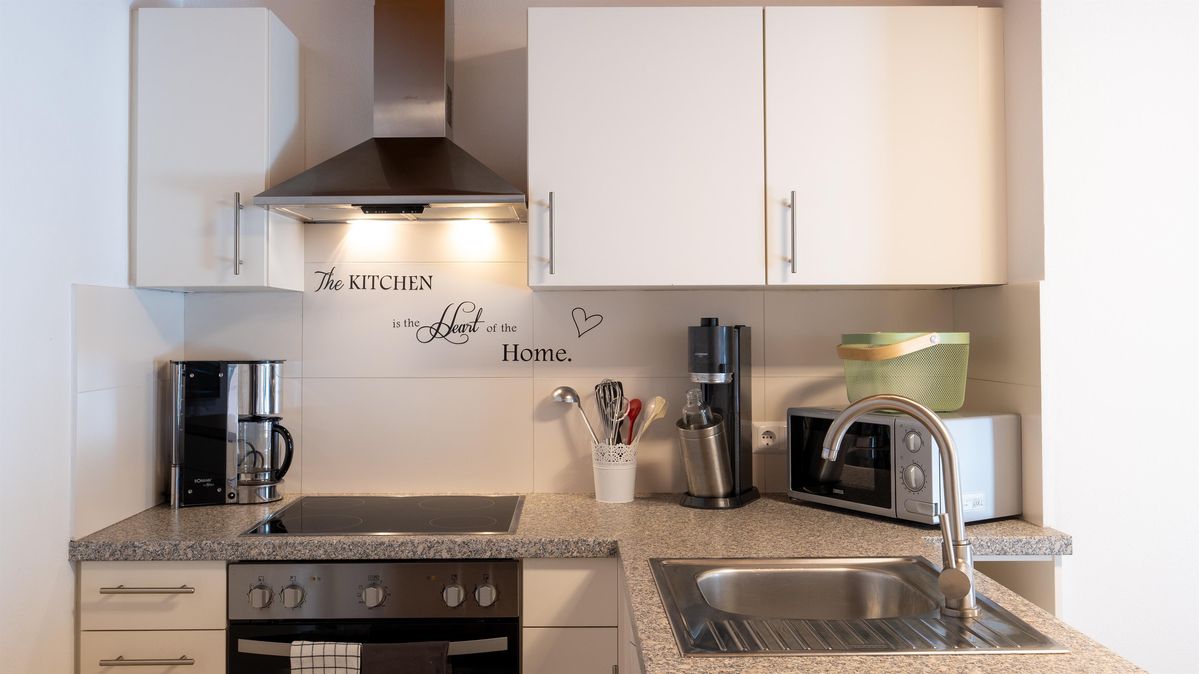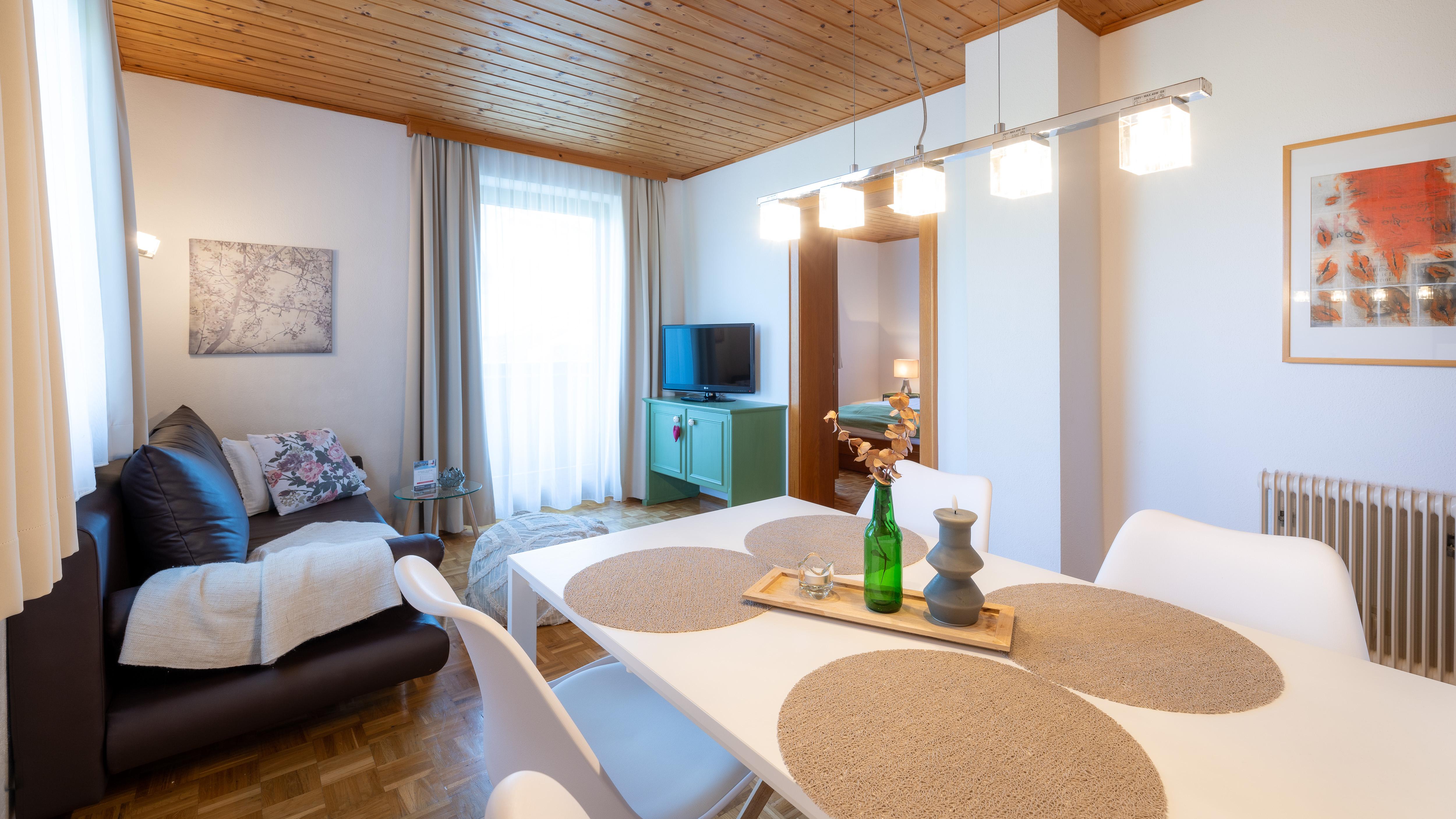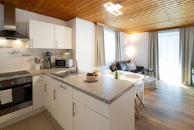 Die Wohnungen bestehen aus einem Vorraum, einem Schlafraum, Dusche/WC,Fön, Wohnzimmer mit ausziehbarer Couchgarnitur, Esstisch, LCD-TV mit Musikkanal, Internet über W-LAN, komplett ausgestatteter Küche mit Mikrowelle, Geschirrspüler, Backofen, Kaffeemaschine, Sodastream uvm. sowie einer großen Terrasse mit Terrassenmöbel, 2 Sonnenliegen und einen Griller. Bett- u. Tischwäsche, Geschirr- u. Handtücher werden bereitgestellt. Auf Wunsch Kinderbett (Gitterbett) und Hochstuhl. Waschservice gegen Gebühr im Haus.