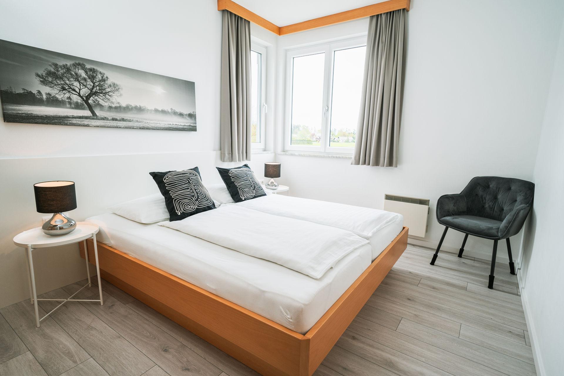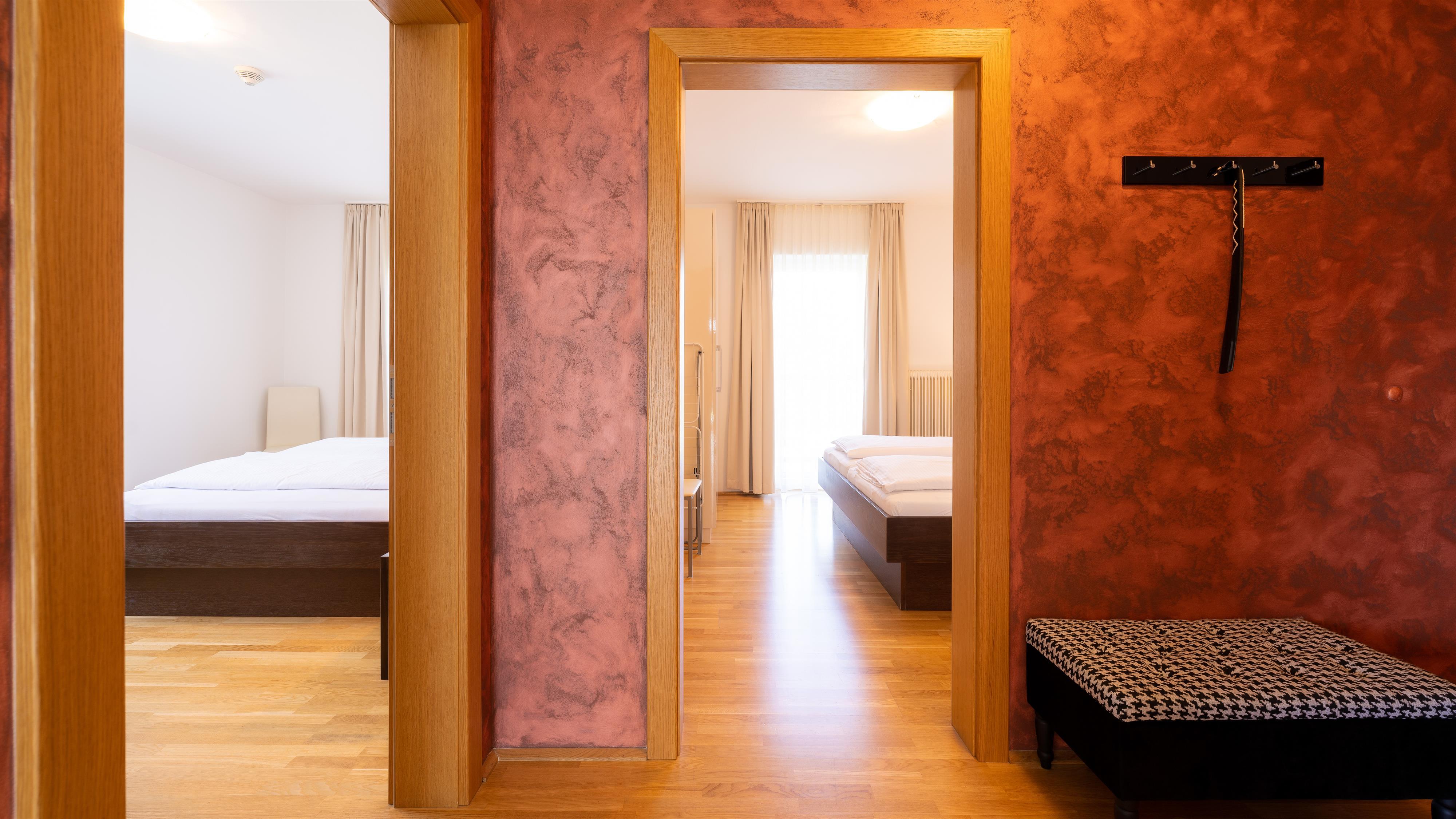 Die Wohnungen bestehen aus einem Vorraum, zwei Doppelzimmer, Badezimmer/WC,Fön, einem Wohnzimmer mit ausziehbarer Couchgarnitur, Esstisch, LCD-TV mit Musikkanal, Internet über W-LAN, komplett ausgestatteter Küche mit Mikrowelle, Geschirrspüler, Backofen, Kaffeemaschine, Sodastream uvm. sowie einen großen Balkonen mit Terrassenmöbel. Bett- u. Tischwäsche, Geschirr- u. Handtücher werden bereitgestellt. Auf Wunsch Zustellbett, Kinderbett (Gitterbett) und Hochstuhl. Waschservice gegen Gebühr im Haus.
