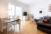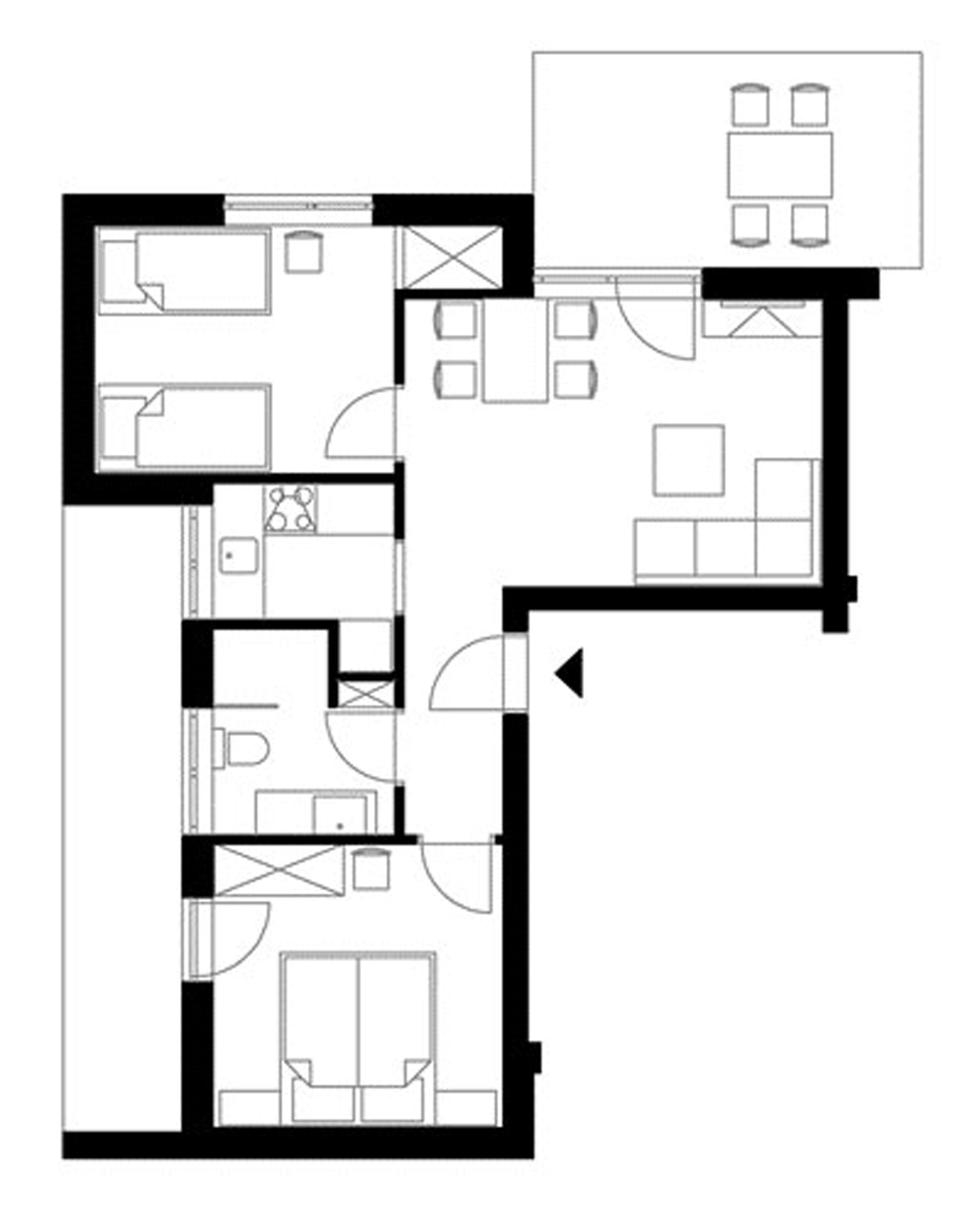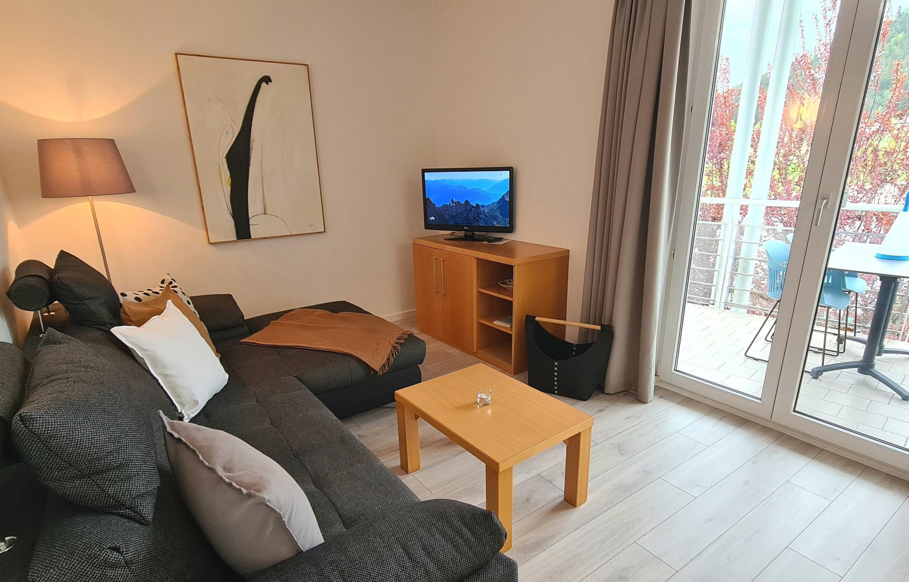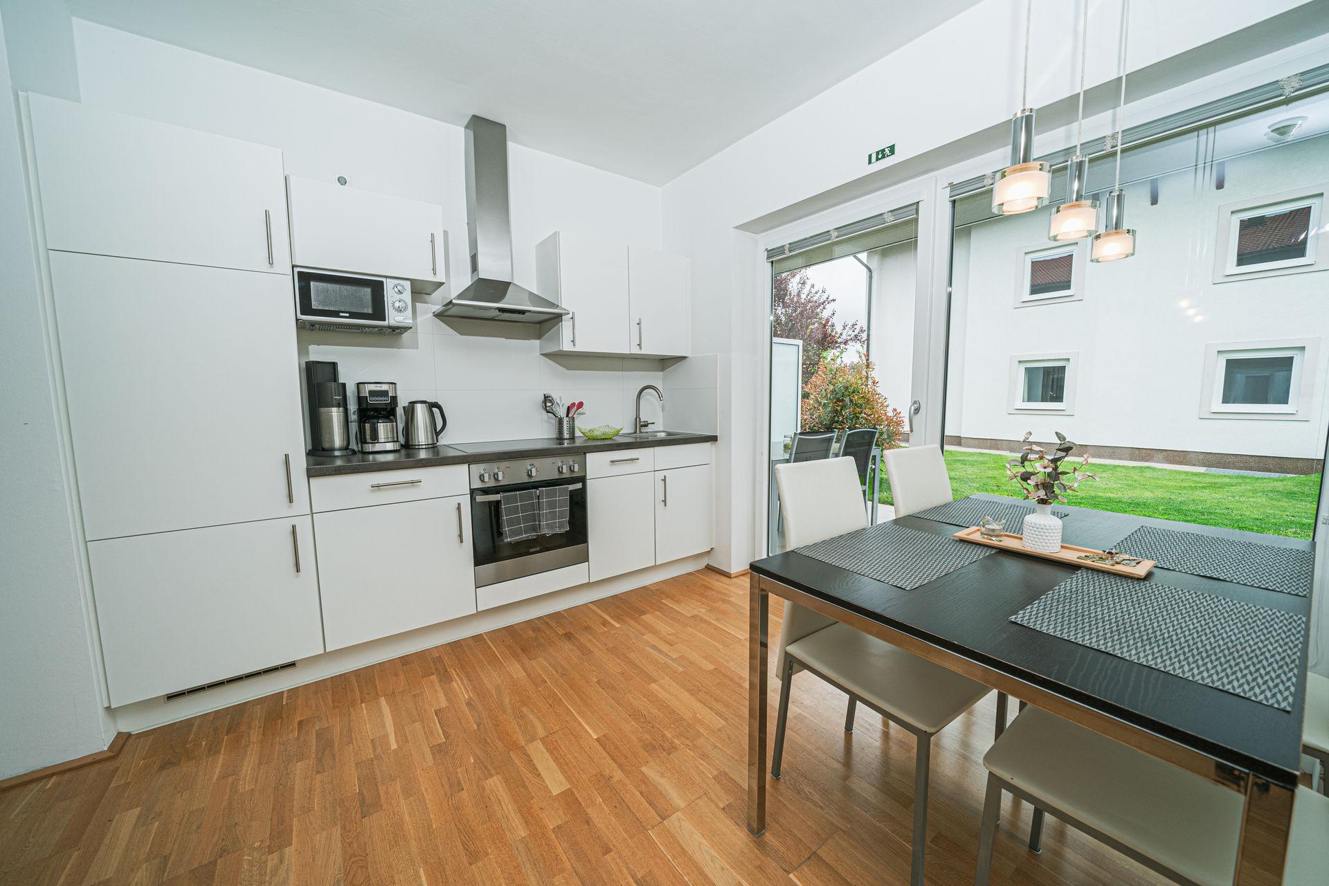 Die Wohnungen bestehen aus einem Vorraum, zwei Doppelzimmer, Badezimmer/WC,Fön, einem Wohnzimmer mit ausziehbarer Couchgarnitur, Esstisch, LCD-TV mit Musikkanal, Internet über W-LAN, komplett ausgestatteter Küche mit Mikrowelle, Geschirrspüler, Backofen, Kaffeemaschine, Sodastream uvm. sowie einen großen Balkon mit Terrassenmöbel. Bett- u. Tischwäsche, Geschirr- u. Handtücher werden bereitgestellt. Auf Wunsch Zustellbett, Kinderbett (Gitterbett) und Hochstuhl. Waschservice gegen Gebühr im Haus.