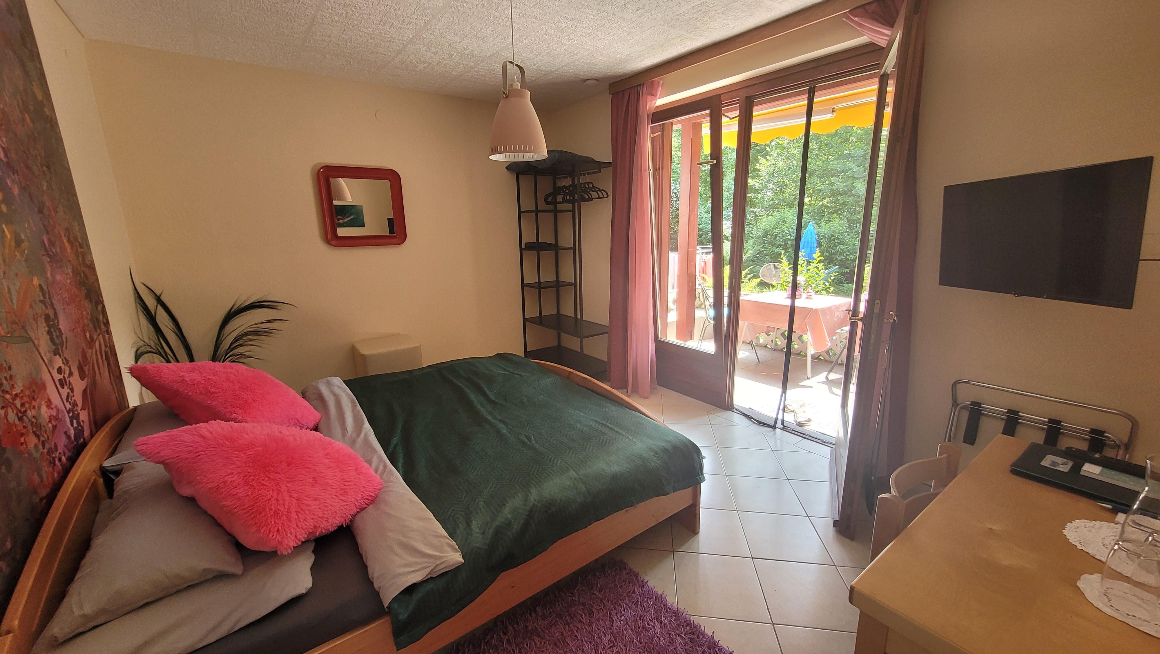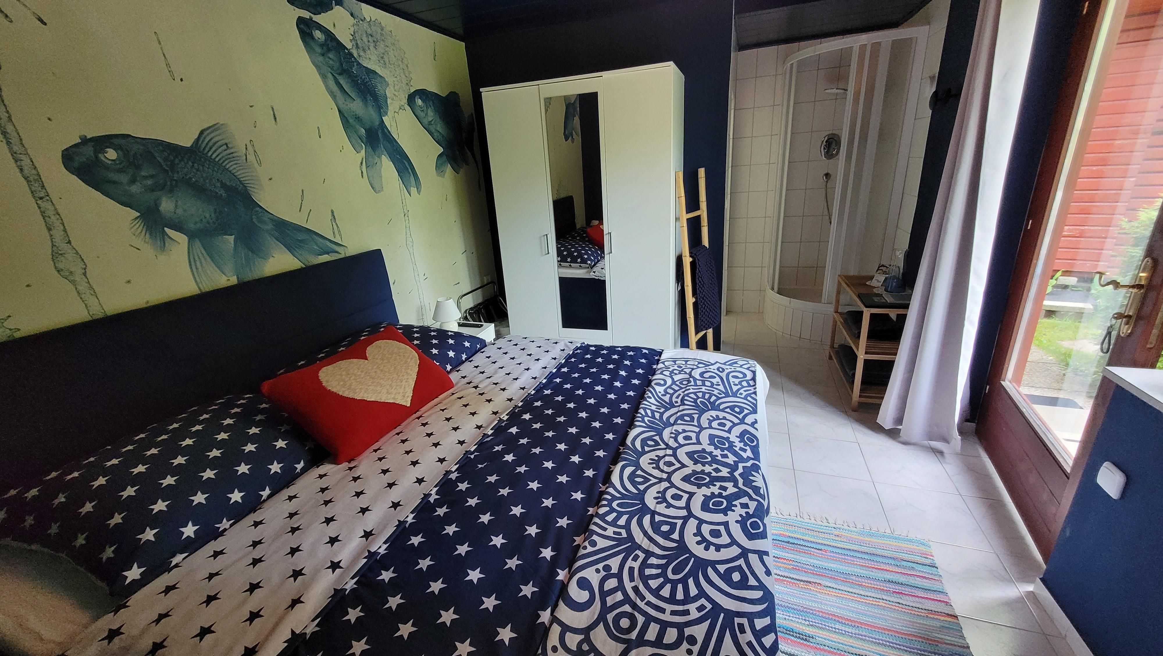 Die ca. 15 qm2 großen Doppelzimmer in der Villa Blu sind mit einem komfortablen Doppelbett, Dusche/WC, TV und jeweils einer eigenen Terrasse, einem Wintergarten oder einem Balkon ausgestattet und bieten Raum für den persönlichen Rückzug. Der Blick geht immer in den naturbelassenen Garten.