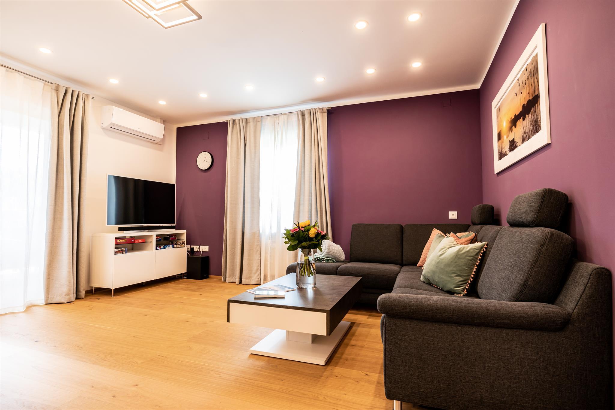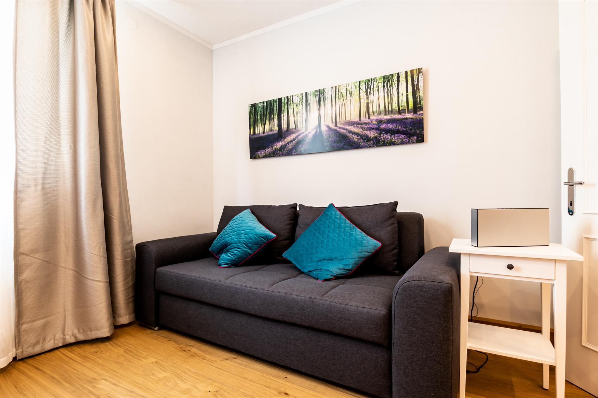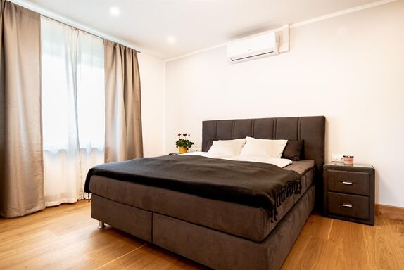 Zwei ruhige Schlafzimmer, ein komfortables Bad mit Dusche, Waschmaschine sowie mit getrenntem WC, sowie ein gemütliches Wohnzimmer und eine edle Küche, laden auf 64m2 bis zu 8 Personen zum Verweilen ein. Mit Liebe zum Detail liegt der Fokus in allen frisch renovierten Wohnräumen auf hochwertiger Einrichtung und Materialien, wie Parkett- und Lärchenböden oder einem qualitativen Boxspringbett. Das Herzstück des Appartements bildet der Balkon, welcher mit 18m2, inklusive Bergblick, Gas-Grill, Esstisch und gemütlichen Liegestühlen, großzügigen Platz für entspannte Abende und genussvolle Momente bietet.