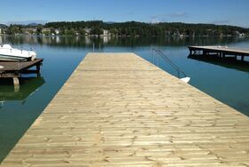 Wir bieten Ihnen einen Privatbadestrand mit einer großen Liegewiese und einem 100 m² Steg, der nur von unseren Hausgästen benutzt werden darf.