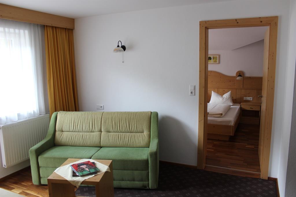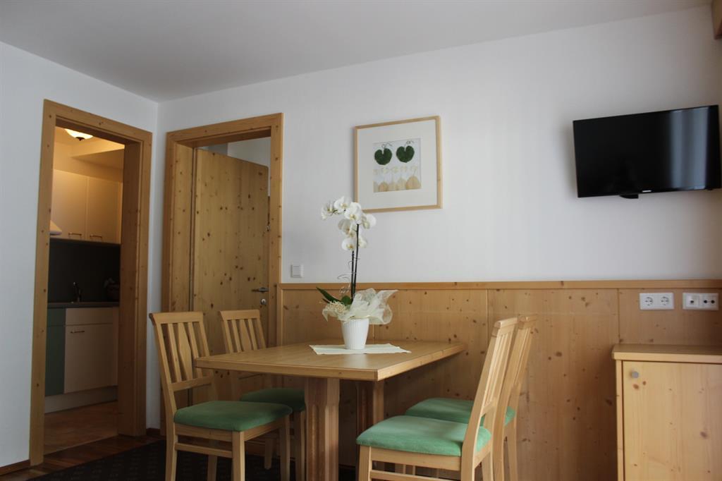 Komfortables Appartement mit gemütlichen Wohn-Essbereich und separater vollausgestatteter Küche. 2 Doppelzimmer mit je Dusche/WC und ein weiteres separates WC. Balkon mit Blick zum Nederkogl. Wohnzimmer und Schlafzimmer jeweils mit Kabel-Flat-TV.