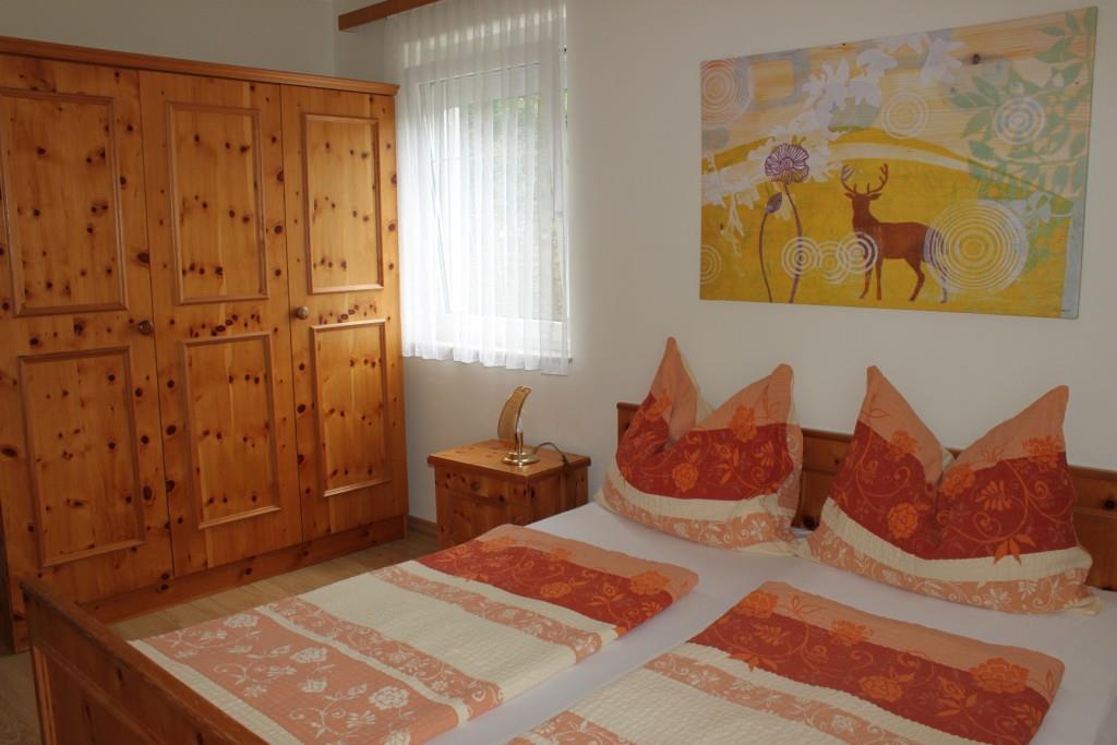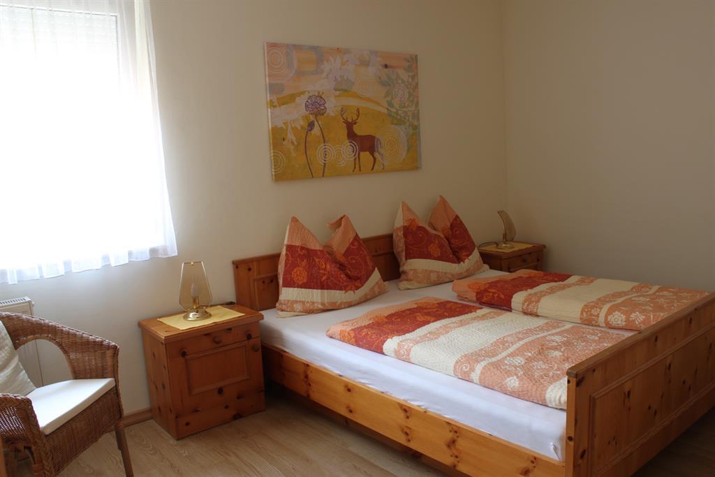 Wir haben 2 Ferienwohnungen Typ A, die ca. 55 m2 groß sind. Wohnung 1 im 1.Stock links und Wohnung 3 mit Dachschrägen im 2.Stock links. Hier besteht die Wohnküche aus einem einfachen Küchenblock mit 2 Herdplatten einer Spüle und Kühlschrank. Ein Sofa mit Essecke und TV runden die Wohnküche ab. Es gibt 2 getrennte Schlafzimmer mit je einem Doppelbett. Ein Zustellbett für eine 5. Person kann in einem der Schlafzimmer aufgestellt werden, ein Gitterbett wie ein Kinderhochstuhl ist in jeder Wohnung vorhanden. Das Badezimmer ist mit Waschbecken und einer Dusche ausgestattet, vom WC getrennt. Von der Wohnküche wie von einem der Schlafzimmer aus, kommen Sie auf den Balkon mit Blick auf den Garten, Liegewiese bzw. Spielplatz des Hauses. In den Wohnungen liegt ein Laminatboden.