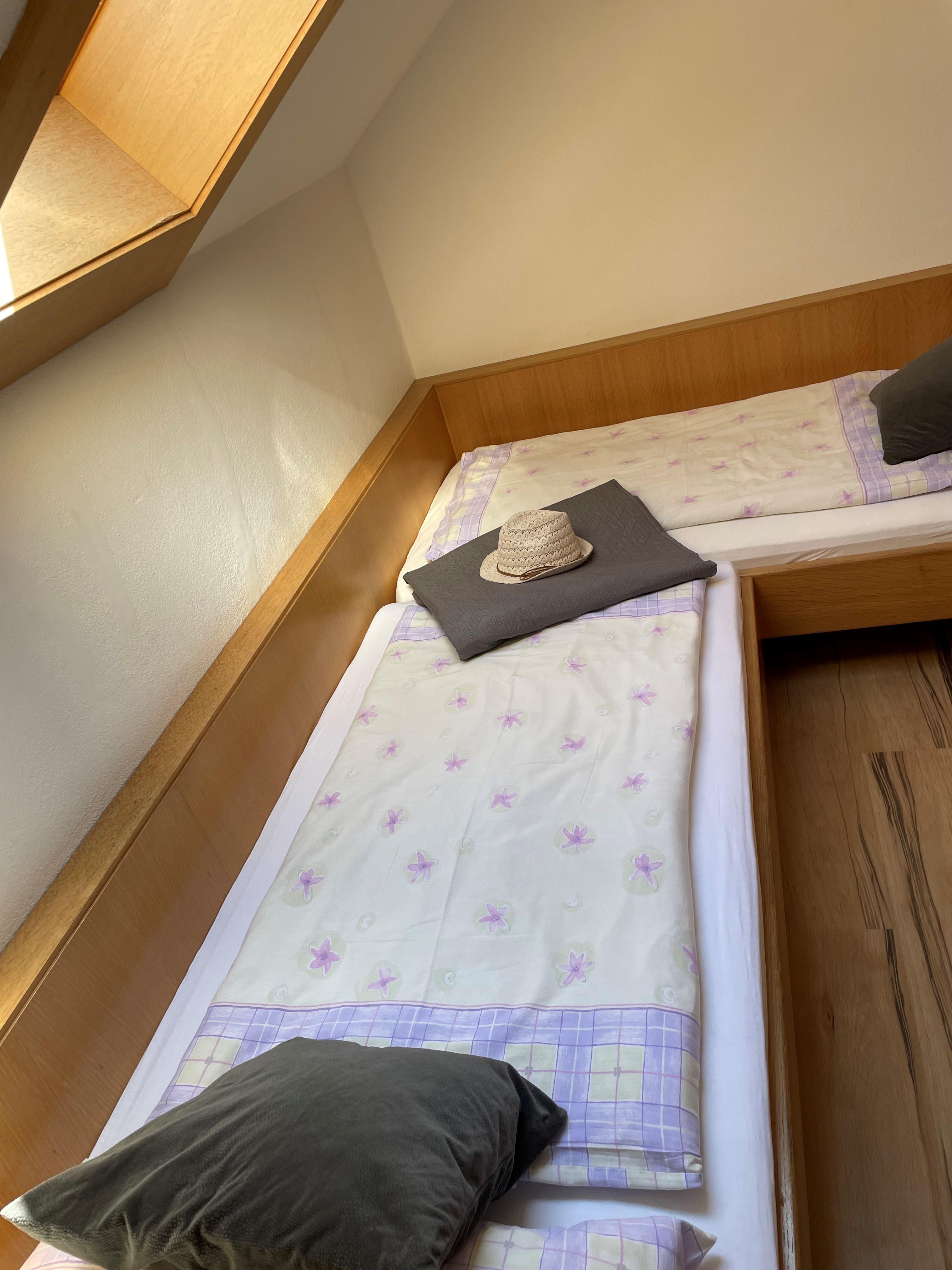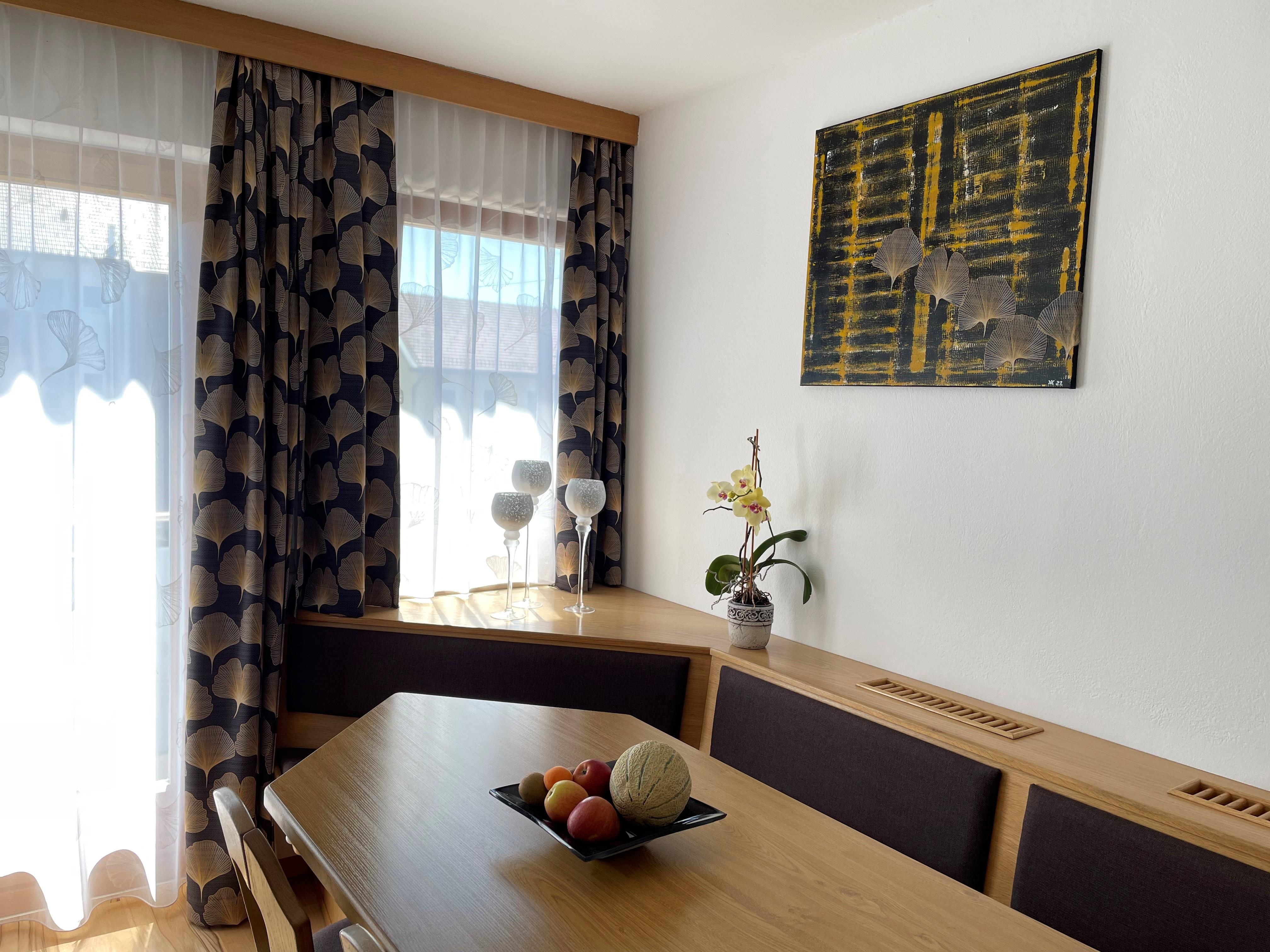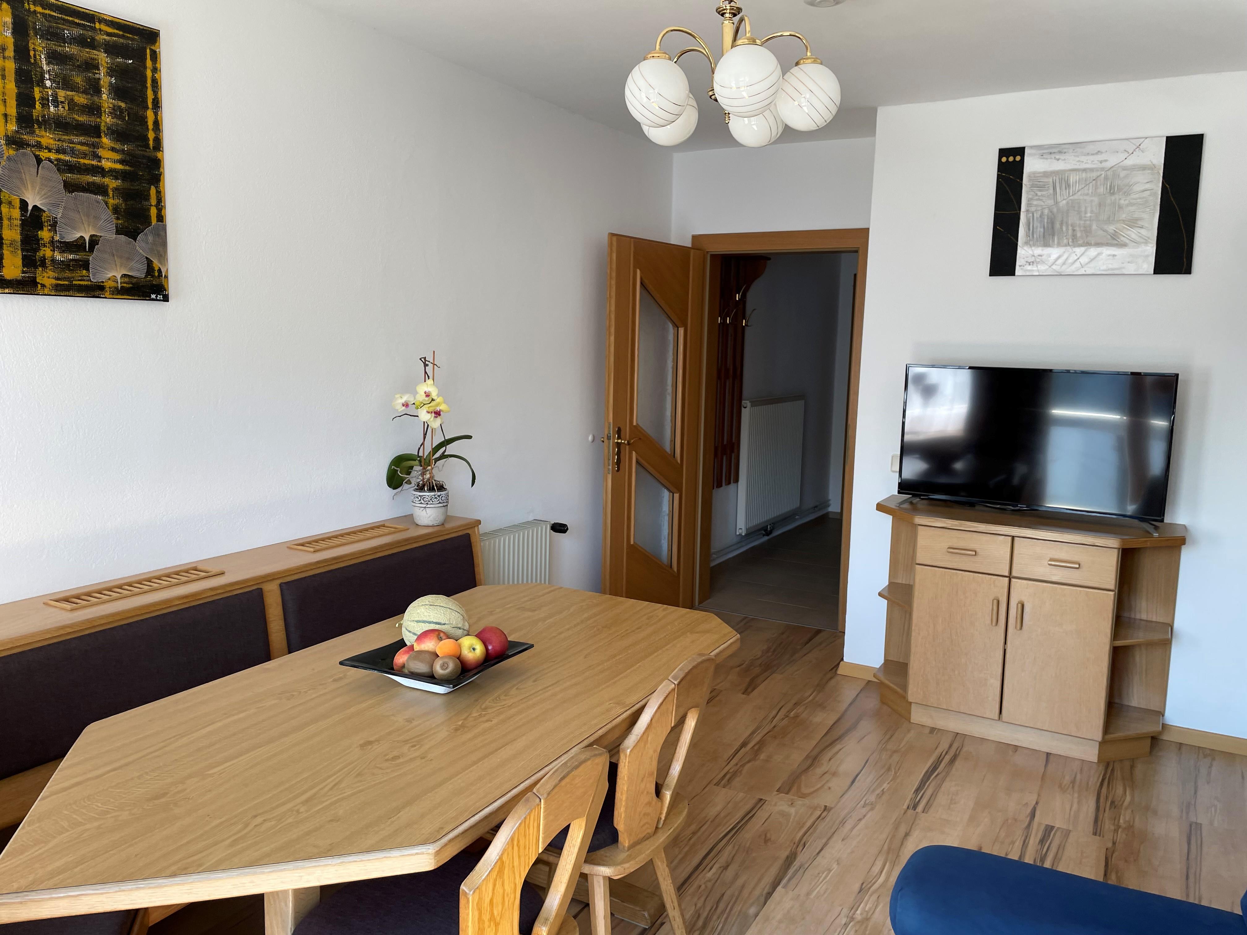 Komfortable und moderne Ferienwohnung bestehend aus Vorraum, 2 Schlafzimmer mit getrennten Eingängen (ein Schlafzimmer mit großem Doppelbett und ein Schlafzimmer mit zwei Betten in L-Form), Wohnzimmer mit Sat-TV, Sitzecke, komplett ausgestatteter Küche mit Herd & Dunstabzug, Backrohr, Kühlschrank mit Gefrierfach, Geschirrspüler, Kaffeemaschine, Wasserkocher, Toaster, schöner Balkon mit Gartenmöbel, inklusive Bett- und Tischwäsche sowie Geschirr- und Handtücher