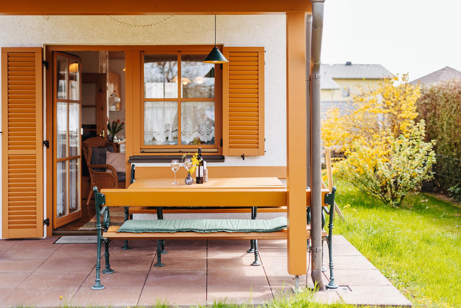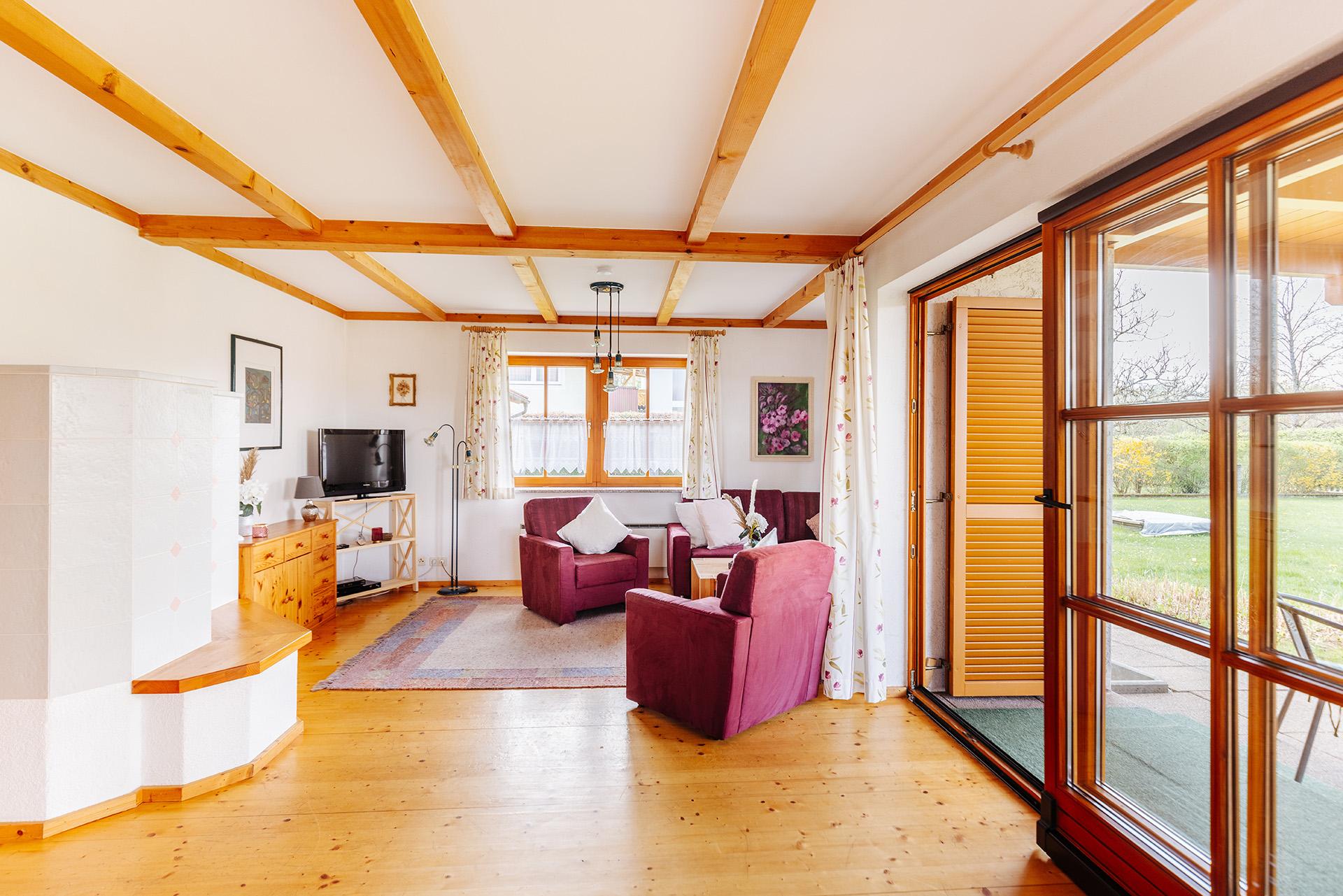 Süd- und westseitig ausgerichtet und somit ideal, um die Mittags- und Nachmittagssonne genießen zu können. Vom Wohnzimmer kommt man direkt über die Terrasse in den angrenzenden Garten