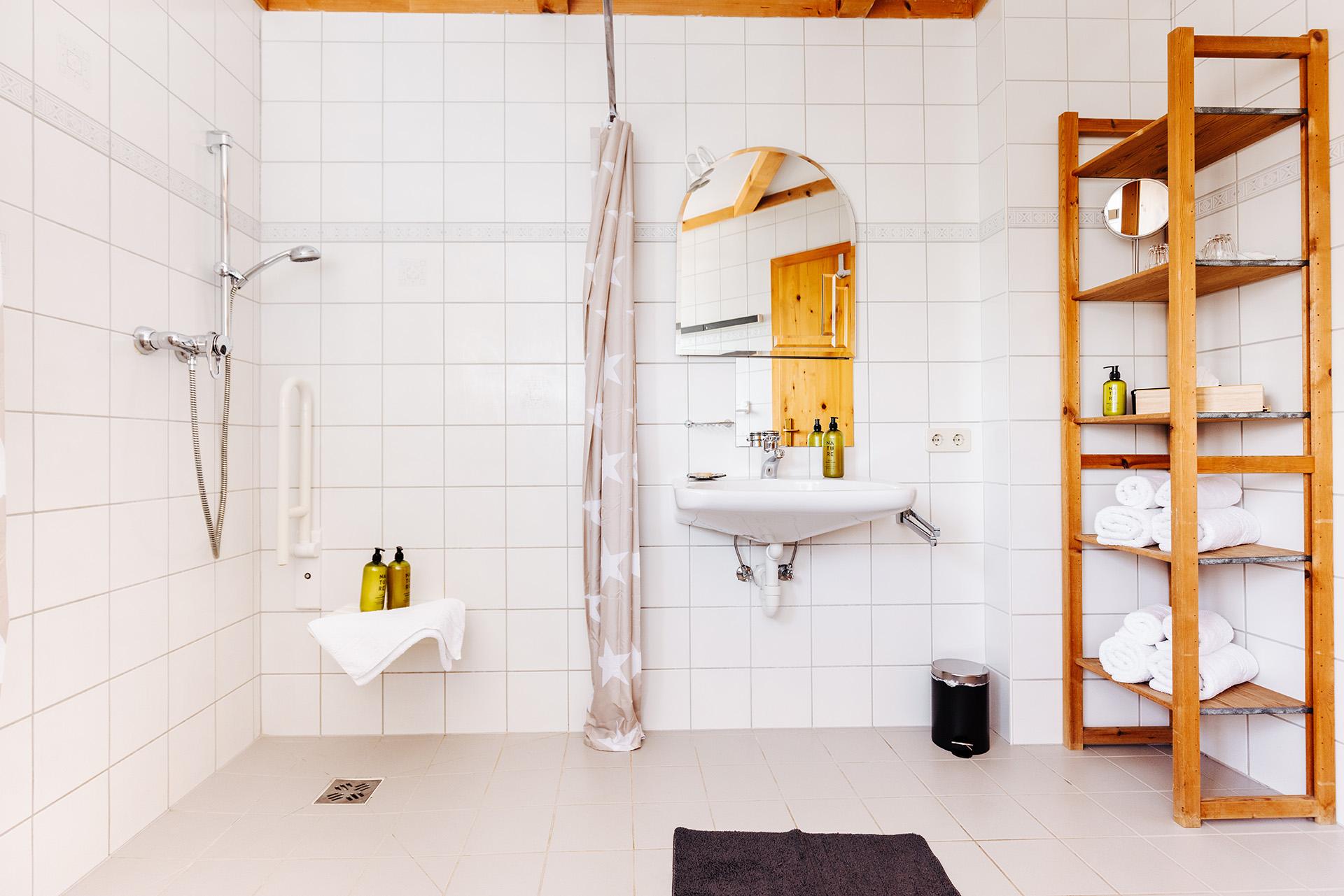 Ein besonderes Highlight des Ferienhaus Nora ist, dass ein Apartment vollkommen Barrierefrei und rollstuhlfreundlich eingerichtet ist. Die Küche ist teilweise unterfahrbar und auch die Dusche ist befahrbar. Das WC verfügt über Haltegriffe