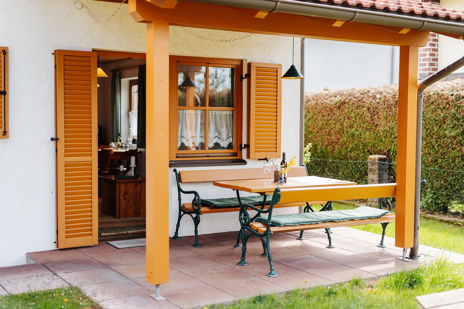 • Große überdachte Terrasse und Balkonmöbel und Gartenanbindung
