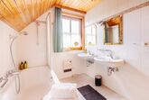 • Badezimmer mit Badewanne & Doppelwaschbecken, Föhn, hochwertigen Bio-Pflegeprodukten, Hand- & Badetücher